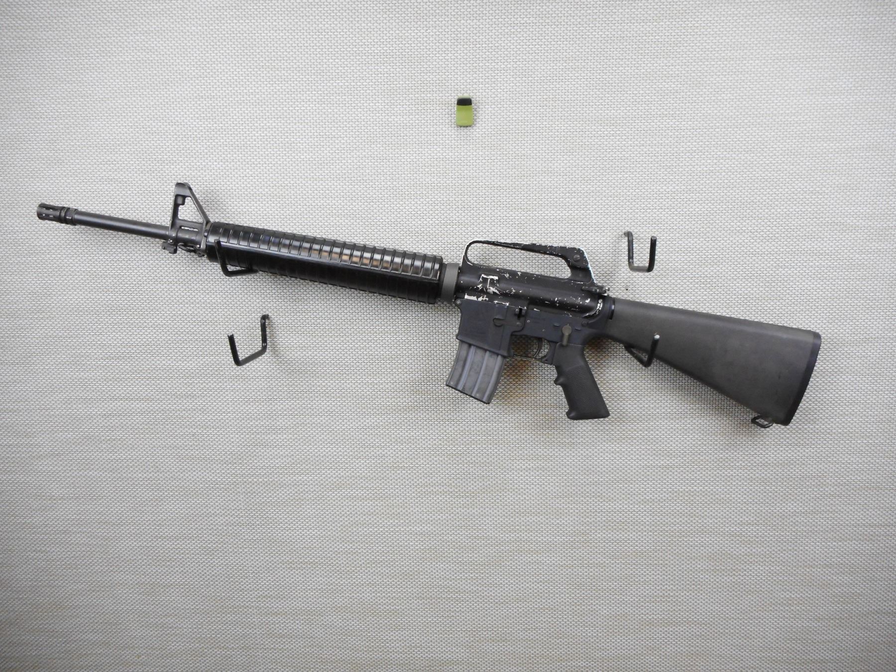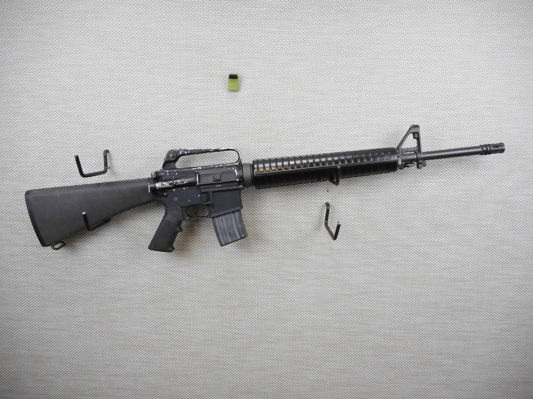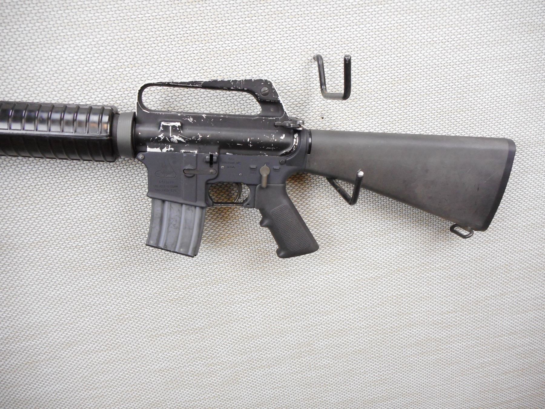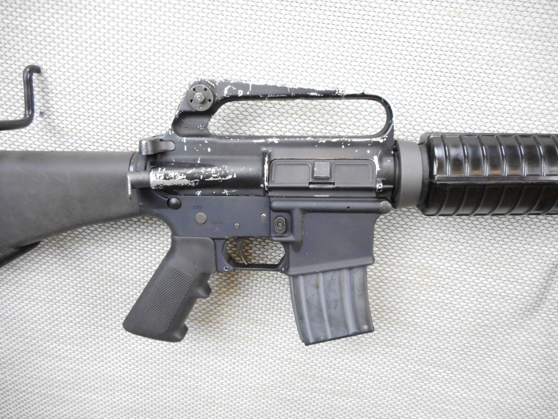 BUSHMASTER , MODEL: XM15E2S , CALIBER: 5.56MM NATO , COMES WITH MAGAZINE, FLIP REAR PEEP & FRONT POST SIGHT, SYNTHETIC HEAT SHIELD FORESTOCK AND BUTT STOCK, PISTOL GRIP, SLING LOOPS, FLASH SUPPRESSOR, GOOD BORE, CARRY HANDLE, BLACK FINISH SHOWING SOME SCRATCHES AND WEAR, RESTRICTED CLASS RIFLE , SERIAL # L415174 , ACTION: RIFLE / SEMI-AUTOMATIC HANDGUN , BARREL LENGTH: 508MM , CONDITION: 7/10 , STOCK # 2809 , CLASS: CANADIAN RESTRICTED CLASS