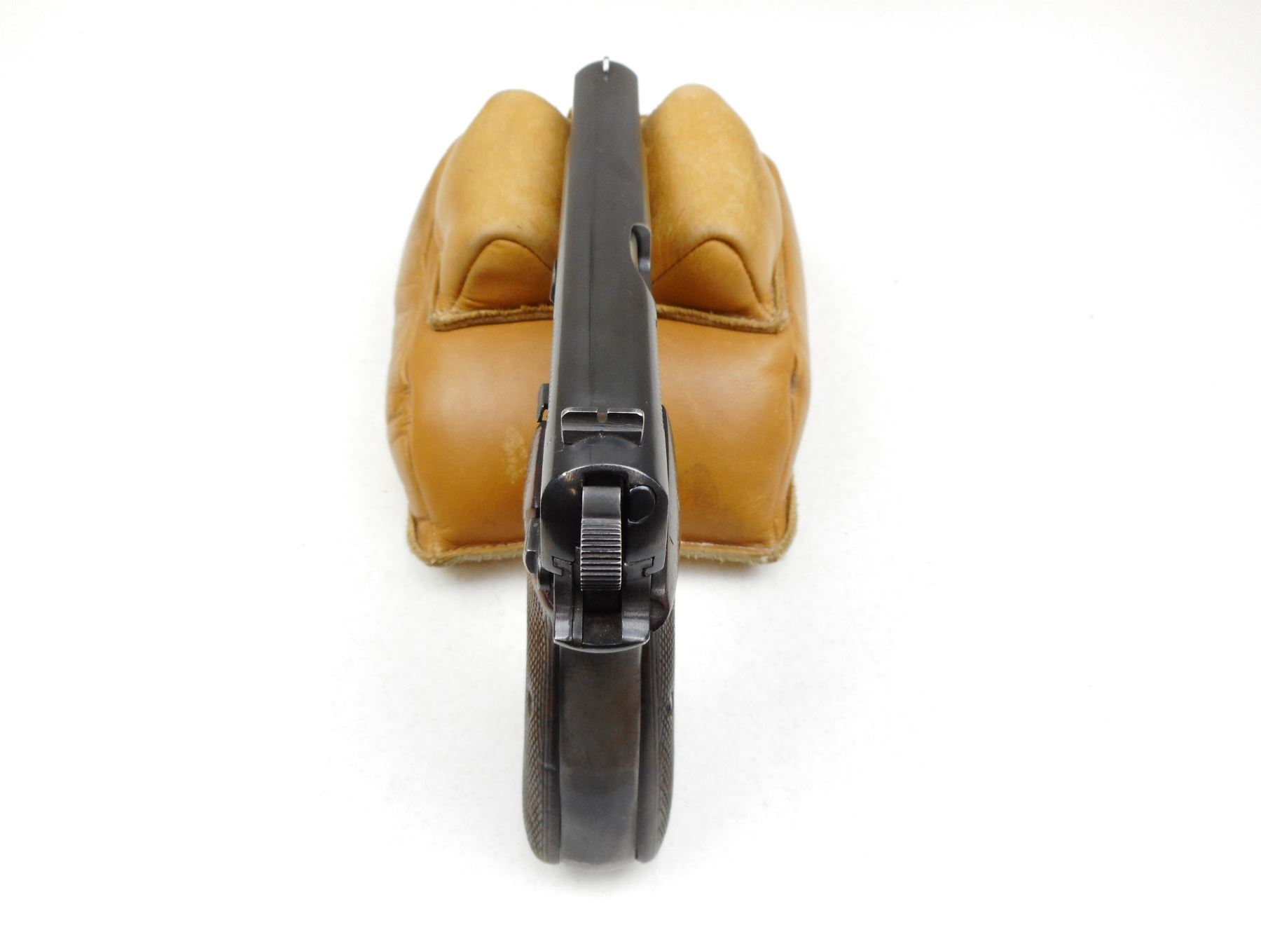 BROWNING , MODEL: 1935 HIGHPOWER P640b , CALIBER: 9MM LUGER , COMES WITH MAGAZINE, BLADE FRONT AND FIXED REAR SIGHTS, EXCELLENT BORE, CHECKERED WOODEN GRIPS, TRIGGER SHOE ADDED, SHOWS VERY LITTLE HANDLING MARKS , SERIAL # 60270B , ACTION: SEMI-AUTOMATIC HANDGUN , BARREL LENGTH: 118MM , CONDITION: 8/10 , STOCK # 2829 , CLASS: CANADIAN RESTRICTED CLASS