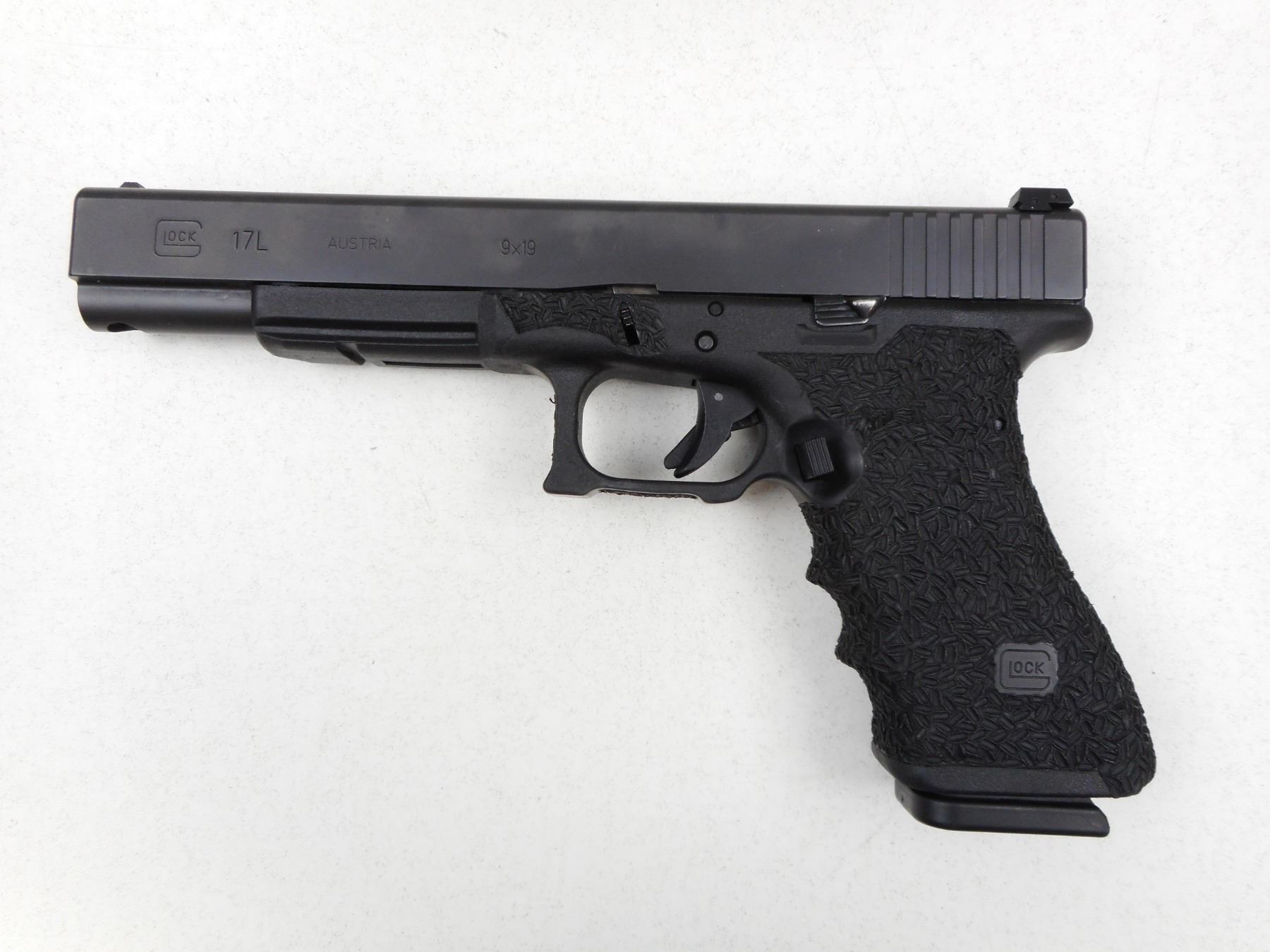 GLOCK , MODEL: 17L , CALIBER: 9MM LUGER , COMES WITH CASE, 2 MAGAZINES, MANUAL AND ACCESSORY, BORE IS EXCELLENT, WHITE DOT FRONT AND ADJUSTABLE REAR SIGHTS, TEXTURED POLYMER GRIP, SHOWS VERY LITTLE HANDLING MARKS , SERIAL # ZKA953 , ACTION: SEMI-AUTOMATIC HANDGUN , BARREL LENGTH: 153MM , CONDITION: 9/10 , STOCK # 2843 , CLASS: CANADIAN RESTRICTED CLASS