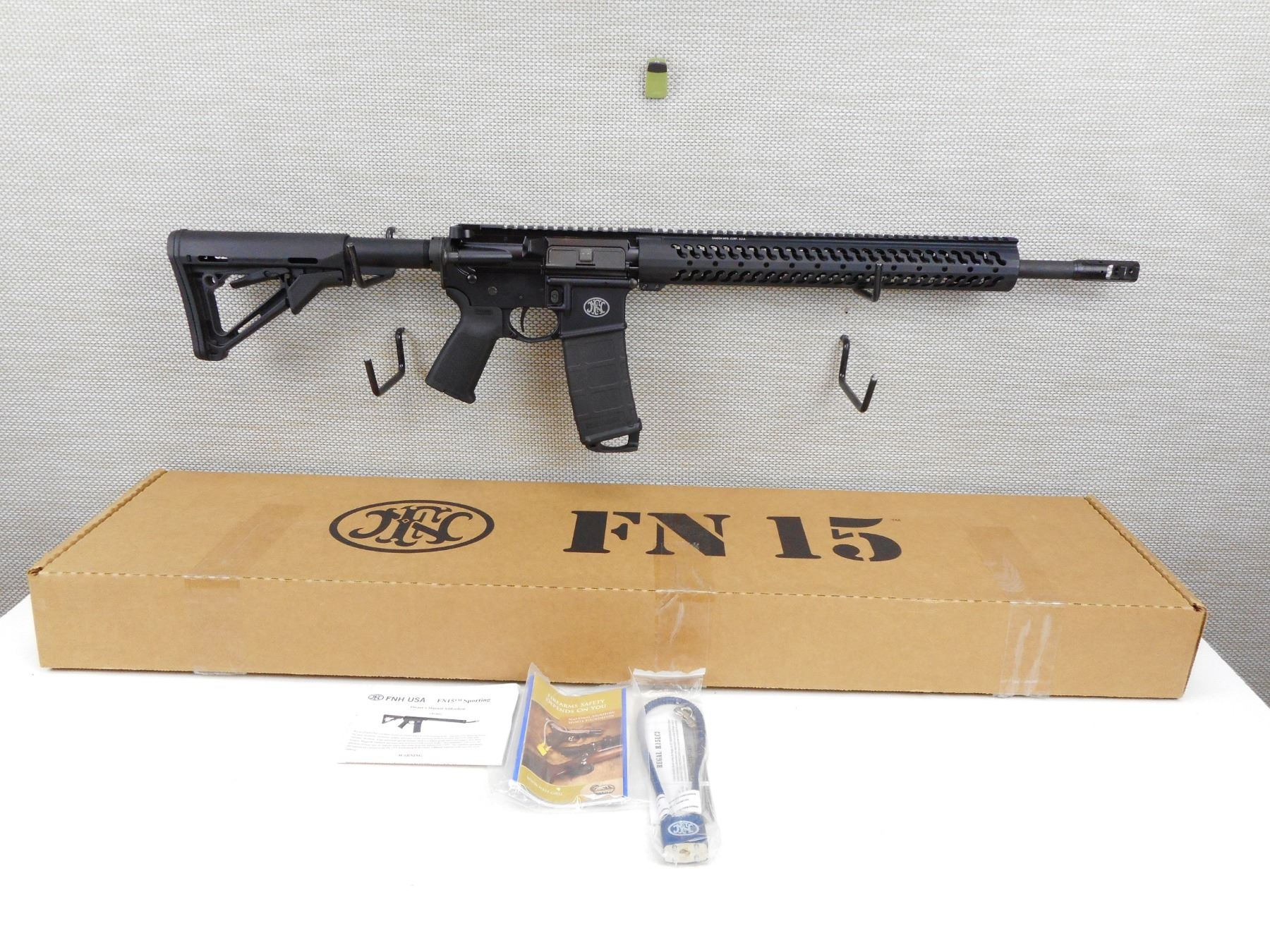 FN , MODEL: FN15 , CALIBER: 5.56MM , COMES WITH BOX AND MAGAZINE, BORE IS EXCELLENT, MUZZLE BREAK, FULLY VENTED FOREND WITH FULL LENGTH ACCESSORY RAIL, FULL PISTOL GRIP WITH M4 COLLAPSABLE BUTT STOCK, SHOWS VERY LITTLE HANDLING MARKS, NO SIGHTS , SERIAL # FNB015973 , ACTION: RIFLE / SEMI-AUTOMATIC , BARREL LENGTH: 406MM , CONDITION: 9/10 , STOCK # 2845 , CLASS: CANADIAN RESTRICTED CLASS