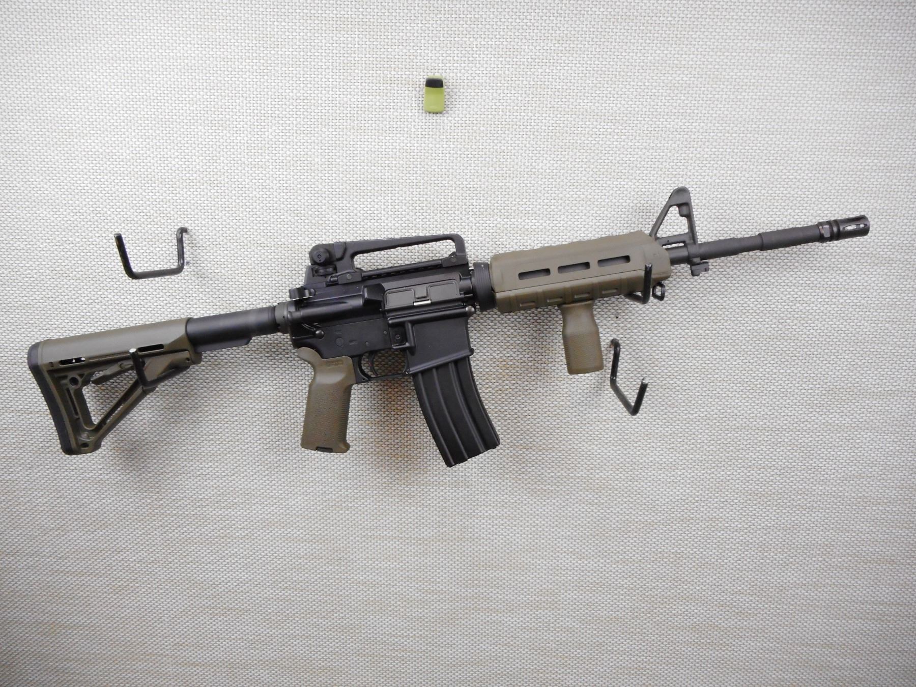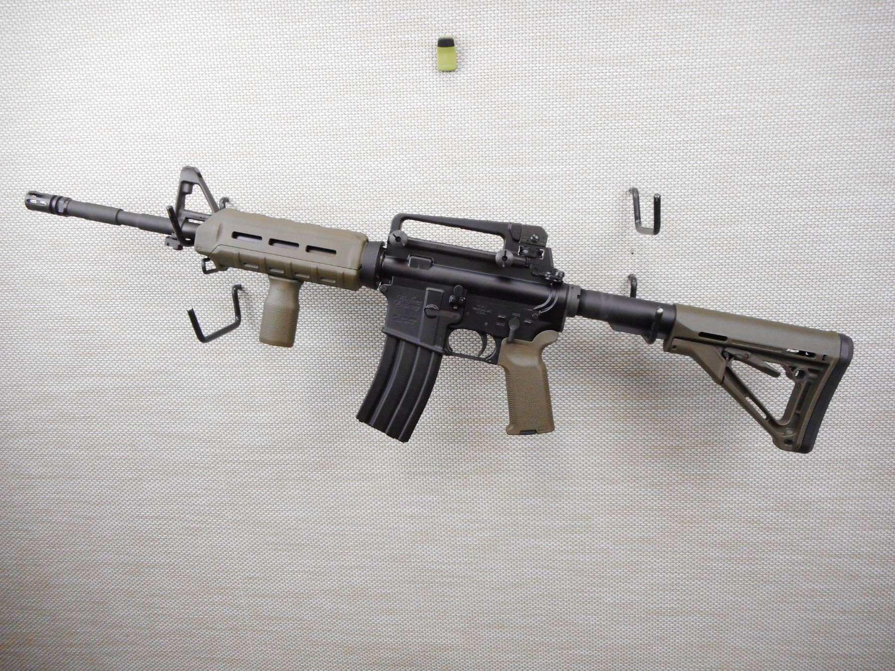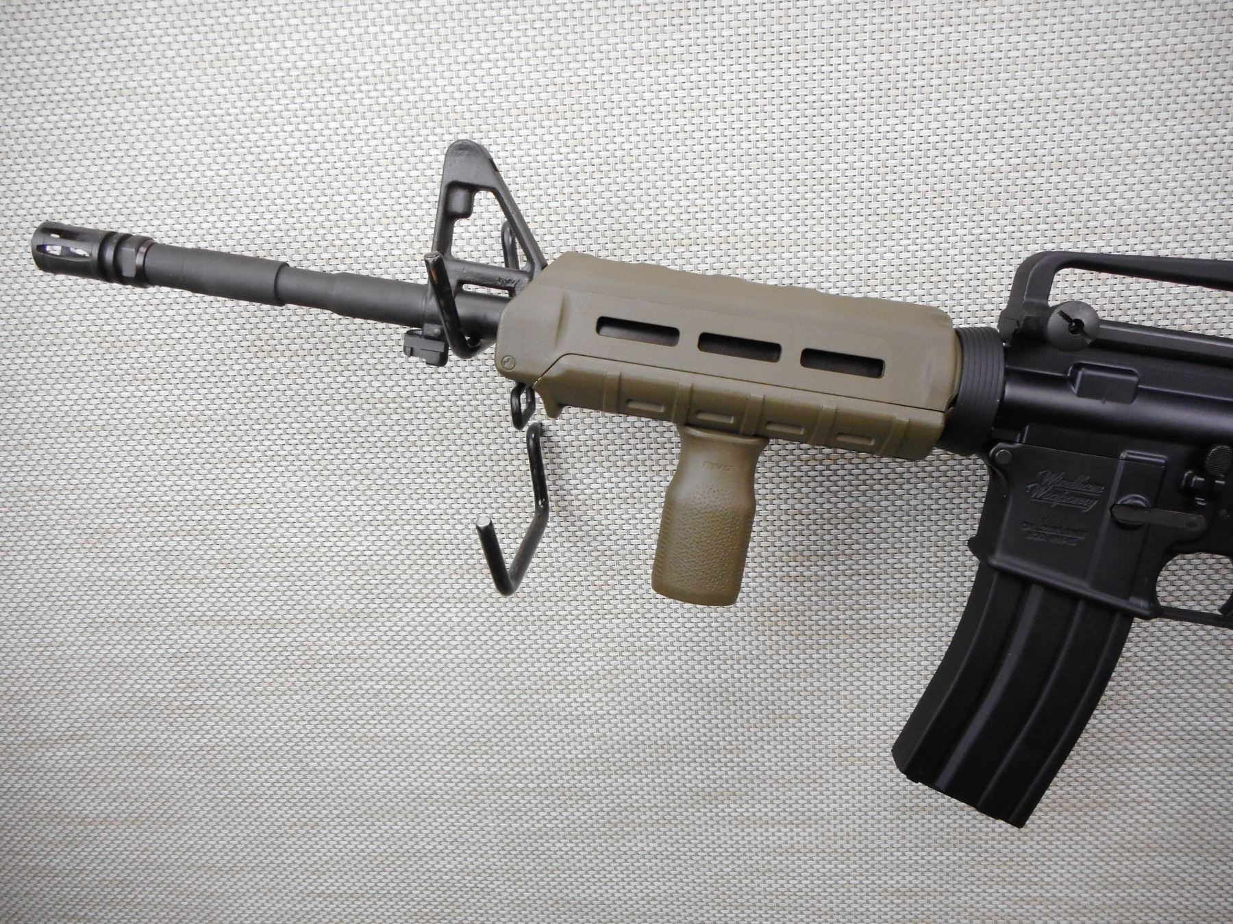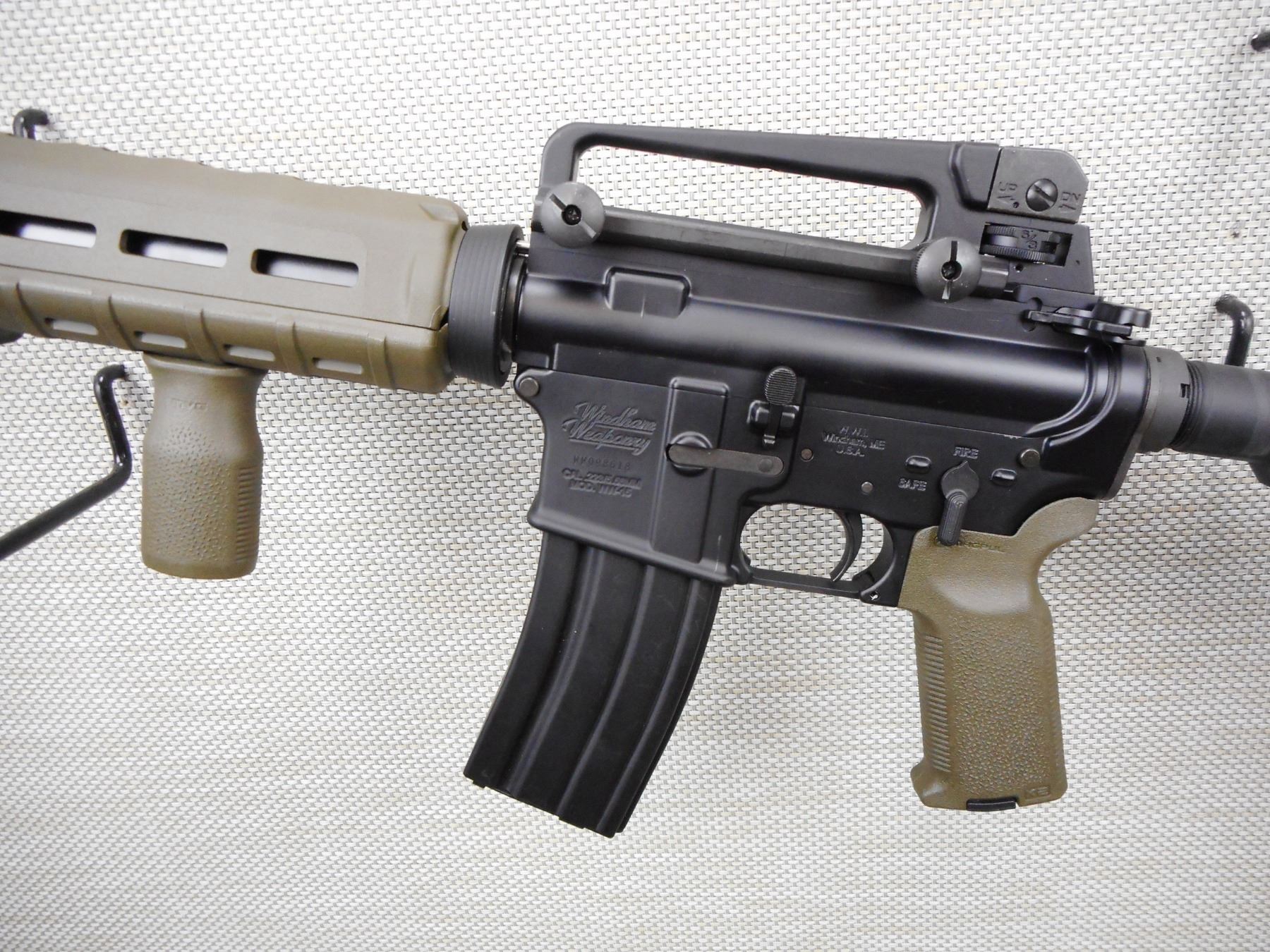 WINDHAM WEAPONRY , MODEL: WW-15 , CALIBER: 5.56MM , COMES WITH MAGAZINE, ADJ. REAR PEEP AND FRONT POST SIGHTS, SYNTHETIC STOCKS, COLLAPSABLE BUTT, PISTOL GRIPS, SLING LOOP, FLASH HIDER, MATT BLACK/GREY FINISH, EXCELLENT BORE. RESTRICTED CLASS RIFLE , SERIAL # WW098618 , ACTION: RIFLE / SEMI-AUTOMATIC HANDGUN , BARREL LENGTH: 356MM , CONDITION: 9/10 , STOCK # 2860 , CLASS: CANADIAN RESTRICTED CLASS