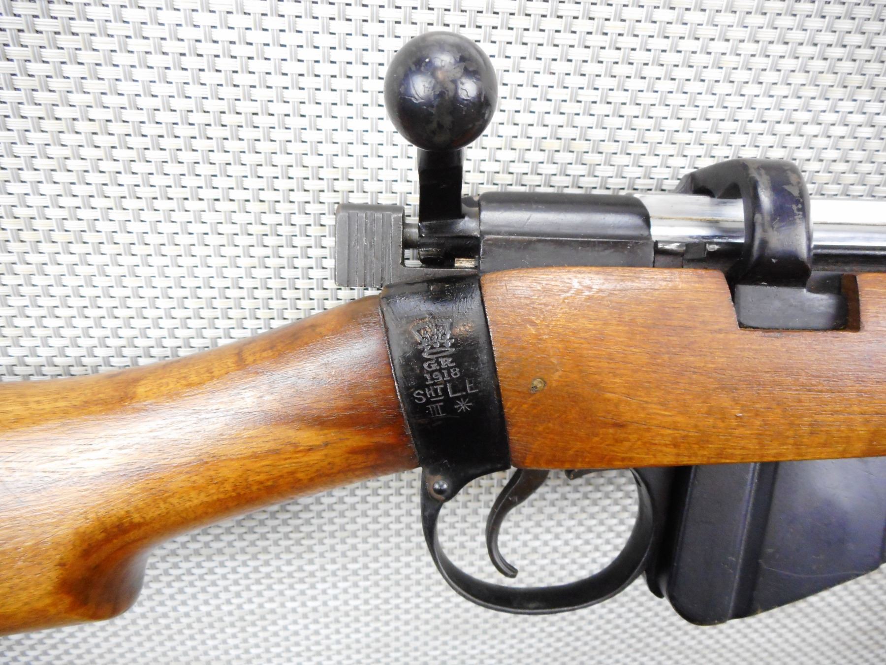 LEE ENFIELD , MODEL: NO 1 MKIII* SPORTER , CALIBER: 303 BR , COMES WITH MAGAZINE WWI ERA DATED 1918, BOLT AND RECEIVER MATCH BY SERIAL #, BORE IS EXCELLENT, RAMP FRONT AND FULLY ADJUSTABLE REAR SIGHTS, MARKED FTR 1953, SLING SWIVEL LOOPS, TWO PIECE HARDWOODS STOCK, BRASS BUTT PLATE , SERIAL # 59604 , ACTION: BOLT ACTION RIFLE , BARREL LENGTH: 24 1/2" , CONDITION: 5/10 , STOCK # 8675 , CLASS: CANADIAN NON RESTRICTED CLASS