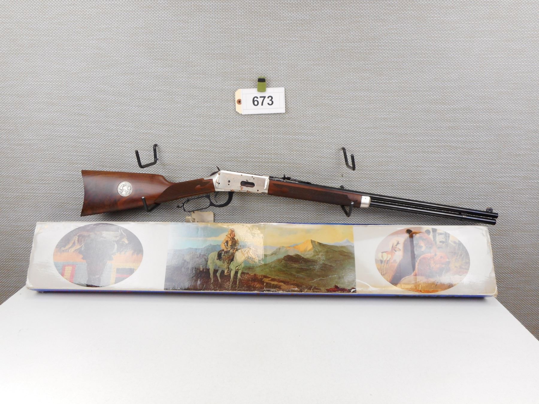Lot 673 WINCHESTER , MODEL: 1894, COMMEMORATIVE 94 LEGENDARY FRONTIERSMAN CARBINE , CALIBER: 38-55 WIN