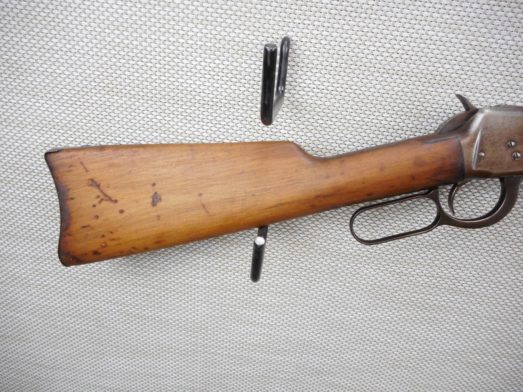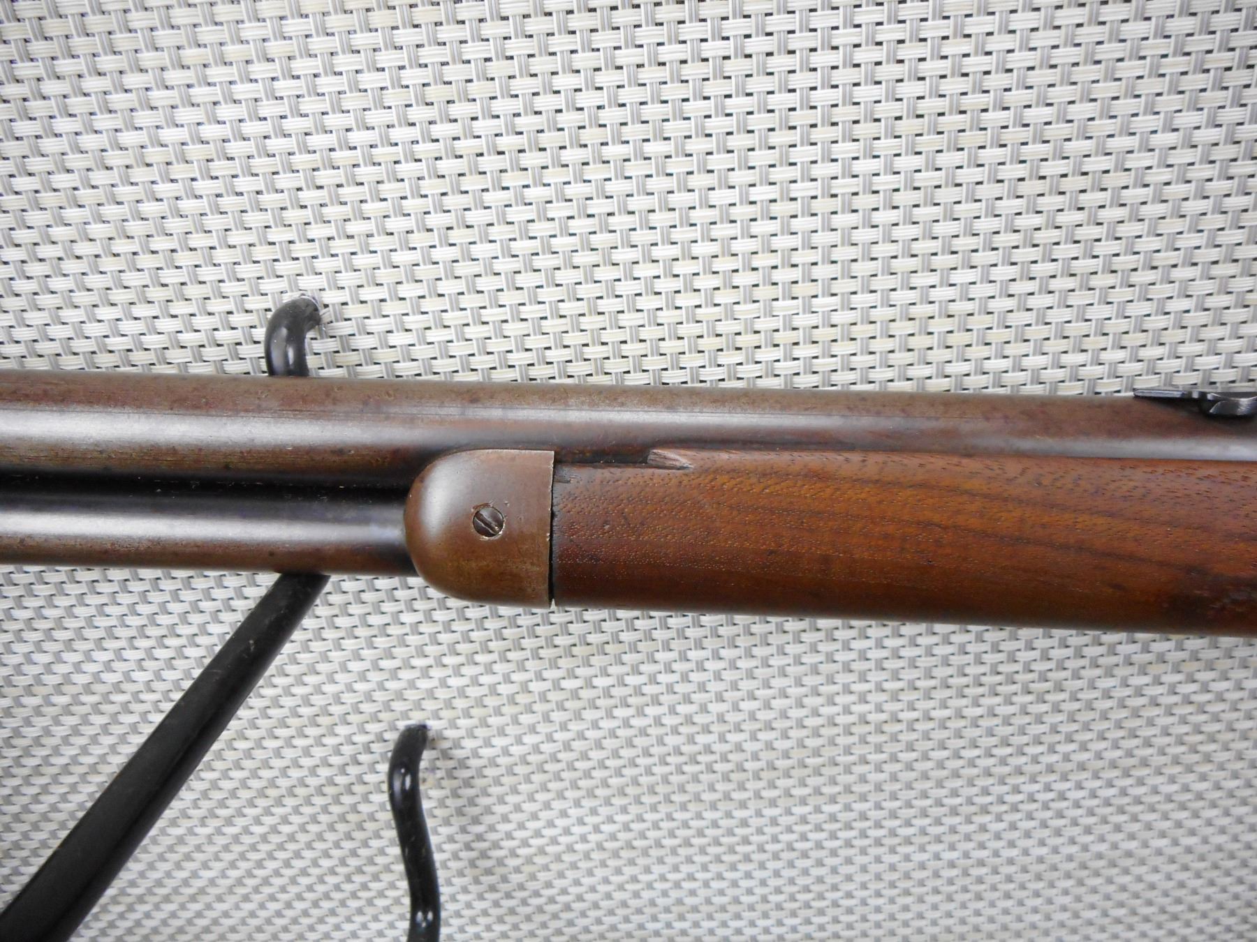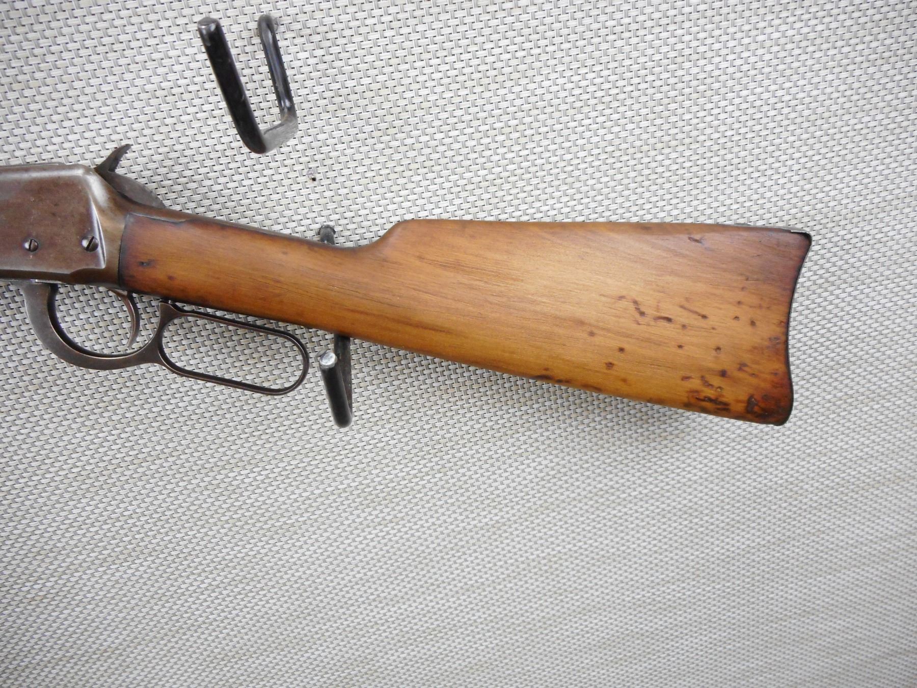 WINCHESTER , MODEL: 94 , CALIBER: 35-55 WIN , MANUFACTURED IN 1899, GOOD BORE WITH MINOR SCATTERED PITTING, STRONG RIFLING, REPLACED BLADE FRONT SIGHT, ADJUSTABLE REAR SIGHT, CHIP OUT OF FOREND, CARBINE BUTT PLATE WHICH MAY HAVE BEEN A SPECIAL ORDER OR REPLACEMENT, SHOWS EXTENSIVE HANDLING MARKS , SERIAL # 183659 , ACTION: LEVER ACTION RIFLE , BARREL LENGTH: 26" , CONDITION: 5/10 , STOCK # 8682 , CLASS: CANADIAN NON RESTRICTED CLASS