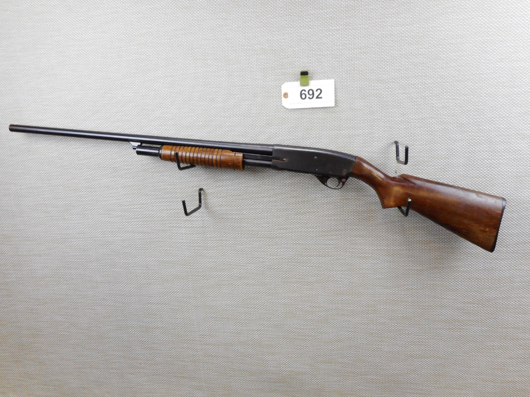 STEVENS , MODEL: 77C , CALIBER: 12GA X 2 3/4" , BORE HAS A FEW MINOR MARKS, FIXED FULL CHOKE, BEAD FRONT SIGHT, FINISH IS WORN ON THE WOOD AND SHOWS SOME HANDLING MARKS, PLASTIC BUTT PLATE IS CRACKED , SERIAL # N/A , ACTION: PUMP ACTION SHOTGUN , BARREL LENGTH: 28" , CONDITION: 5/10 , STOCK # 8697 , CLASS: CANADIAN NON RESTRICTED CLASS