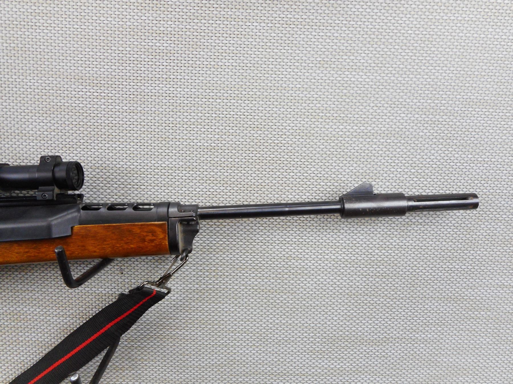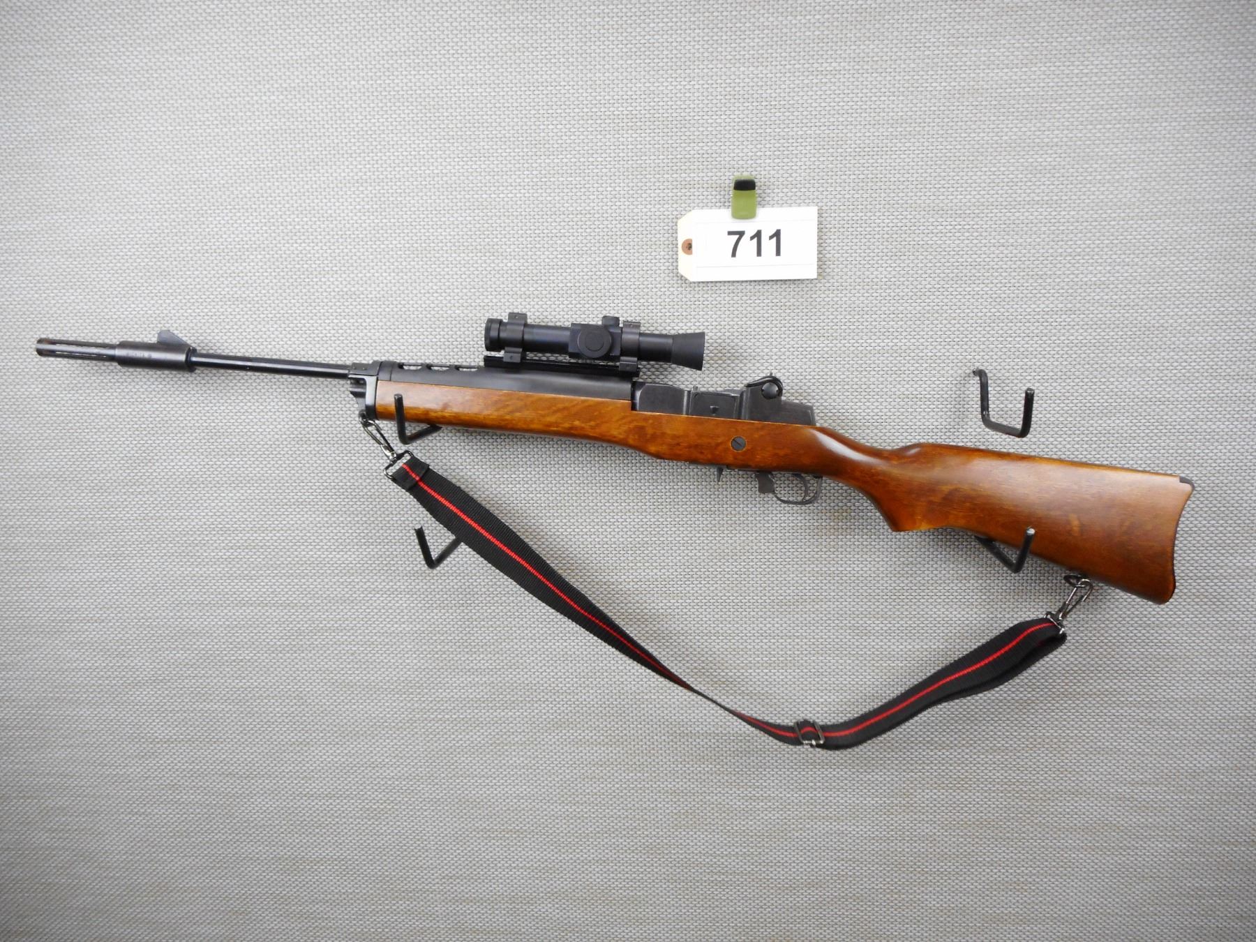 RUGER , MODEL: MINI 14 , CALIBER: 223 REM , COMES WITH MAGAZINE, ATTACHED WICHITA MUZZLE BREAK, RAMP FRONT AND PEEP APERTURE REAR SIGHT, RAM LINE BARREL SHROUD, RED DOT SCOPE, GOOD BORE, SLING SWIVELS WITH NYLON STRAP, SHOWS SOME HANDLING MARKS, HARDWOOD STOCK WITH STEEL BUTT PLATE , SERIAL # 18178078 , ACTION: SEMI ACTION RIFLE , BARREL LENGTH: 18 1/2" , CONDITION: 9/10 , STOCK # 8716 , CLASS: CANADIAN NON RESTRICTED CLASS