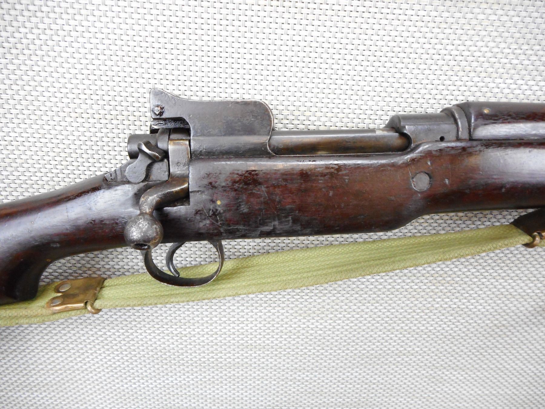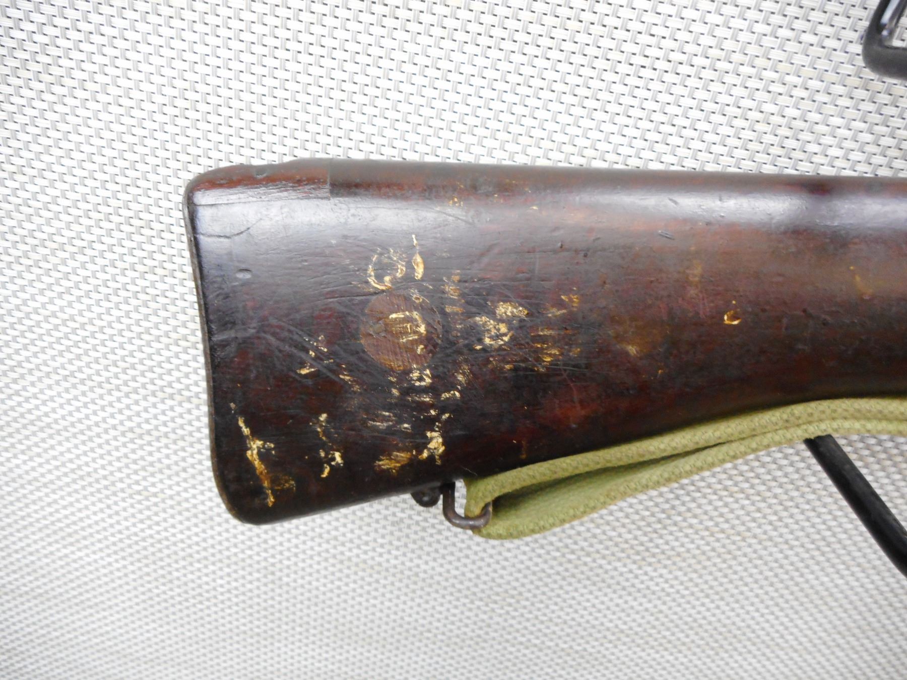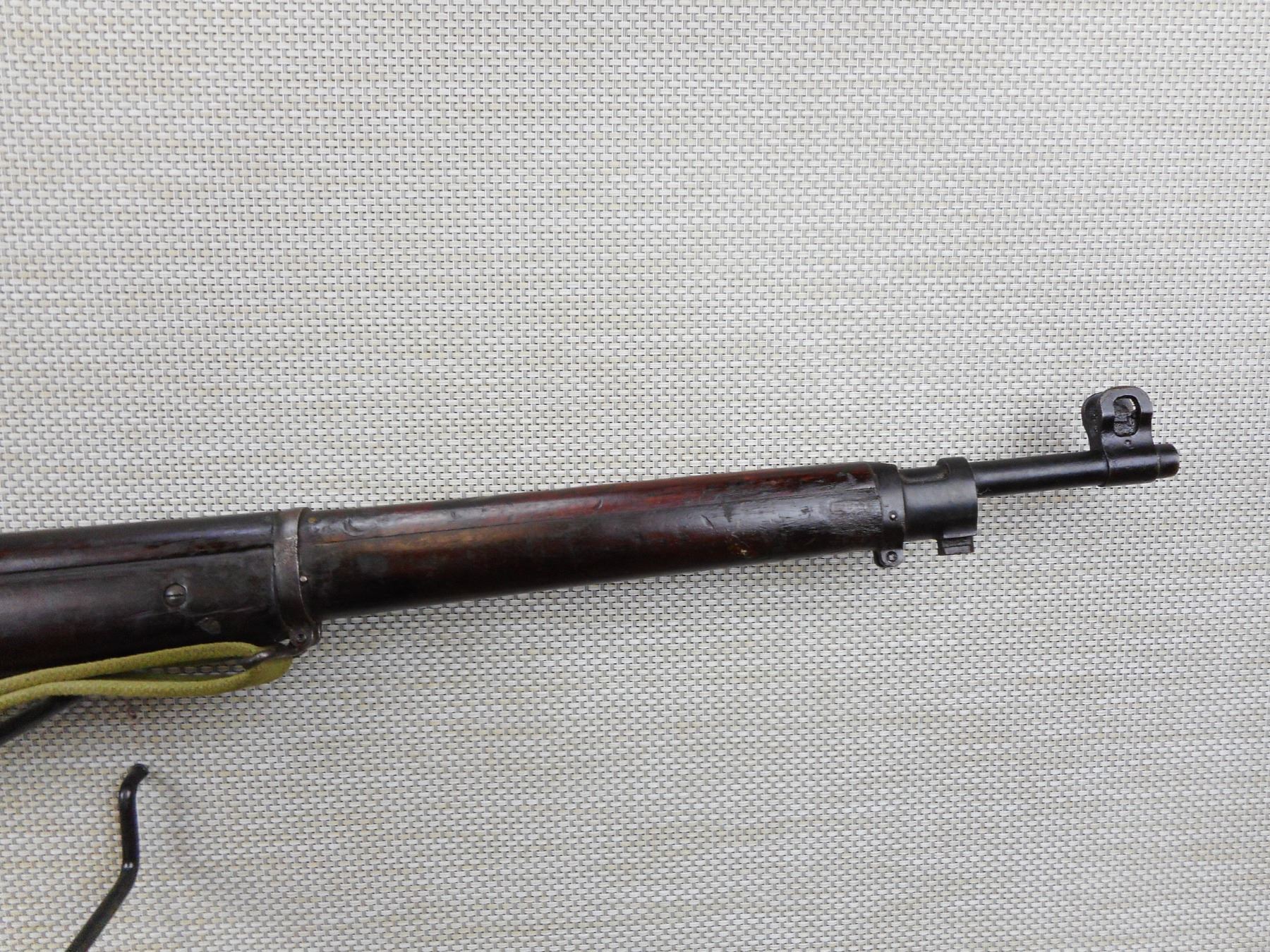 ENFIELD , MODEL: P14 , CALIBER: 303 BR , MANUFACTURED BY ERA REMINGTON EDDYSTONE ARMS, BORE IS VERY GOOD, ORIGINAL MILITARY CANVAS SLING, RETAINS FULL MILITARY CONFIGURATION WITH BARLEY CORN FRONT AND PEEP APERTURE REAR SIGHT, SHOWS SOME HANDLING MARKS, MISSING THE VOLLY SIGHT , SERIAL # 522199 , ACTION: BOLT ACTION RIFLE , BARREL LENGTH: 26" , CONDITION: 6/10 , STOCK # 8719 , CLASS: CANADIAN NON RESTRICTED CLASS