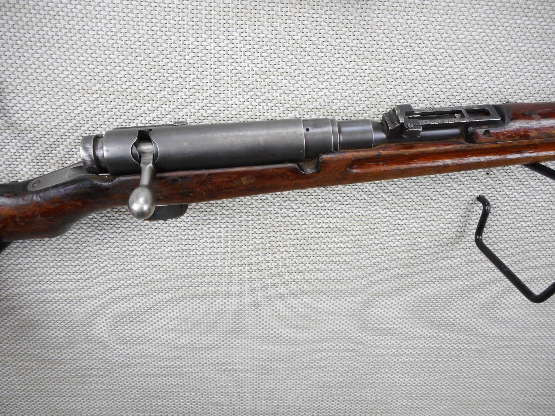 ARISAKA , MODEL: TYPE 38 , CALIBER: 6.5 X 50 JAP , BORE IS DARK, RETAINS ORIGINAL DUST COVER, MUM HAS BEEN GROUND, SHOWS EXTENSIVE HANDLING MARKS, SLING SWIVEL LOOPS, BARLEY CORN FRONT AND ADJUSTABLE REAR SIGHTS, STEEL BUTT PLATE , SERIAL # 13718 , ACTION: BOLT ACTION RIFLE , BARREL LENGTH: 31" , CONDITION: 6/10 , STOCK # 8722 , CLASS: CANADIAN NON RESTRICTED CLASS