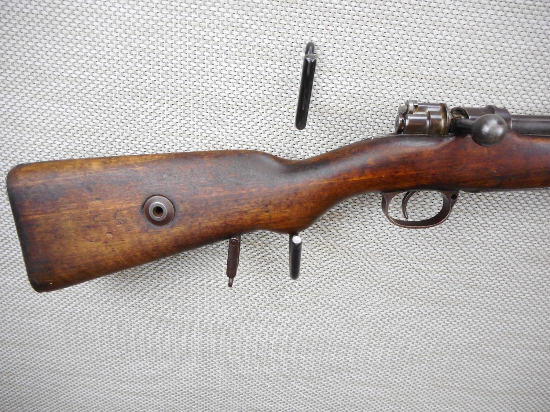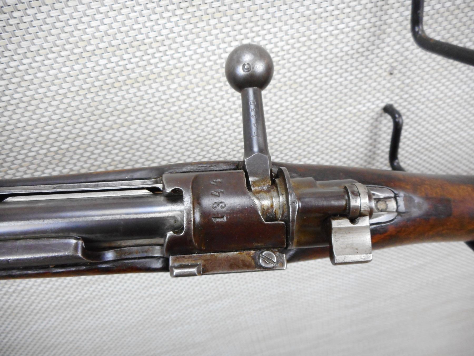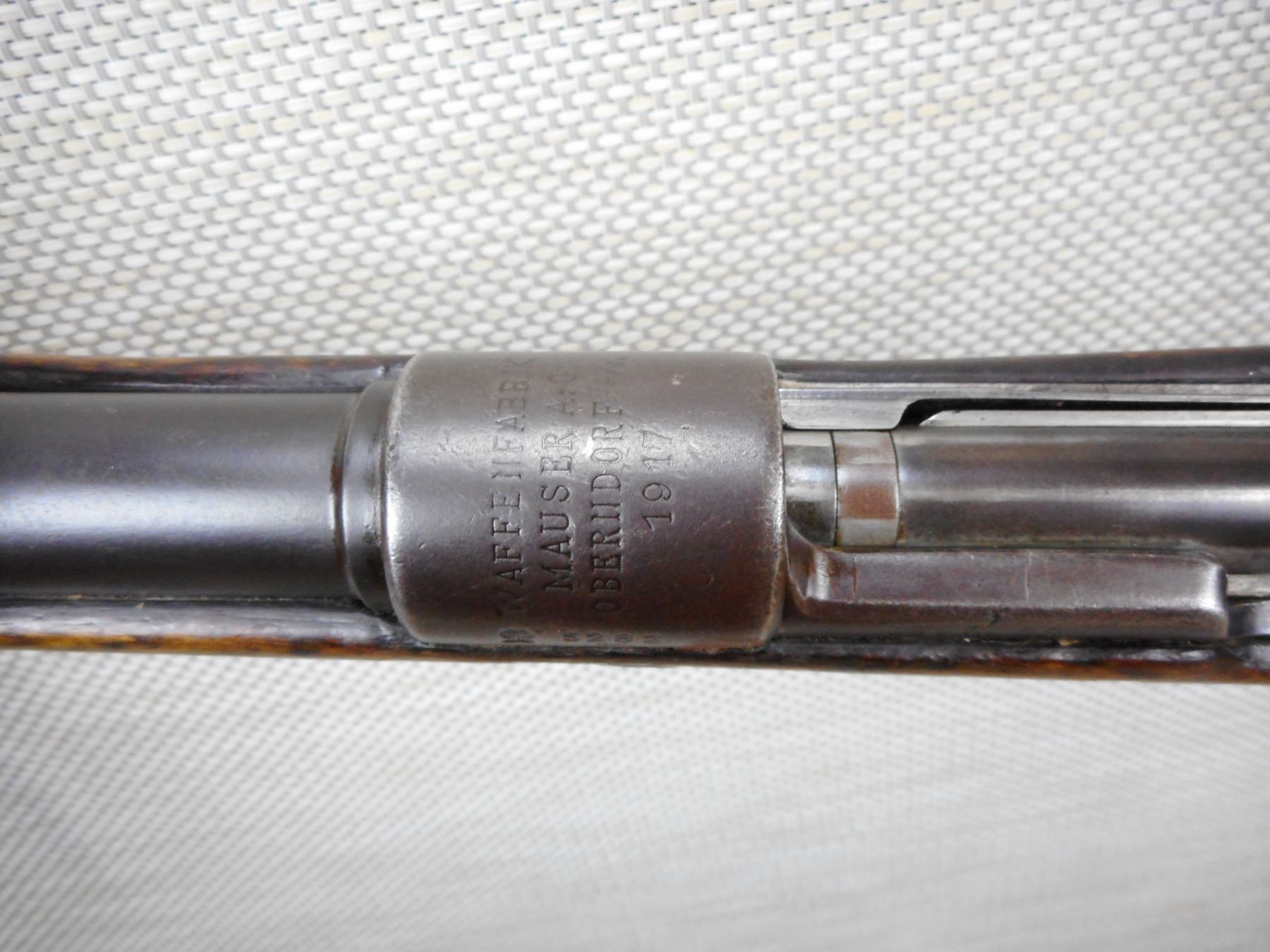 WWI ERA, MAUSER , MODEL: GEW 98 , CALIBER: 8 MM MAUSER , BOLT AND RECEIVER ARE NOT MATCHING BY SERIAL #, DARK BORE, DATED 1917 WWI ERA, MADE BY MAUSER, BLADE FRONT AND FULLY ADJUSTABLE REAR SIGHT, SLING SWIVELS, SHOWS EXTENSIVE HANDLING MARKS, RETAIN FULL MILITARY CONFIGURATION , SERIAL # 1344 / 5283 , ACTION: BOLT ACTION RIFLE , BARREL LENGTH: 30" , CONDITION: 5/10 , STOCK # 8723 , CLASS: CANADIAN NON RESTRICTED CLASS