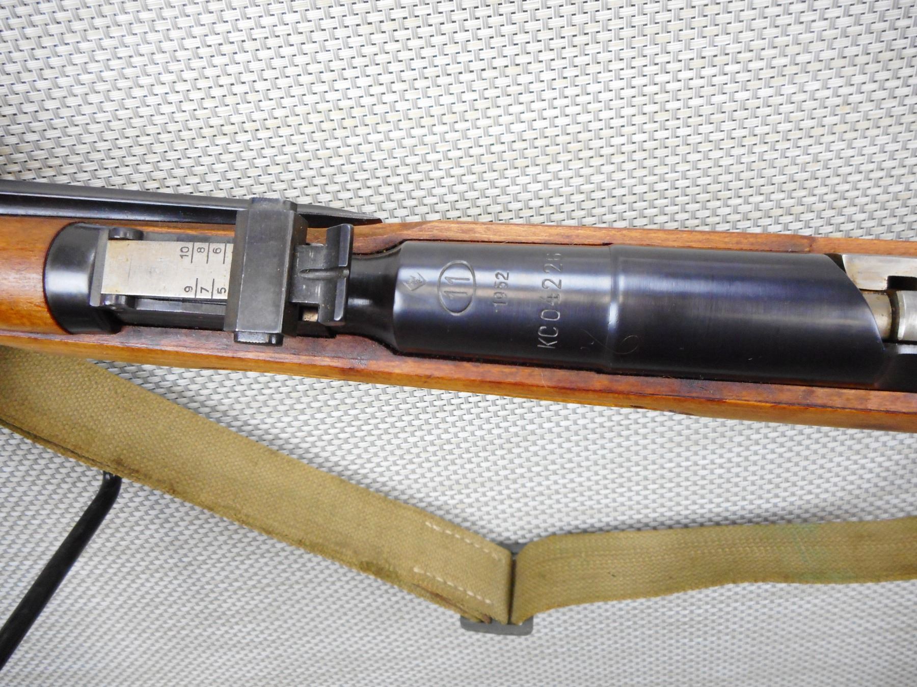 MOSIN NAGANT , MODEL: M44 , CALIBER: 7.62 X 54R , BOLT AND RECEIVER MATCH BY SERIAL #, RETAINS ORIGINAL MILITARY CONFIGURATION AND SLING, SIDE FOLDING BAYONET, HOODED FRONT AND ADJUSTABLE REAR SIGHTS,MADE IN FACTORY 11 POLAND, SHOWS VERY LITTLE HANDLING MARKS, STEEL BUTT PLATE , SERIAL # KC04226 , ACTION: BOLT ACTION RIFLE , BARREL LENGTH: 21" , CONDITION: 8/10 , STOCK # 8734 , CLASS: CANADIAN NON RESTRICTED CLASS