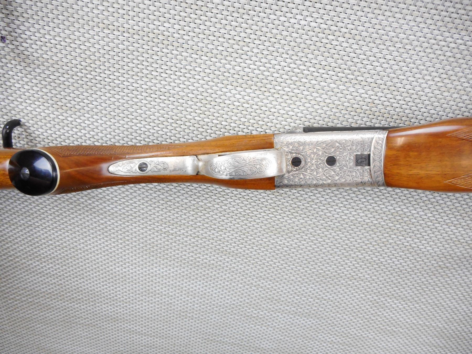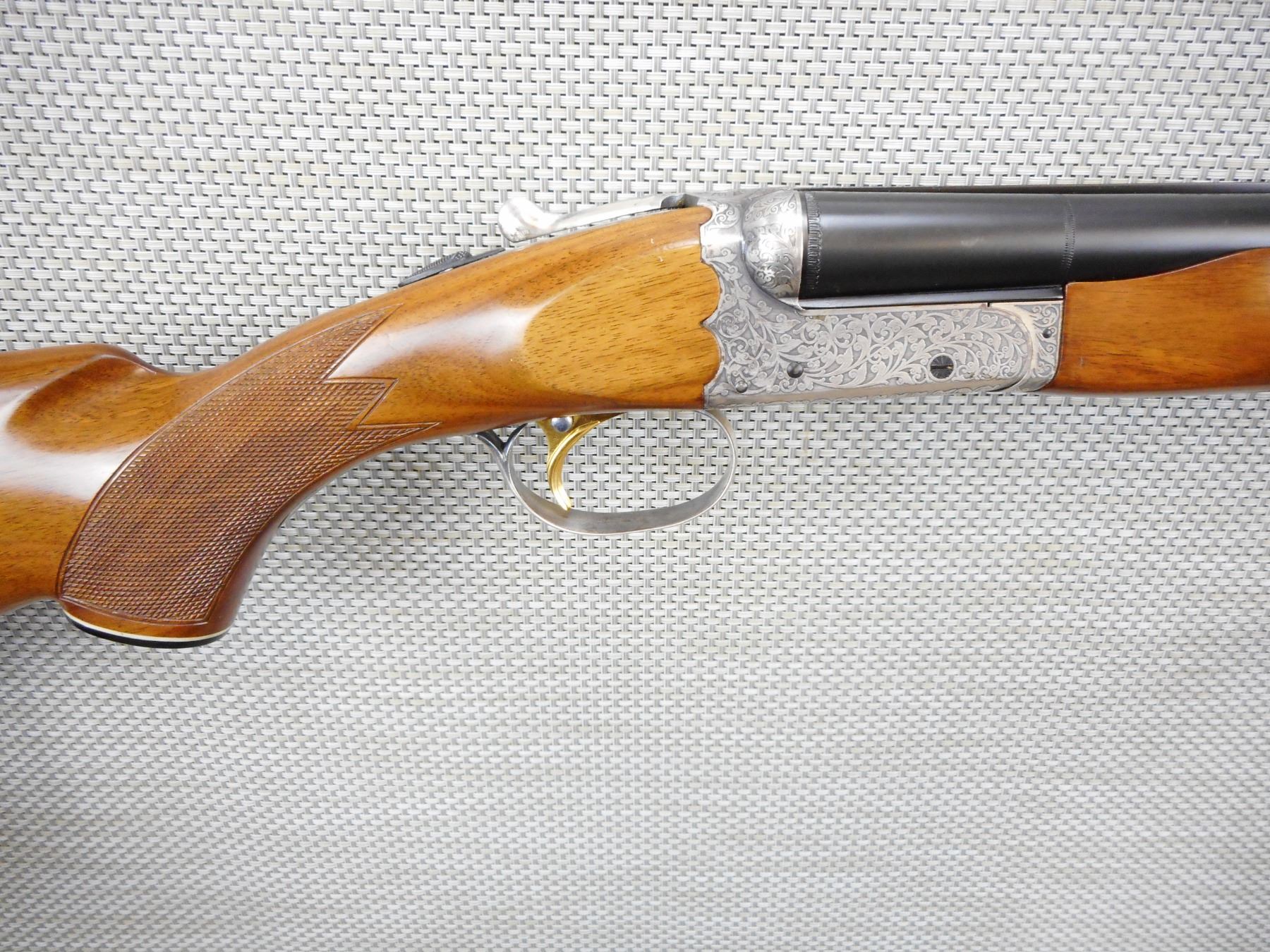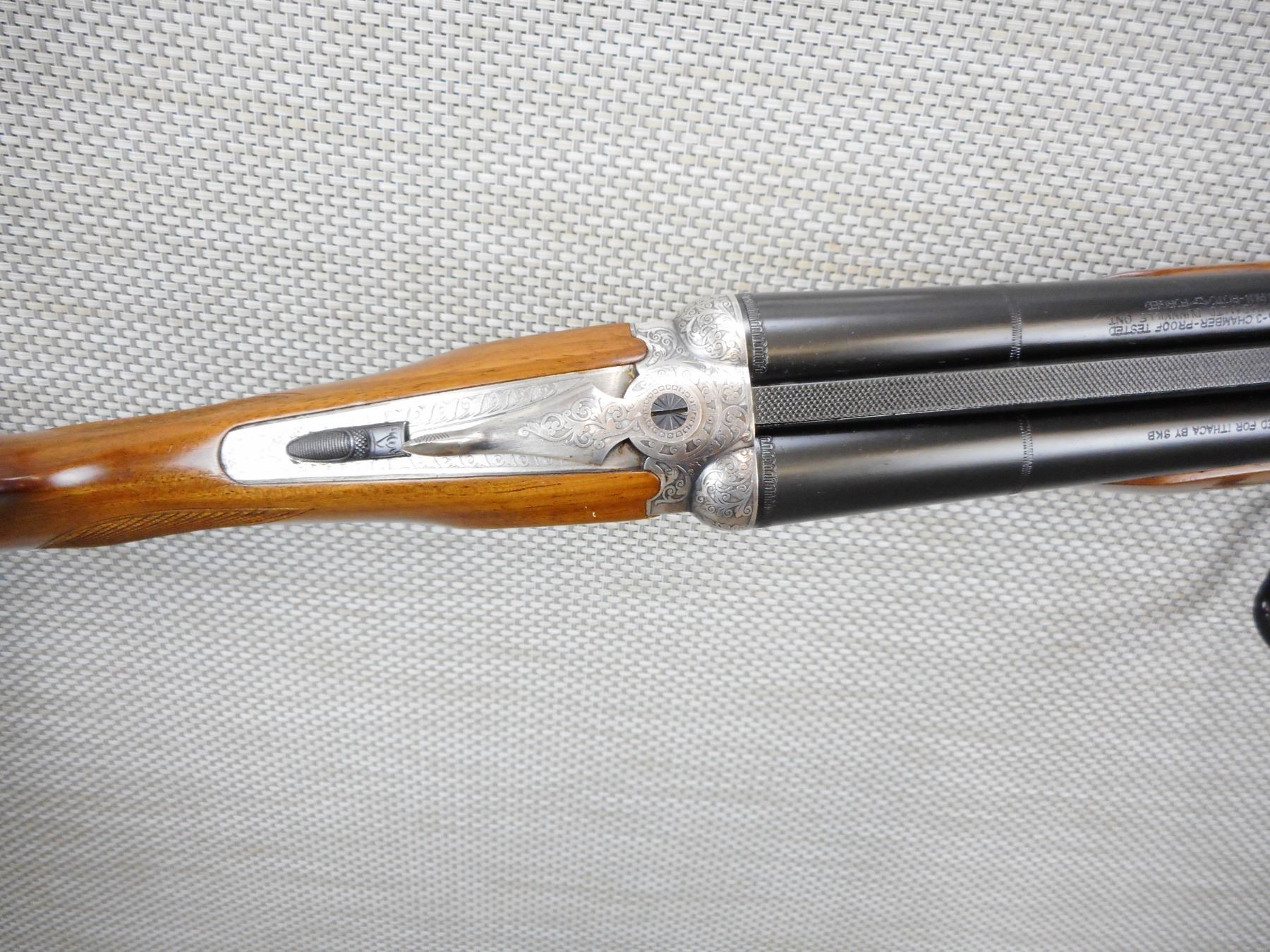 ITHACA , MODEL: 200 E , CALIBER: 20GA X 3" , COMES WITH MANUAL, FIXED FULL AND MODIFIED CHOKES, BORE IS EXCELLENT, RICHLY ENGRAVED RECEIVER, CHECKERED BEAVERTAIL FOREND AND CAPPED PISTOL GRIP BUTT STOCK, SINGLE PULL TRIGGER, PLASTIC BUTT PLATE, FIBER OPTIC FRONT AND BRASS MID BEAD SIGHT, SHOWS VERY LITTLE HANDLING MARKS , SERIAL # 6208204 , ACTION: SIDE BY SIDE BREAK ACTION SHOTGUN , BARREL LENGTH: 28" , CONDITION: 9/10 , STOCK # 8750 , CLASS: CANADIAN NON RESTRICTED CLASS
