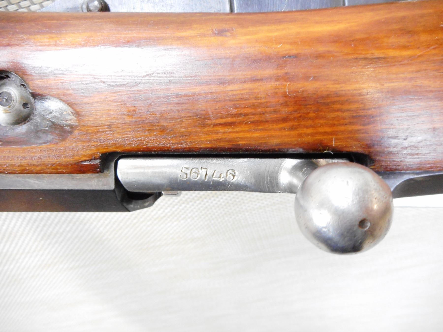 MOSIN NAGANT , MODEL: 1891/30 , CALIBER: 7.62 X 54R , BOLT AND RECEIVER MATCH BY SERIAL #, TULA ARSENAL, DATED 1931, BORE IS DARK, HOODED FRONT AND ADJUSTABLE REAR SIGHT, RETAINS FULL MILITARY CONFIGURATION, SHOWS SOME HANDLING MARKS, STEEL BUTT PLATE , SERIAL # 56746 , ACTION: BOLT ACTION RIFLE , BARREL LENGTH: 29" , CONDITION: 7/10 , STOCK # 8765 , CLASS: CANADIAN NON RESTRICTED CLASS