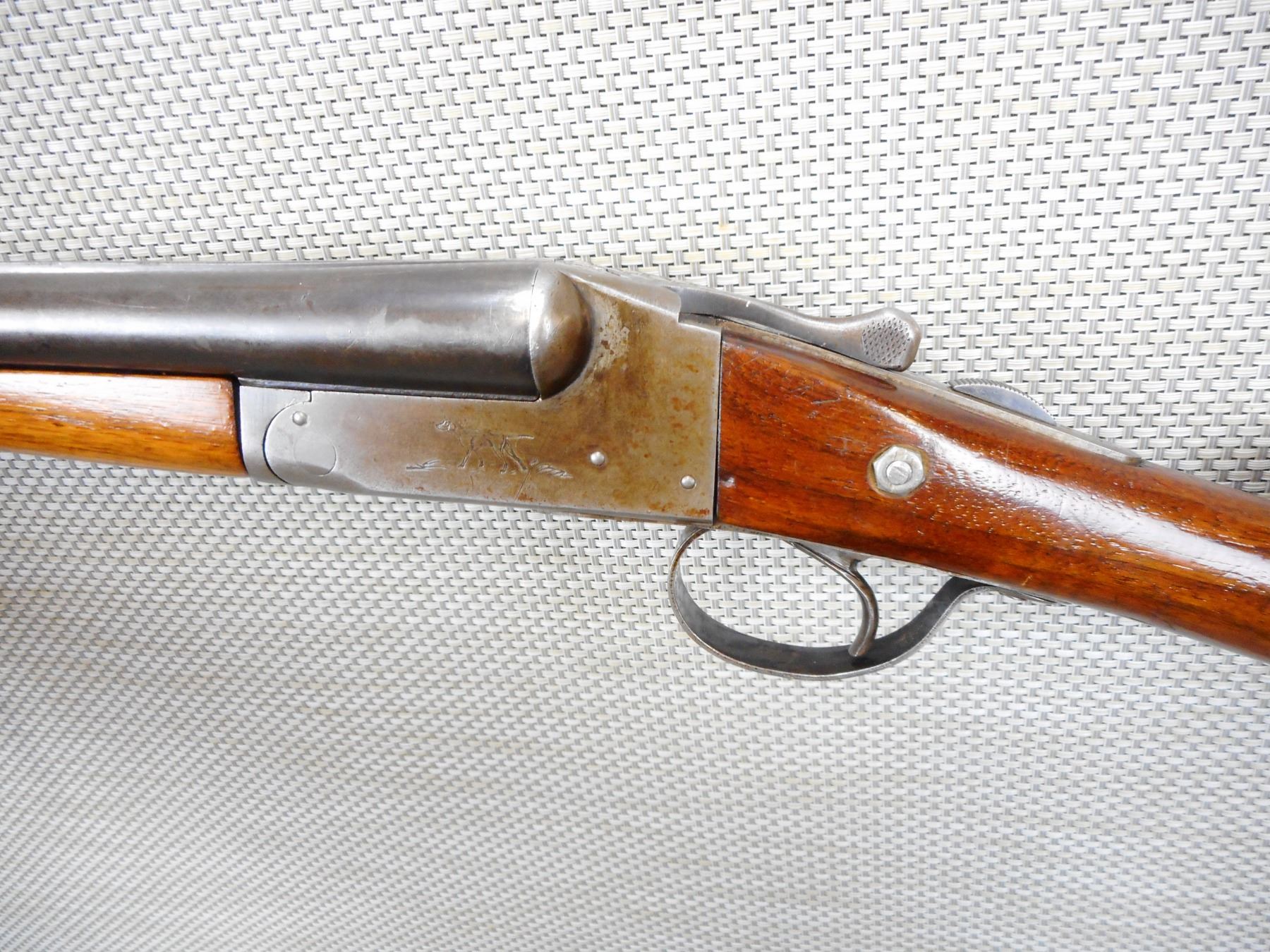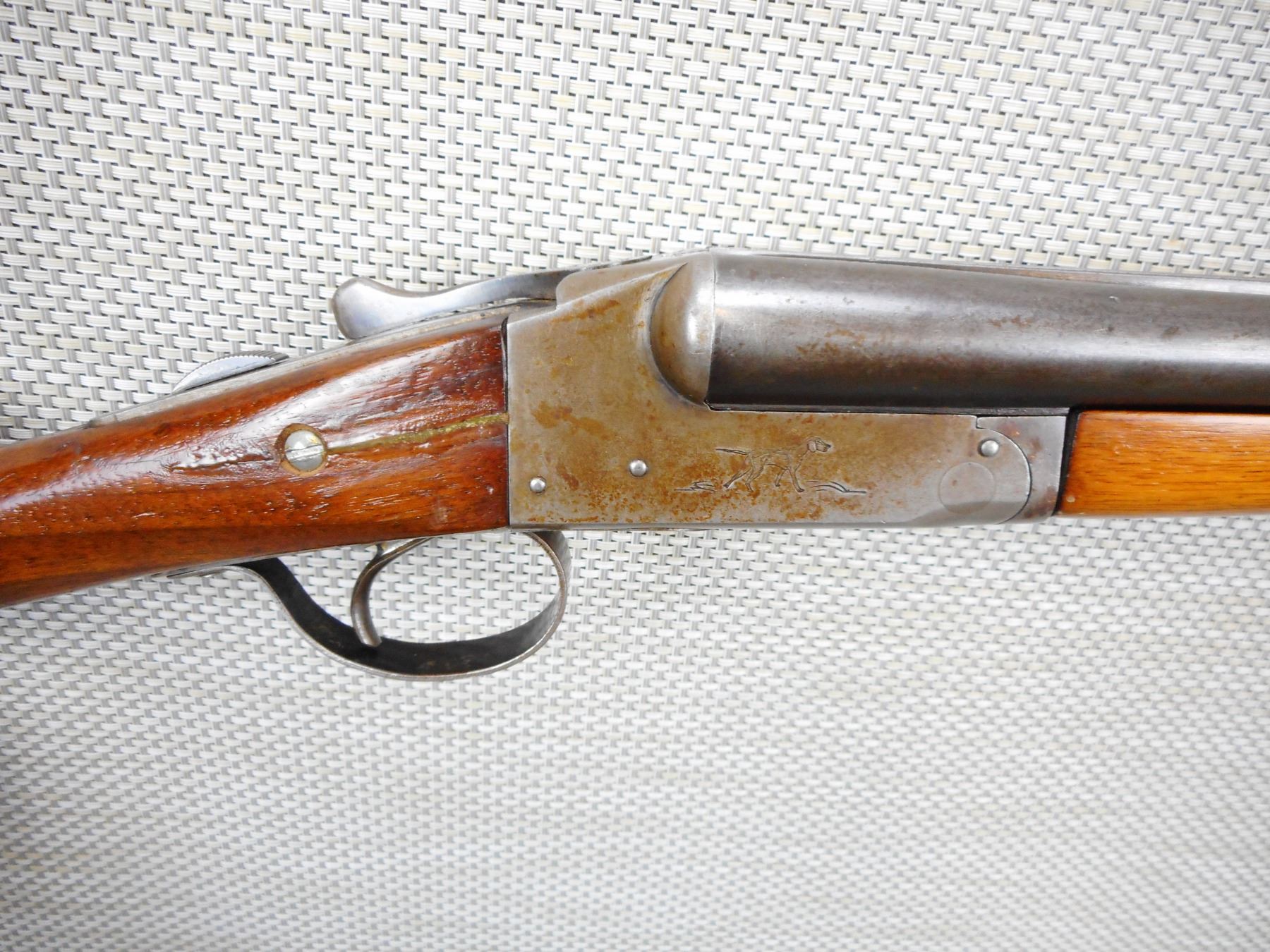 WESTERN ARMS , MODEL: LONG RANGE GUN , CALIBER: 16GA X 2 3/4" , MADE BY ITHACA,RIGHT BARREL HAS SCATTERED PITTING, SINGLE TRIGGER, FIXED FULL AND MODIFIED CHOKES, RECEIVER BOTTOM PLATE DOES NOT SEAT PROPERLY, FORESTOCK SCREW HOLES ARE STIPPED, BEAD FRONT SIGHT, STOCK IS CRACKED ANDHAS BEEN CARACKED AND REPAIRED AT THE WRIST, SHOWS SOME HANDLING MARKS, VENTED RUBBER RECOIL PAD , SERIAL # 61716 , ACTION: SIDE BY SIDE BREAK ACTION , BARREL LENGTH: 28" , CONDITION: 4/10 , STOCK # 8809 , CLASS: CANADIAN NON RESTRICTED CLASS