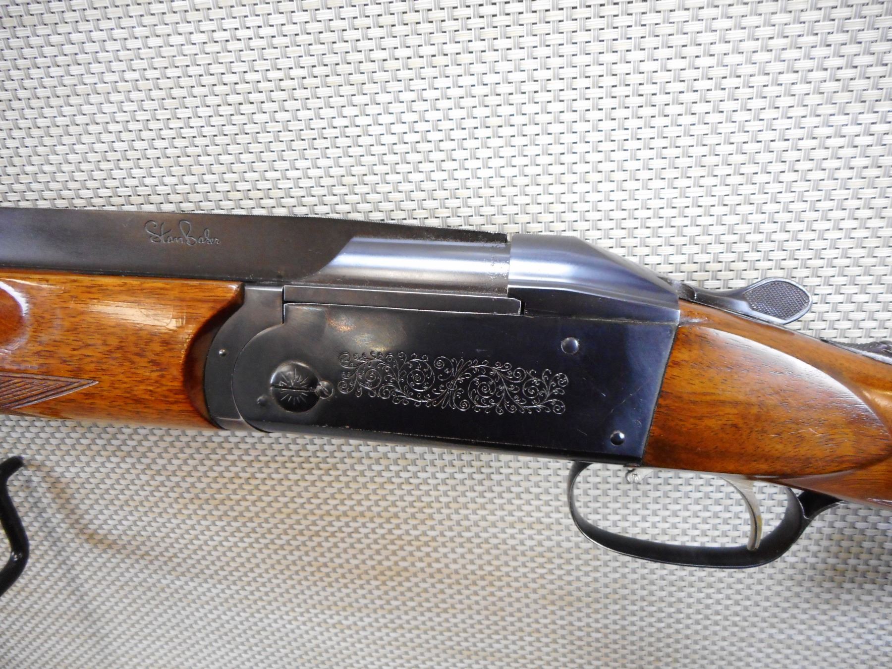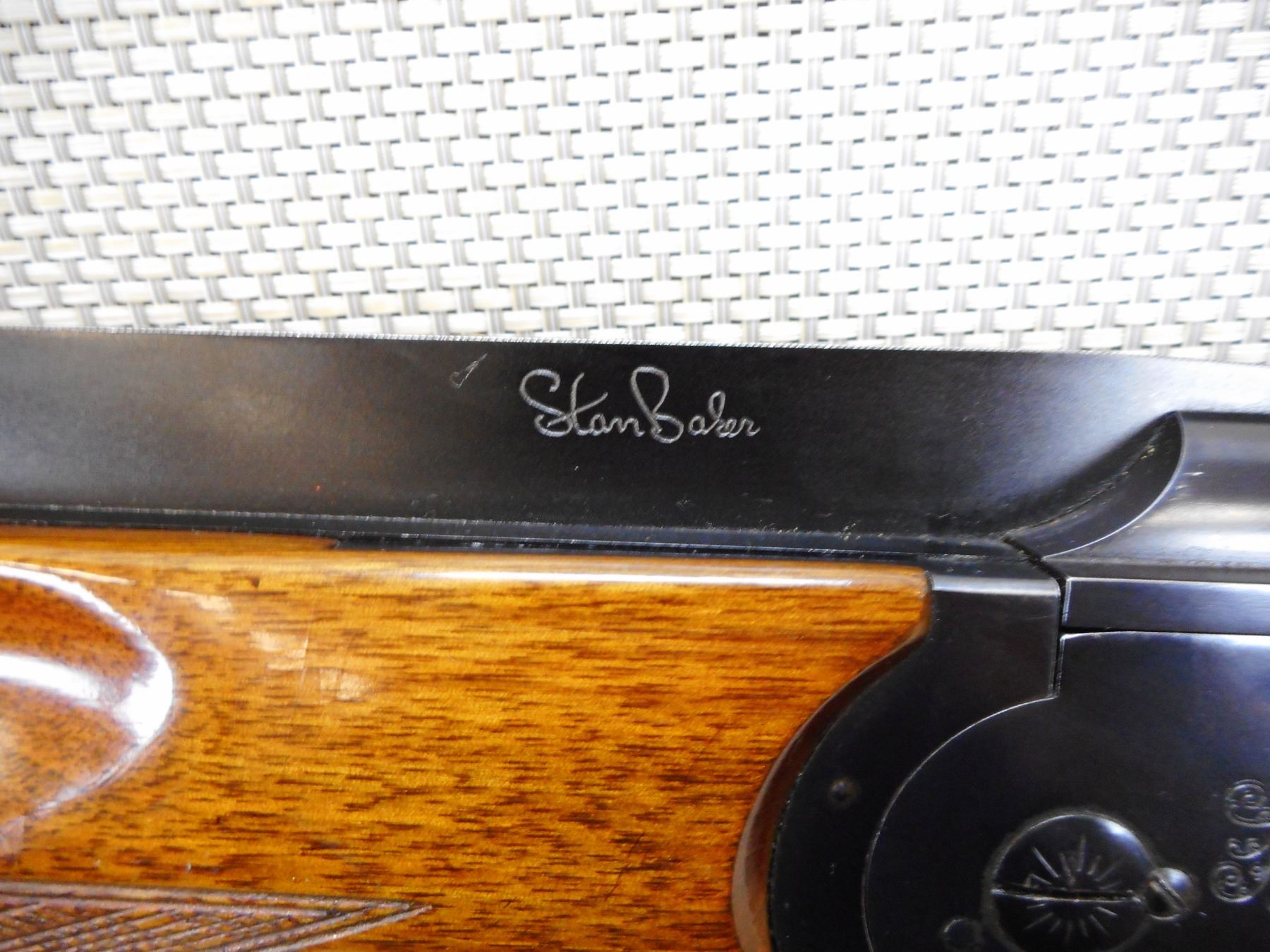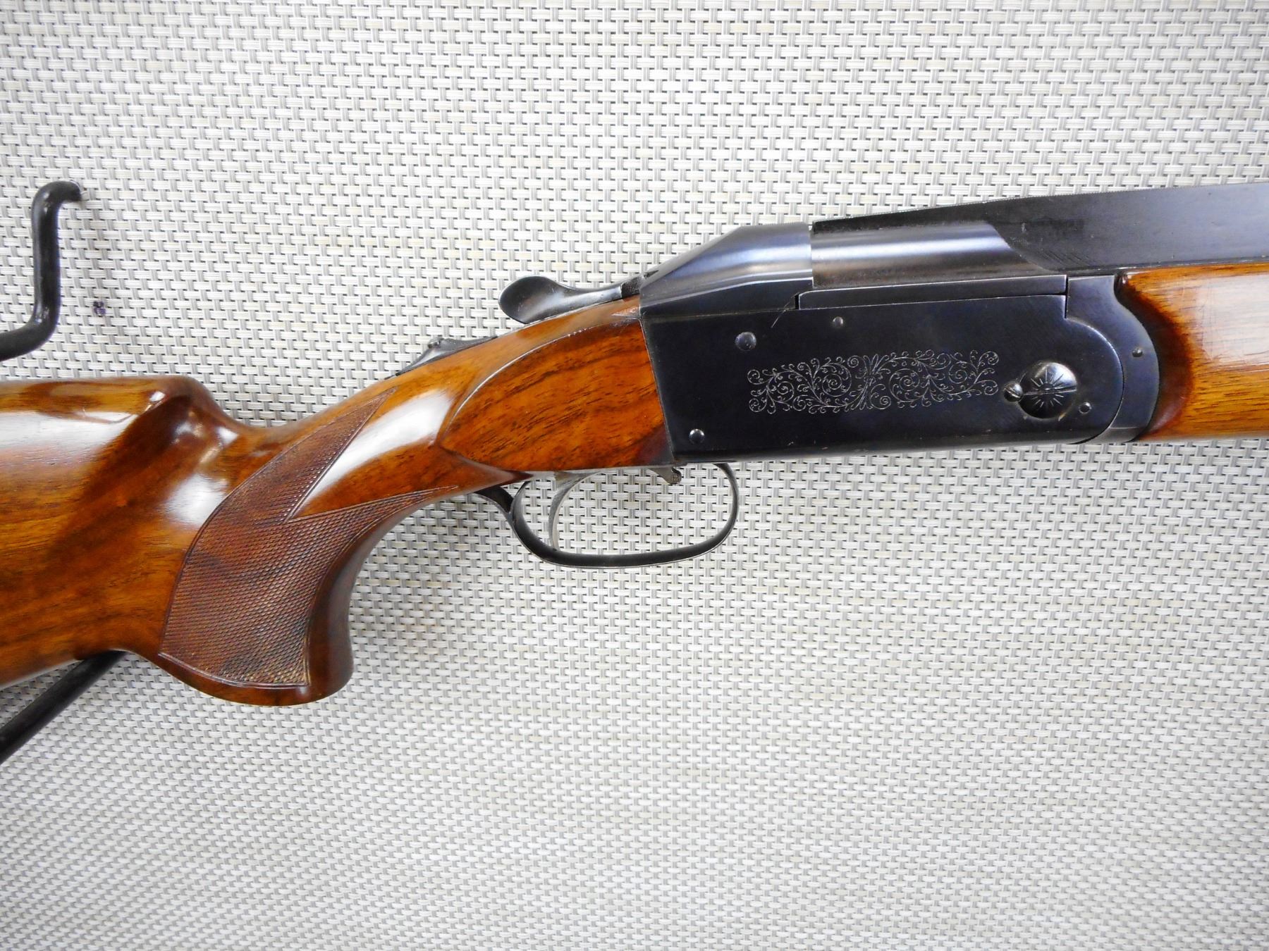 KREIGHOFF , MODEL: 32 , CALIBER: 12GA X 2 3/4" , FEATURES CUSTOM STAN BAKER SINGLE SHOT BARREL WITH REMOVABLE CHOKE TUBES, BORES ARE VERY GOOD, OVER SIZED VENTED RIB ON BARREL, WHITE BEAD FRONT AND WHITE BEAD MID SIGHTS, CONVERTED TO SINGLE TRIGGER, CHECKERED FOREND AND SEMI PISTOL GRIP MONTE CARLO BUTT STOCK, RUBBER RECOIL PAD, SHOWS VERY LITTLE HANDLING MARKS, LIGHTLY ENGRAVED RECEIVER , SERIAL # 9133 , ACTION: SINGLE SHOT BREAK ACTION SHOTGUN , BARREL LENGTH: 34" , CONDITION: 8/10 , STOCK # 8812 , CLASS: CANADIAN NON RESTRICTED CLASS