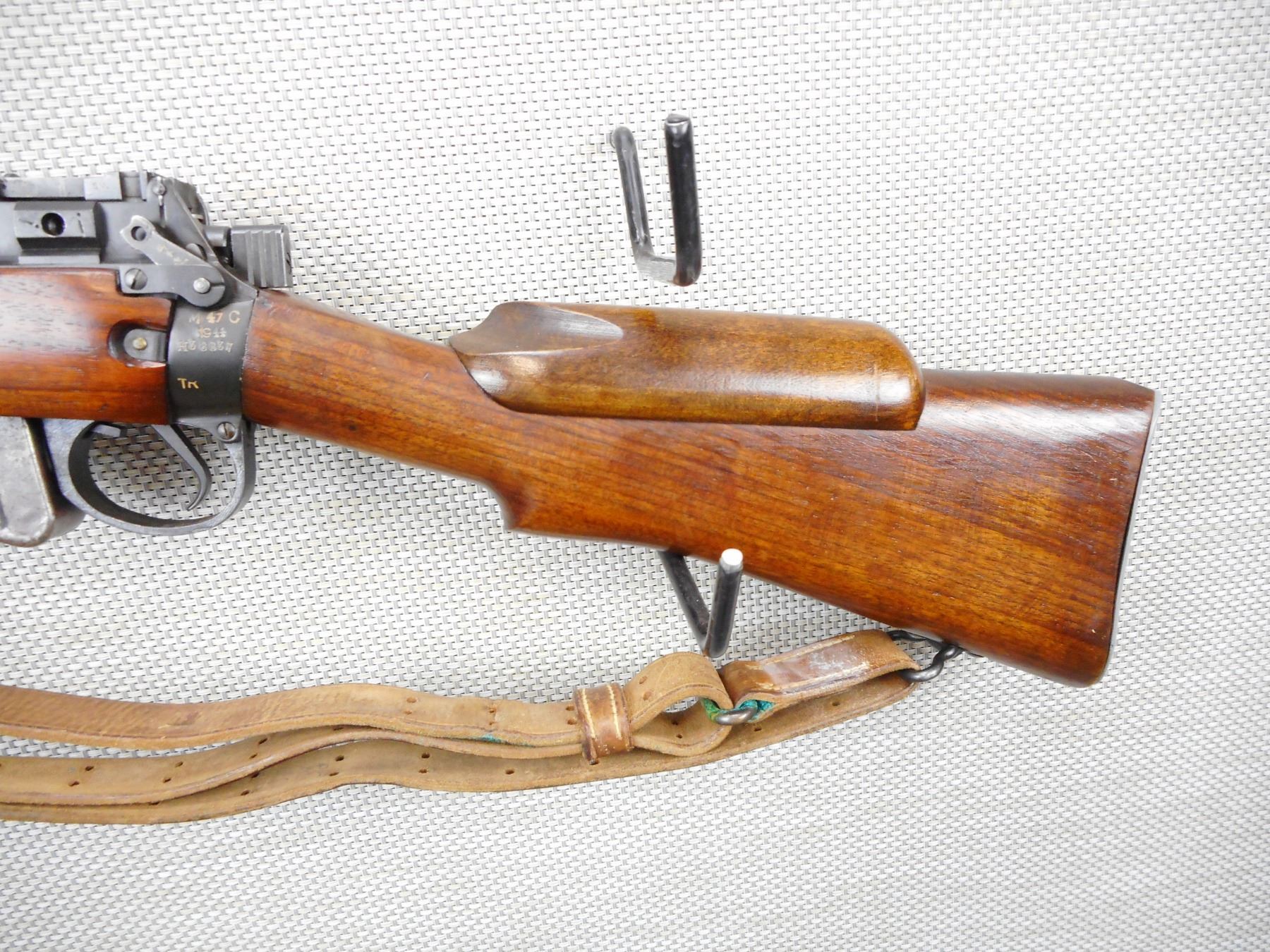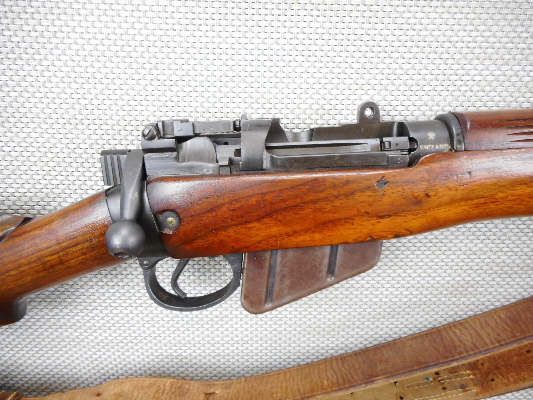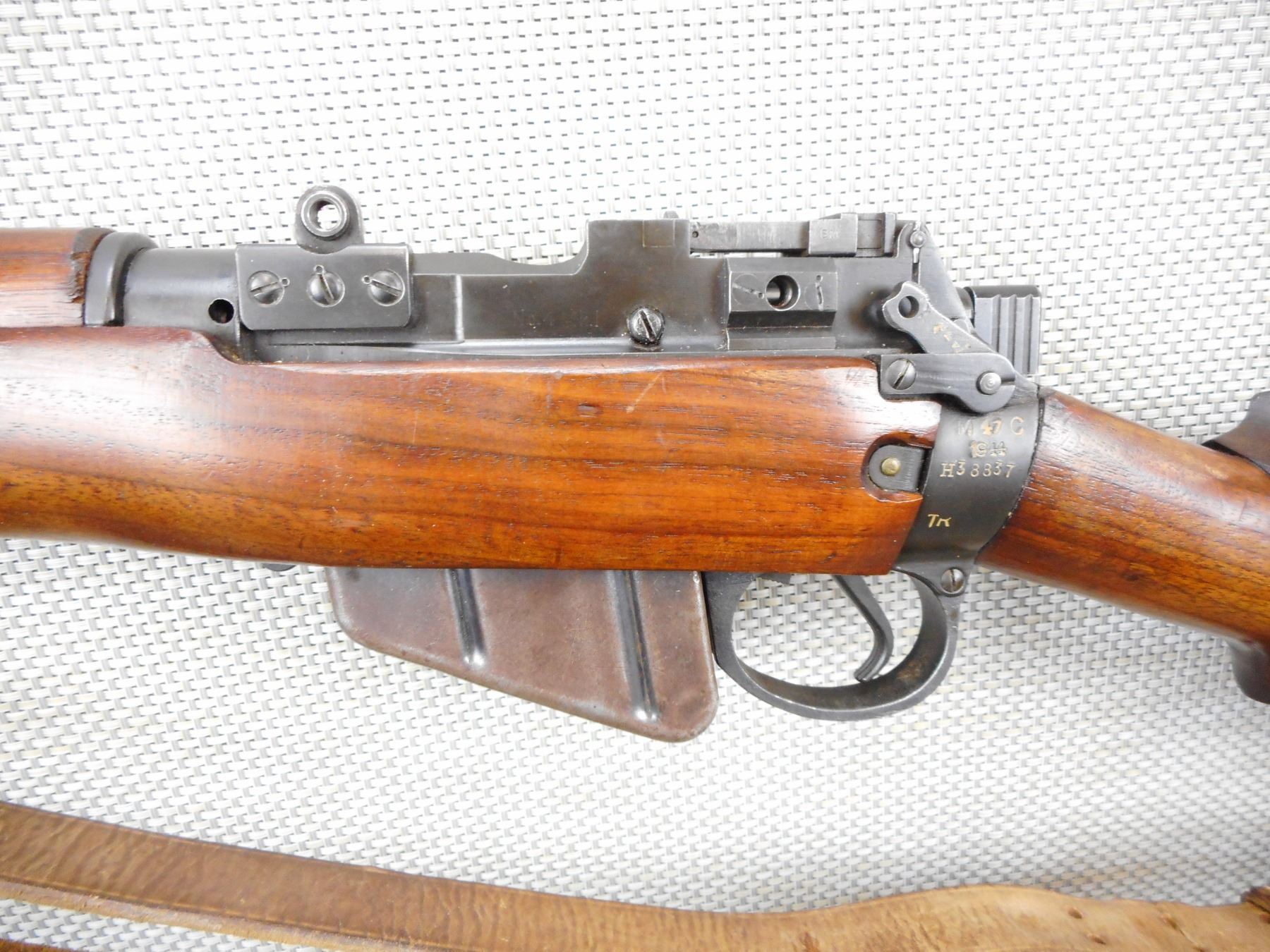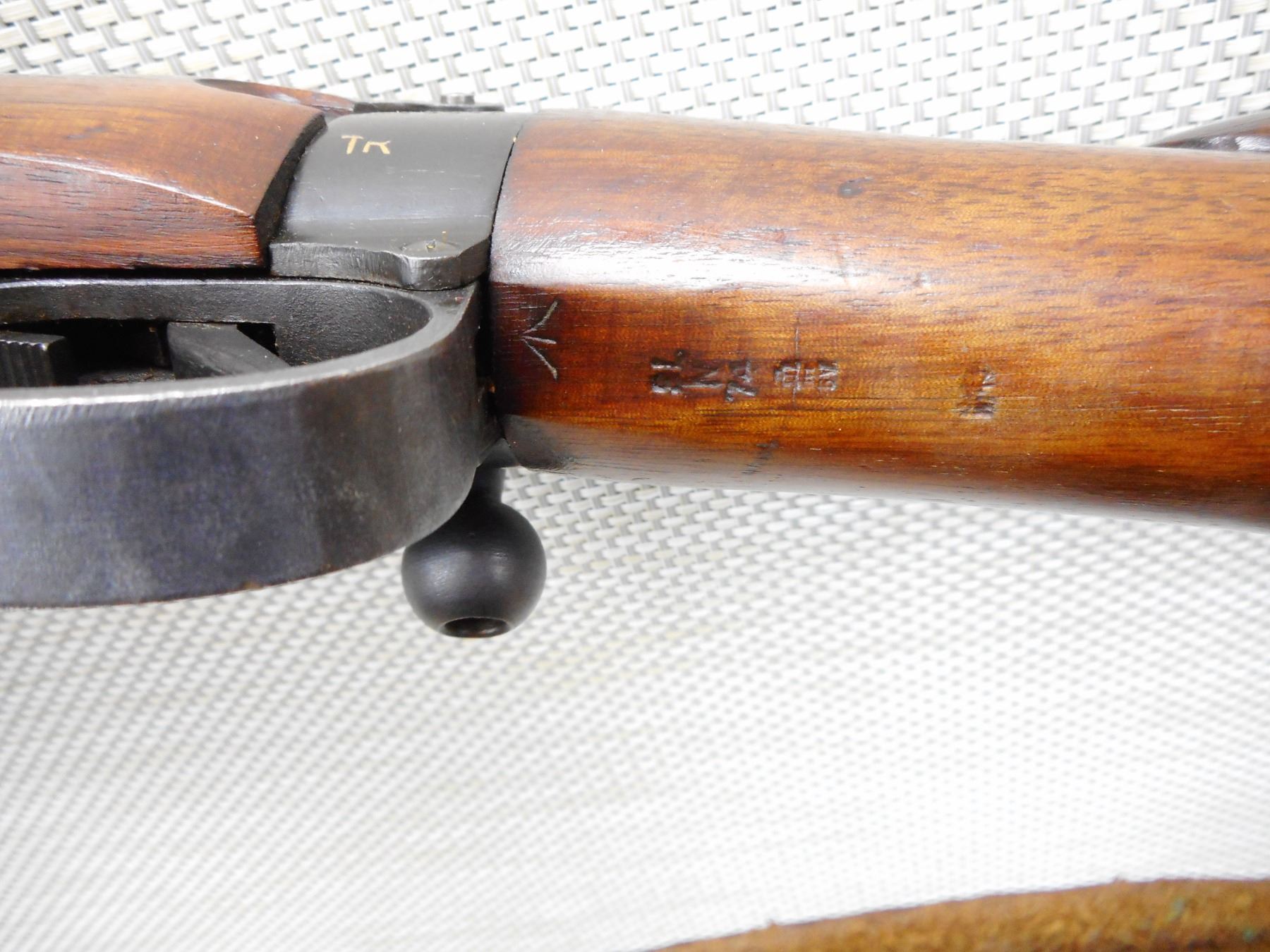 RARE, WWII ERA, LEE ENFIELD , MODEL: NO 4 MKI T SNIPER , CALIBER: 303 BR , COMES WITH WOODEN TRANSIT CHEST, AND SAVAGE MARK MAGAZINE, MATCHING BOLT AND RECEIVER BY SERIAL #, DATED 1944 WWII ERA, STOCK NUMBERED TO RIFLE, BSA SHIRLEY IS THE MANUFACTURER, HAS A NO 32 MK3 SCOPE WITH LEATHER COVER, VERY GOOD BORE, RECEIVER HAS T4 STAMP, STEEL BUTT PLATE, BARLEY CORN FRONT AND PEEP APERTURE REAR SIGHT, SHOWS VERY LITTLE HANDLING MARKS , SERIAL # H38837 , ACTION: BOLT ACTION RIFLE , BARREL LENGTH: 26" , CONDITION: 8/10 , STOCK # 8820 , CLASS: CANADIAN NON RESTRICTED CLASS