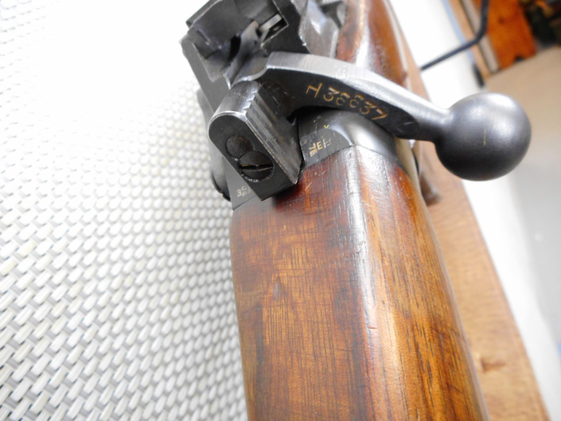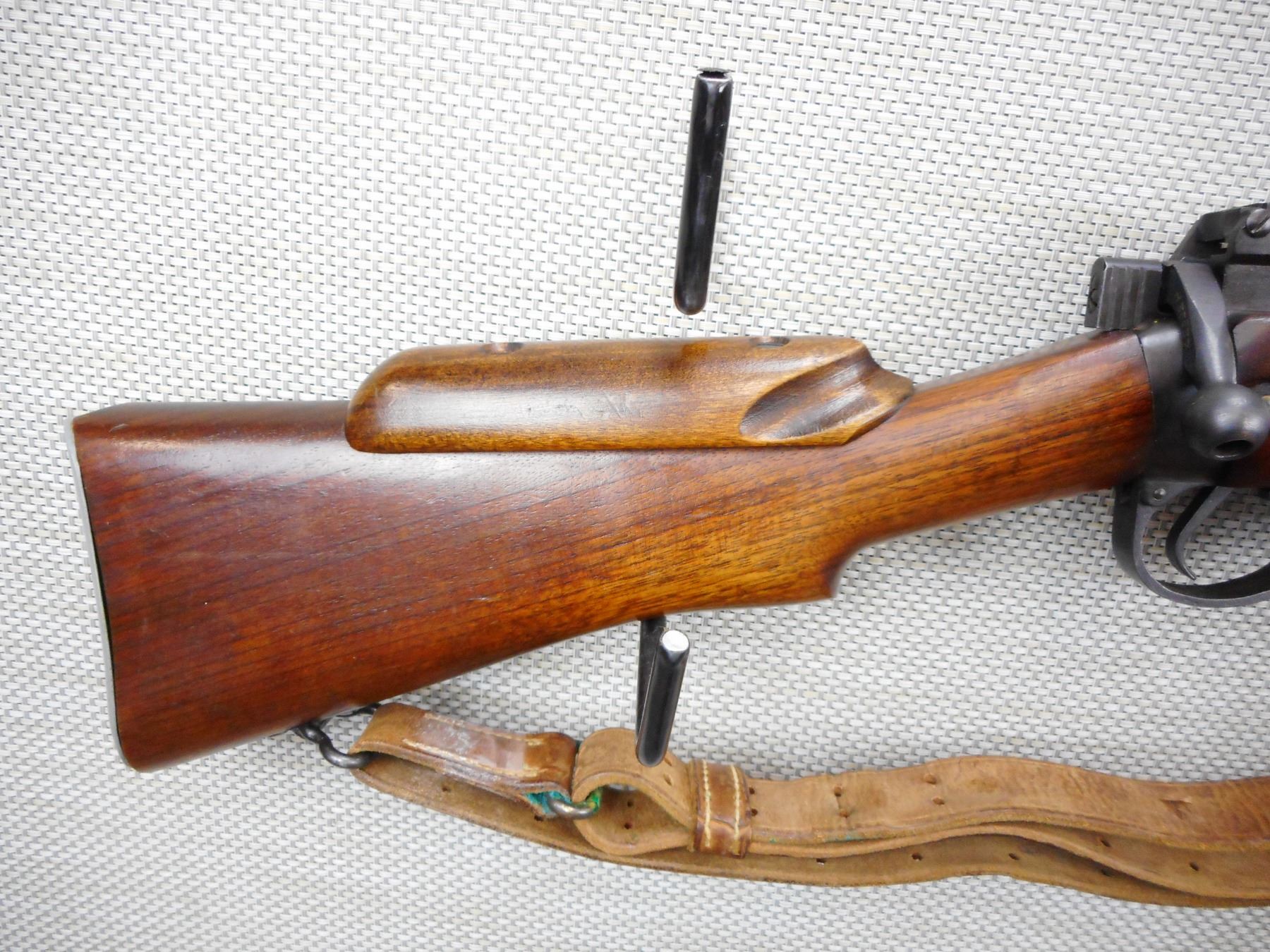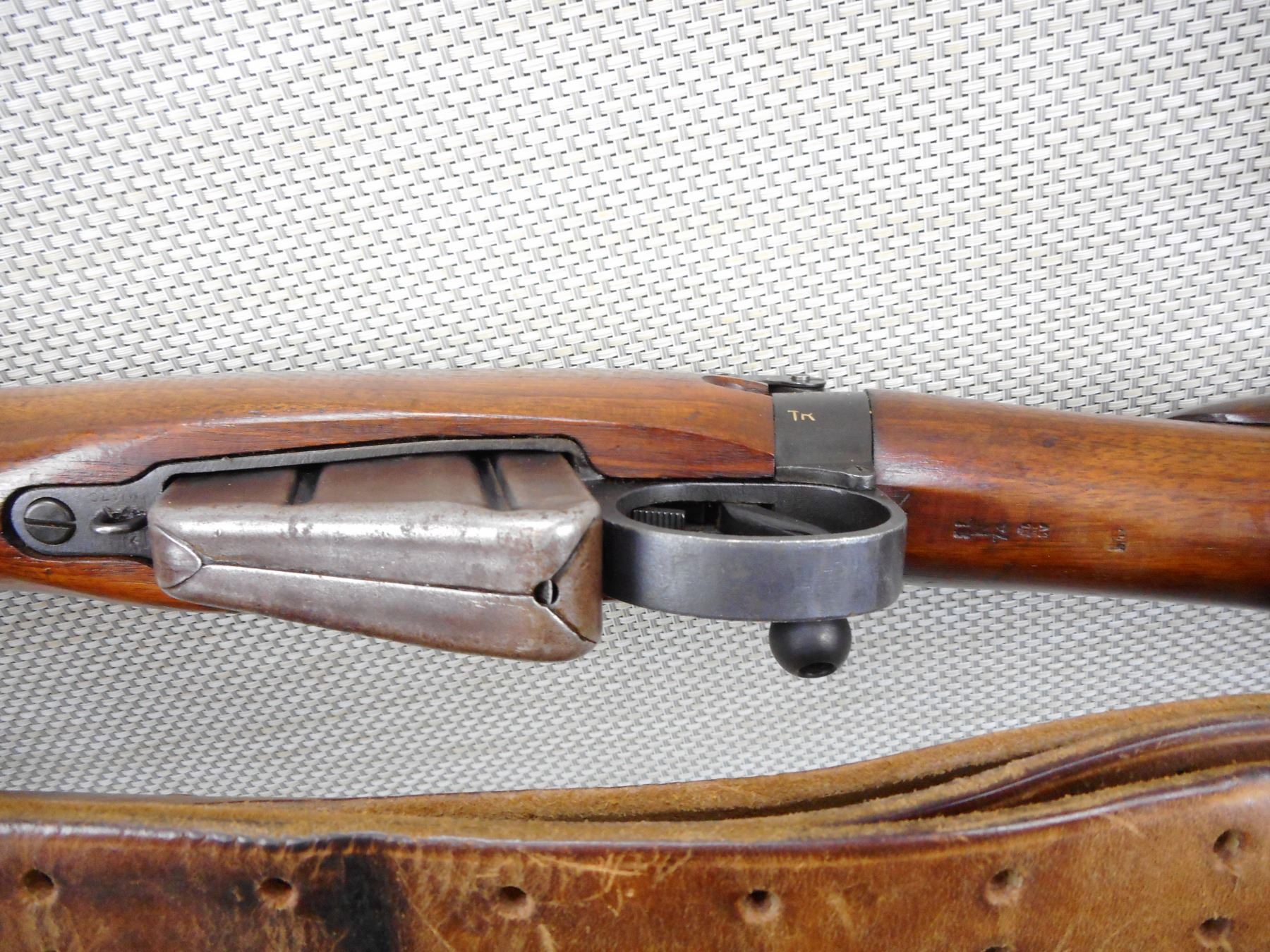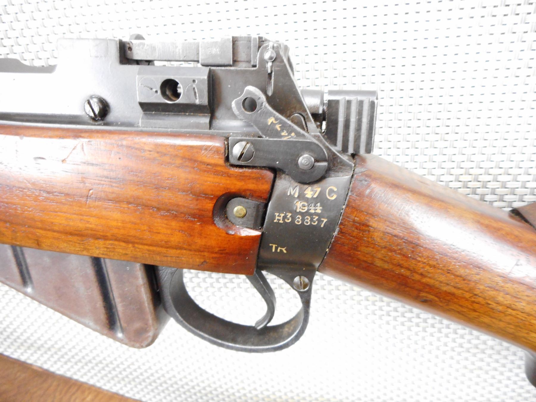 RARE, WWII ERA, LEE ENFIELD , MODEL: NO 4 MKI T SNIPER , CALIBER: 303 BR , COMES WITH WOODEN TRANSIT CHEST, AND SAVAGE MARK MAGAZINE, MATCHING BOLT AND RECEIVER BY SERIAL #, DATED 1944 WWII ERA, STOCK NUMBERED TO RIFLE, BSA SHIRLEY IS THE MANUFACTURER, HAS A NO 32 MK3 SCOPE WITH LEATHER COVER, VERY GOOD BORE, RECEIVER HAS T4 STAMP, STEEL BUTT PLATE, BARLEY CORN FRONT AND PEEP APERTURE REAR SIGHT, SHOWS VERY LITTLE HANDLING MARKS , SERIAL # H38837 , ACTION: BOLT ACTION RIFLE , BARREL LENGTH: 26" , CONDITION: 8/10 , STOCK # 8820 , CLASS: CANADIAN NON RESTRICTED CLASS