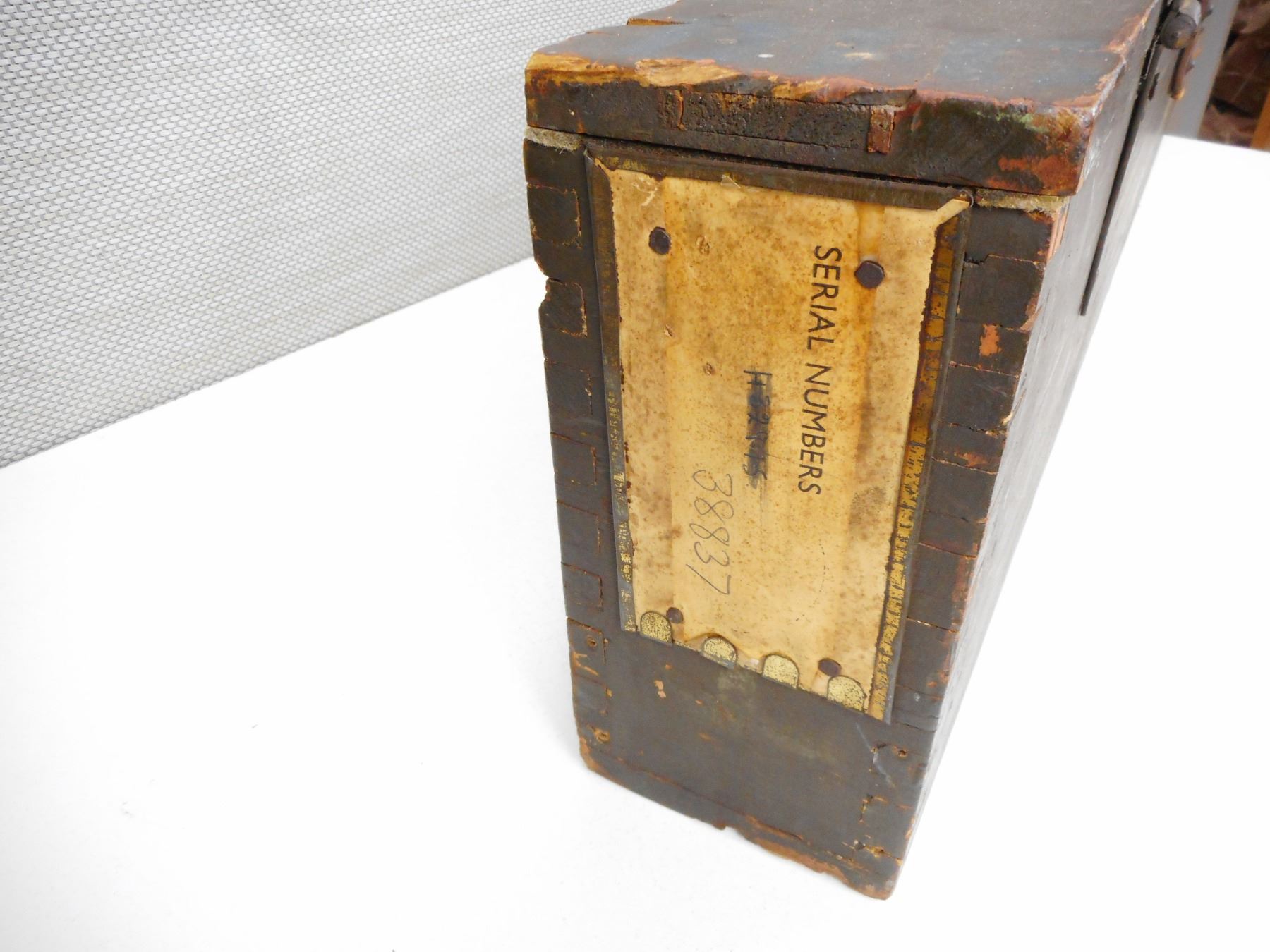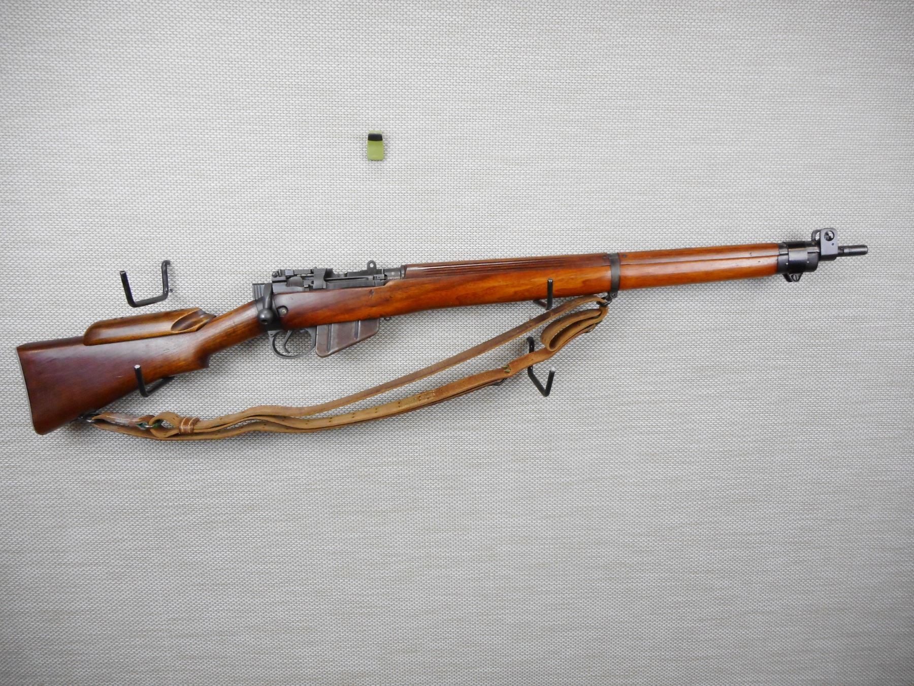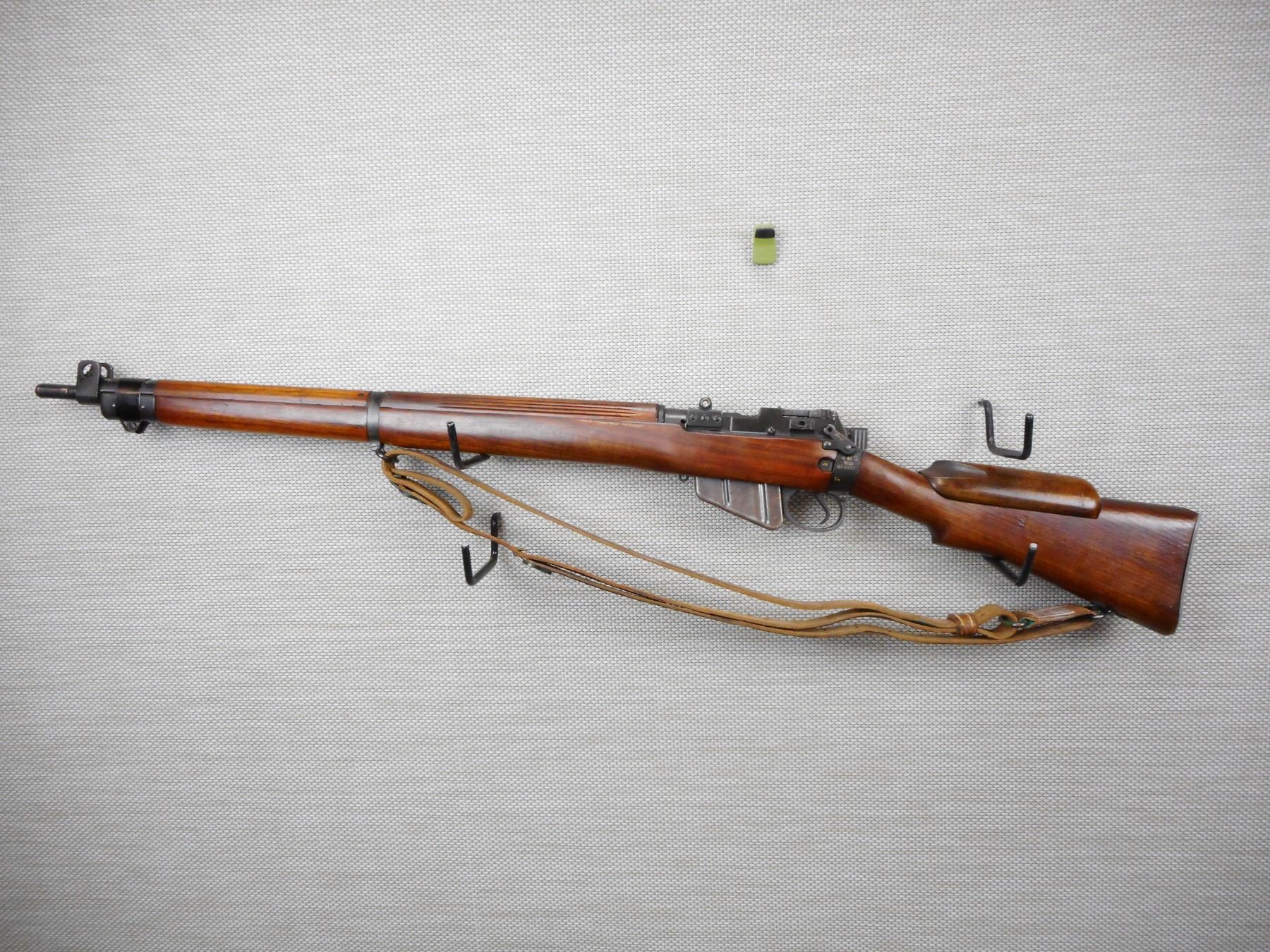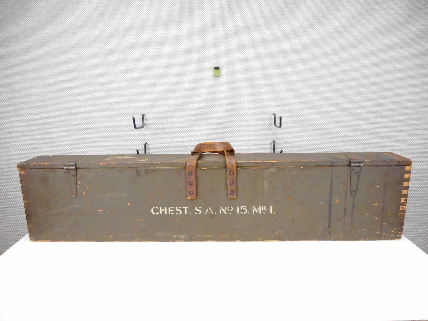 RARE, WWII ERA, LEE ENFIELD , MODEL: NO 4 MKI T SNIPER , CALIBER: 303 BR , COMES WITH WOODEN TRANSIT CHEST, AND SAVAGE MARK MAGAZINE, MATCHING BOLT AND RECEIVER BY SERIAL #, DATED 1944 WWII ERA, STOCK NUMBERED TO RIFLE, BSA SHIRLEY IS THE MANUFACTURER, HAS A NO 32 MK3 SCOPE WITH LEATHER COVER, VERY GOOD BORE, RECEIVER HAS T4 STAMP, STEEL BUTT PLATE, BARLEY CORN FRONT AND PEEP APERTURE REAR SIGHT, SHOWS VERY LITTLE HANDLING MARKS , SERIAL # H38837 , ACTION: BOLT ACTION RIFLE , BARREL LENGTH: 26" , CONDITION: 8/10 , STOCK # 8820 , CLASS: CANADIAN NON RESTRICTED CLASS
