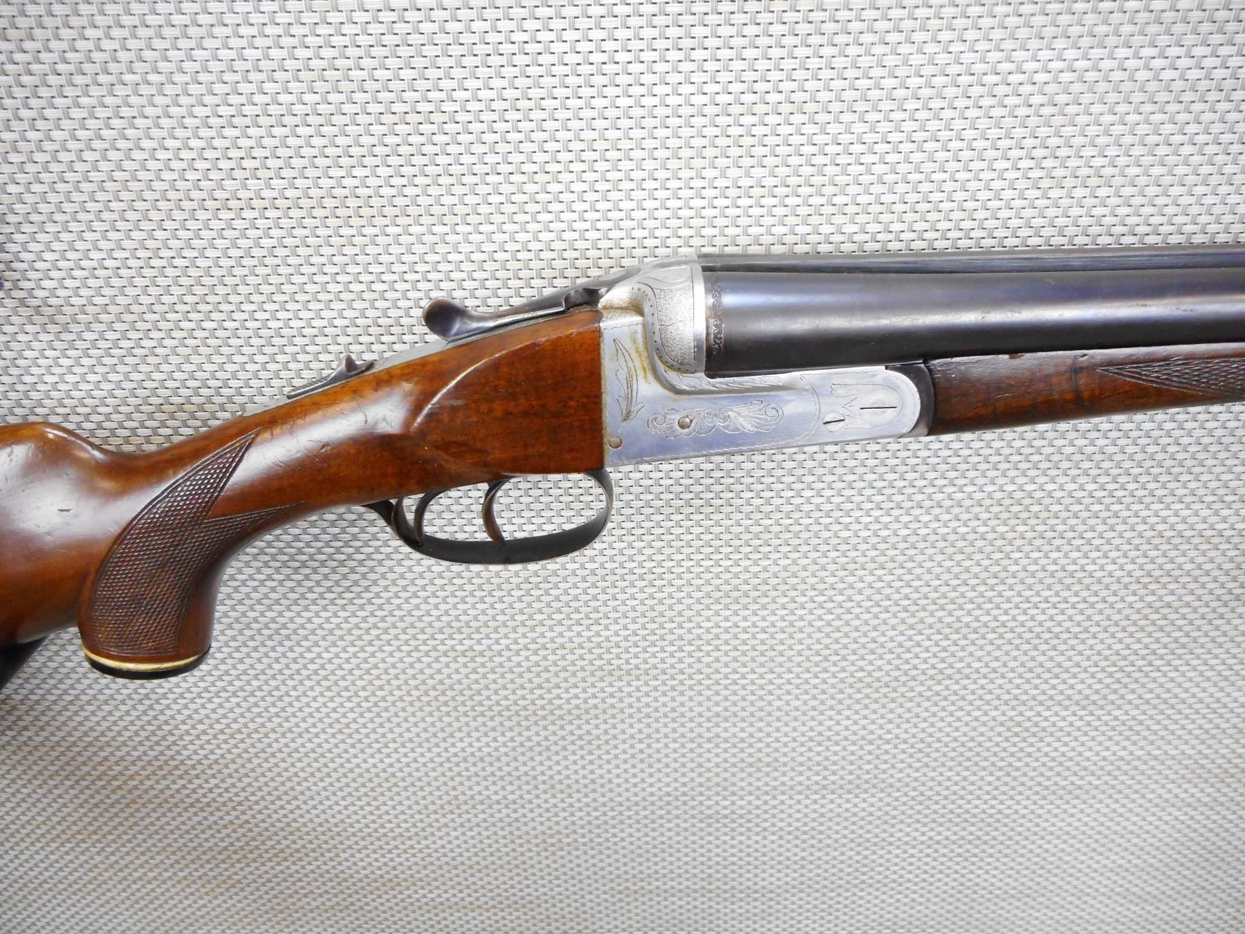 EDUART KETTNER , MODEL: SIDE BY SIDE , CALIBER: 16GA X 2 3/4" , FIXED FULL AND MODIFIED CHOKES, BORES ARE VERY GOOD, DOUBLE TRIGGER, MADE IN SPAIN, CHECKERED FOREND AND CAPPED PISTOL GRIP BUTT STOCK WITH RAISED CHEEK PIECE, THE RUBBER RECOIL PAD IS WELL WORN, SLING SWIVEL LOOPS, SHOWS SOME HANDLING MARKS, ACTION IS TIGHT , SERIAL # 39934 , ACTION: SIDE BY SIDE BREAK ACTION , BARREL LENGTH: 28" , CONDITION: 6/10 , STOCK # 8837 , CLASS: CANADIAN NON RESTRICTED CLASS