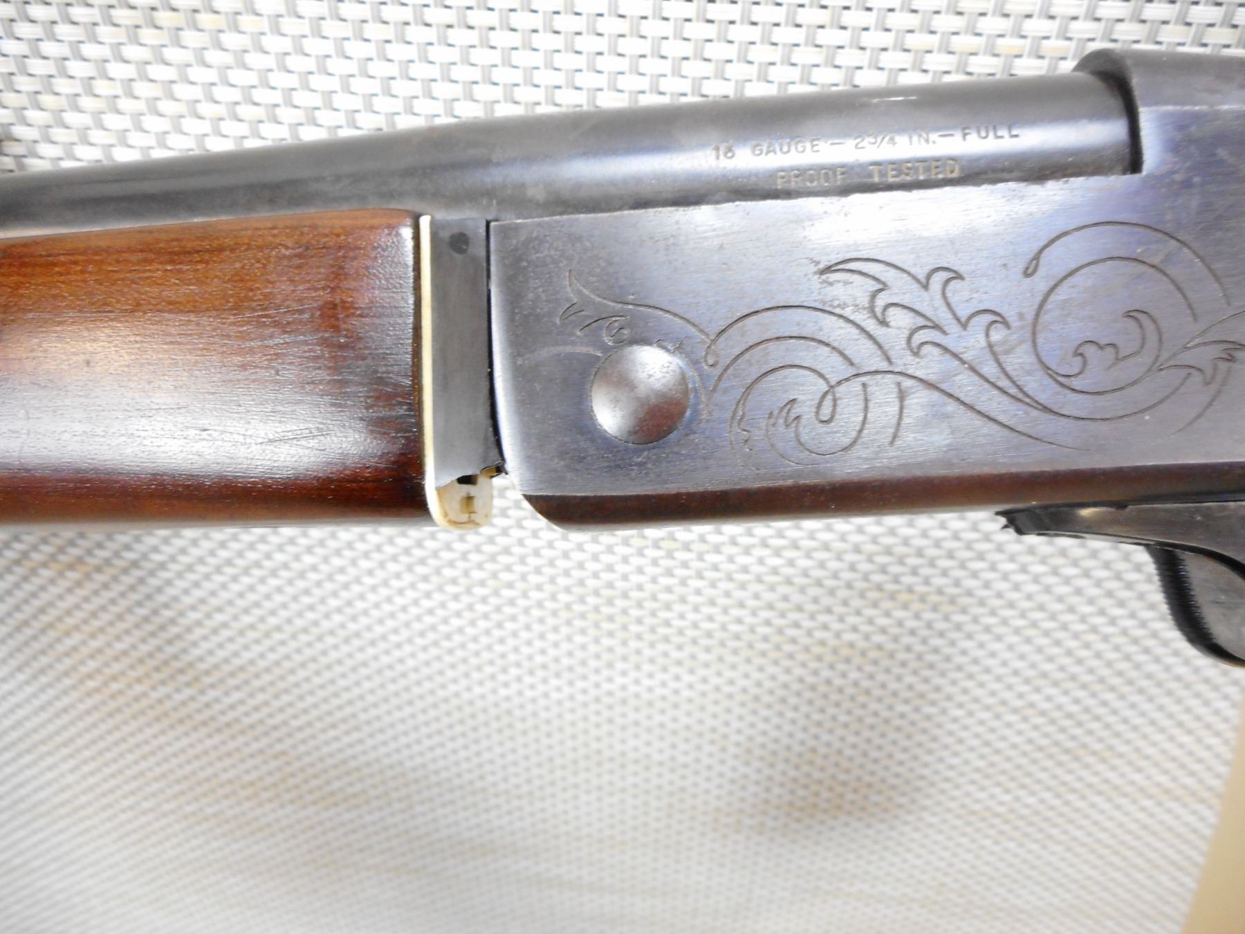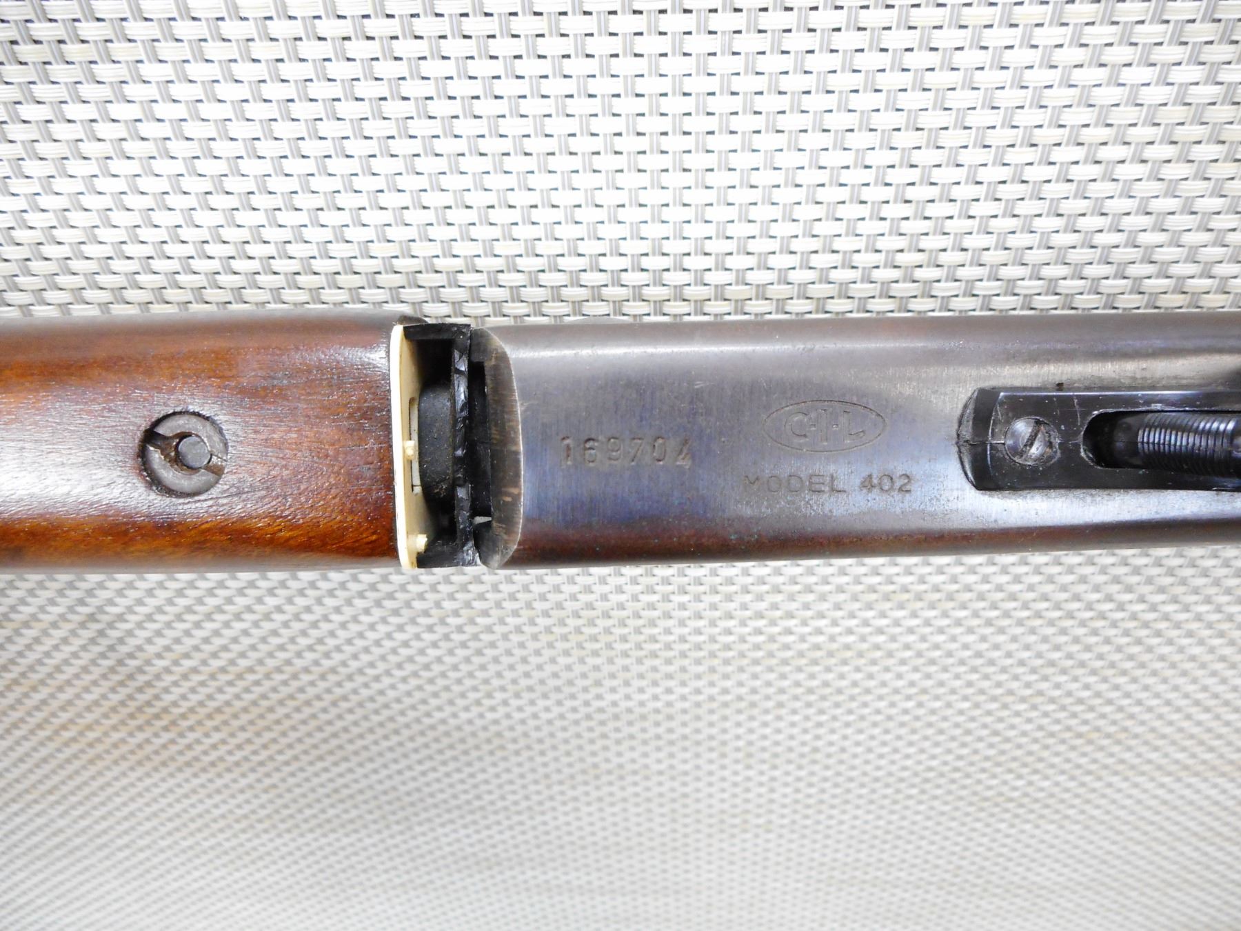 CIL , MODEL: 402 , CALIBER: 16GA X 2 3/4" , BORE IS GOOD, FIXED FULL CHOKE, BEAD FRONT SIGHT, CRACKED PLASTIC FOREND SPACER BETWEEN FOREND AND ACTION, SLING LOOP MISSING THE REAR, SHOWS SOME HANDLING MARKS , SERIAL # 169704 , ACTION: SINGLE SHOT , BARREL LENGTH: 28" , CONDITION: 4/10 , STOCK # 8840 , CLASS: CANADIAN NON RESTRICTED CLASS
