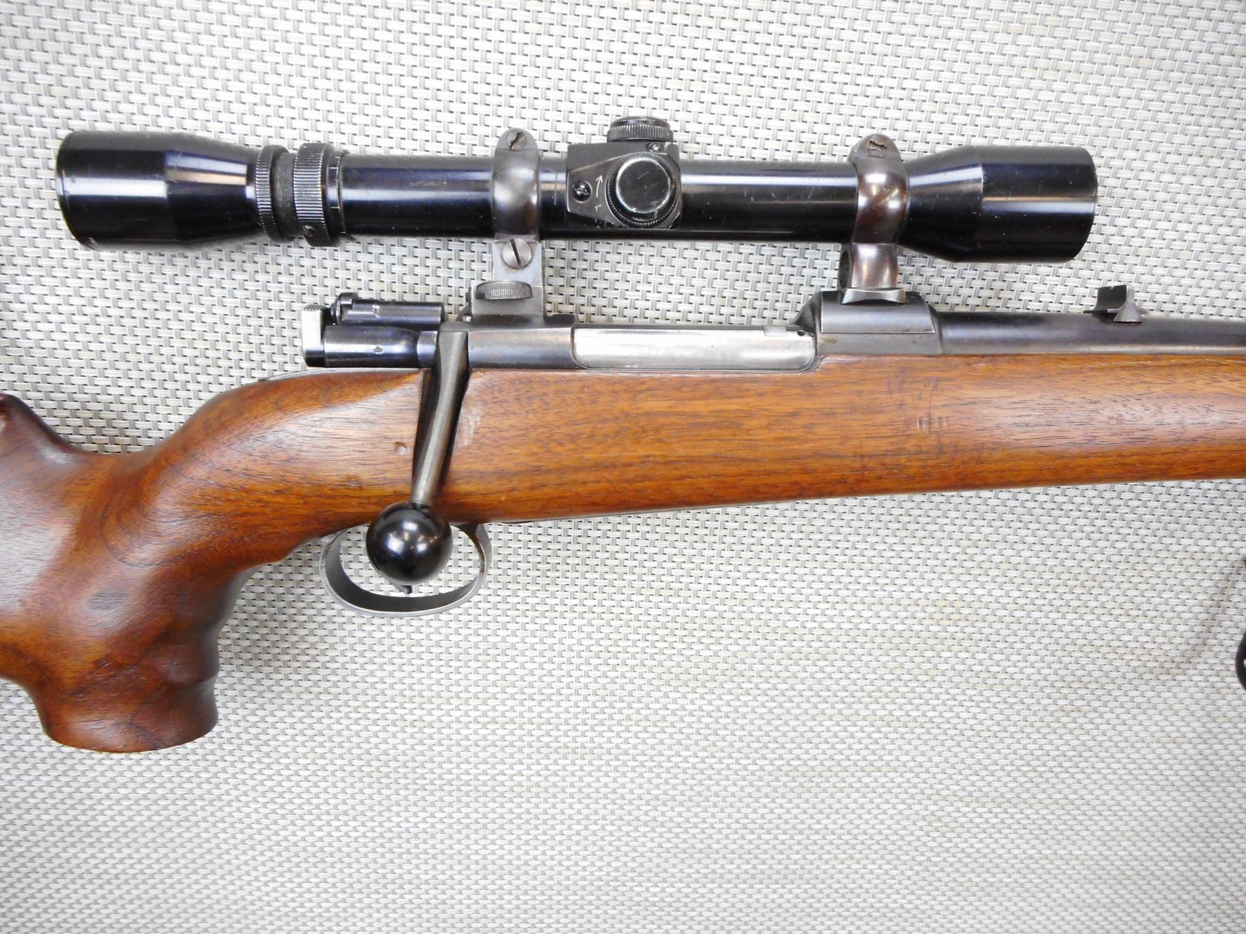 MAUSER , MODEL: FALUN , CALIBER: 30-06 MARKED ON BARREL , BOLT AND RECEIVER MATCH BY SERIAL #, 3 X 7 ATLAS SCOPE WITH A CLAW SCOPE MOUNT, VERY GOOD BORE, RAMP FRONT AND FIXED REAR SIGHT, ONE PIECE HARDWOOD STOCK WITH FULL PISTOL GRIP AND RAISED CHEEK PIECE, VENTED RUBBER RECOIL PAD, SLING SWIVEL LOOPS, BASED ON A SWEDISH MAUSER ACTION , SERIAL # 31509 , ACTION: BOLT ACTION RIFLE , BARREL LENGTH: 24" , CONDITION: 7/10 , STOCK # 8843 , CLASS: CANADIAN NON RESTRICTED CLASS