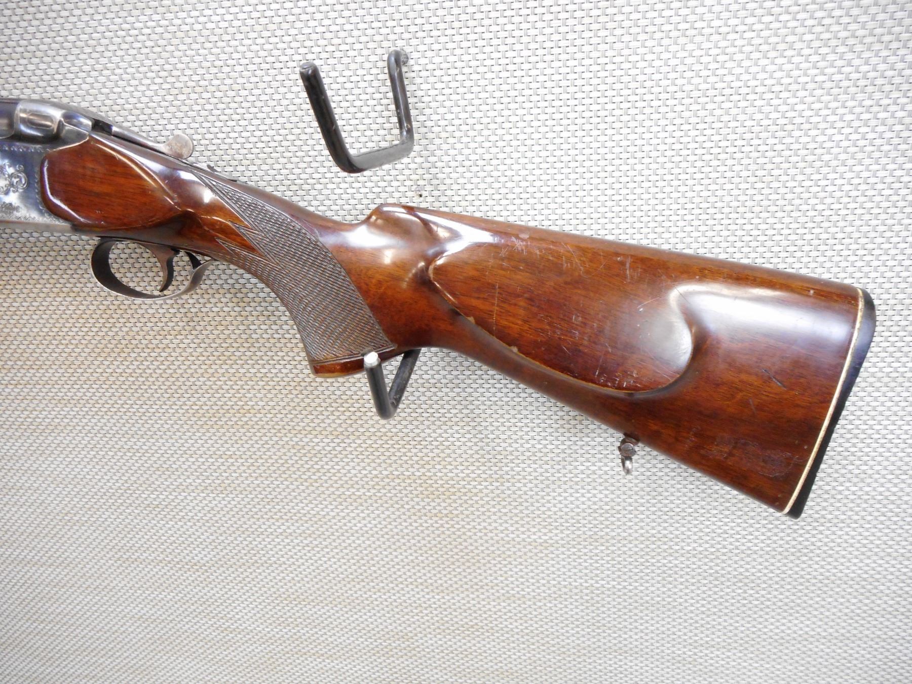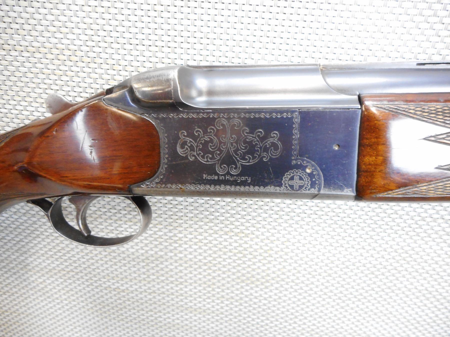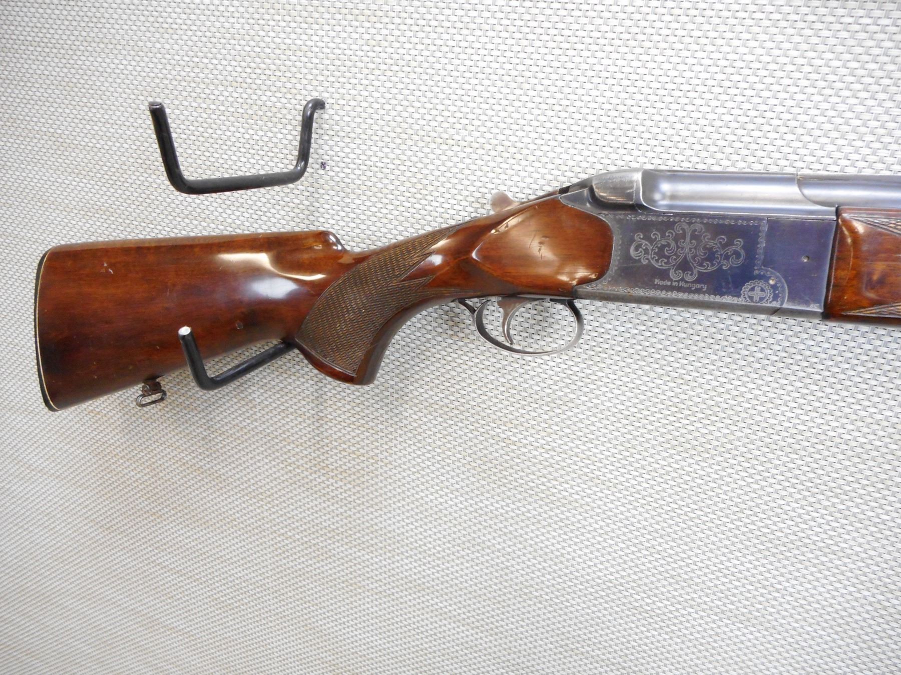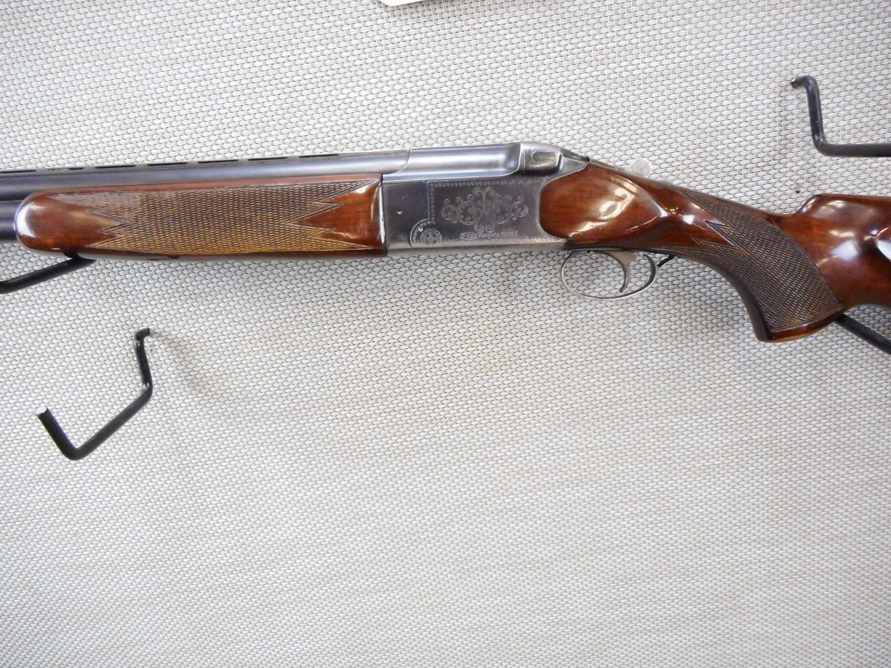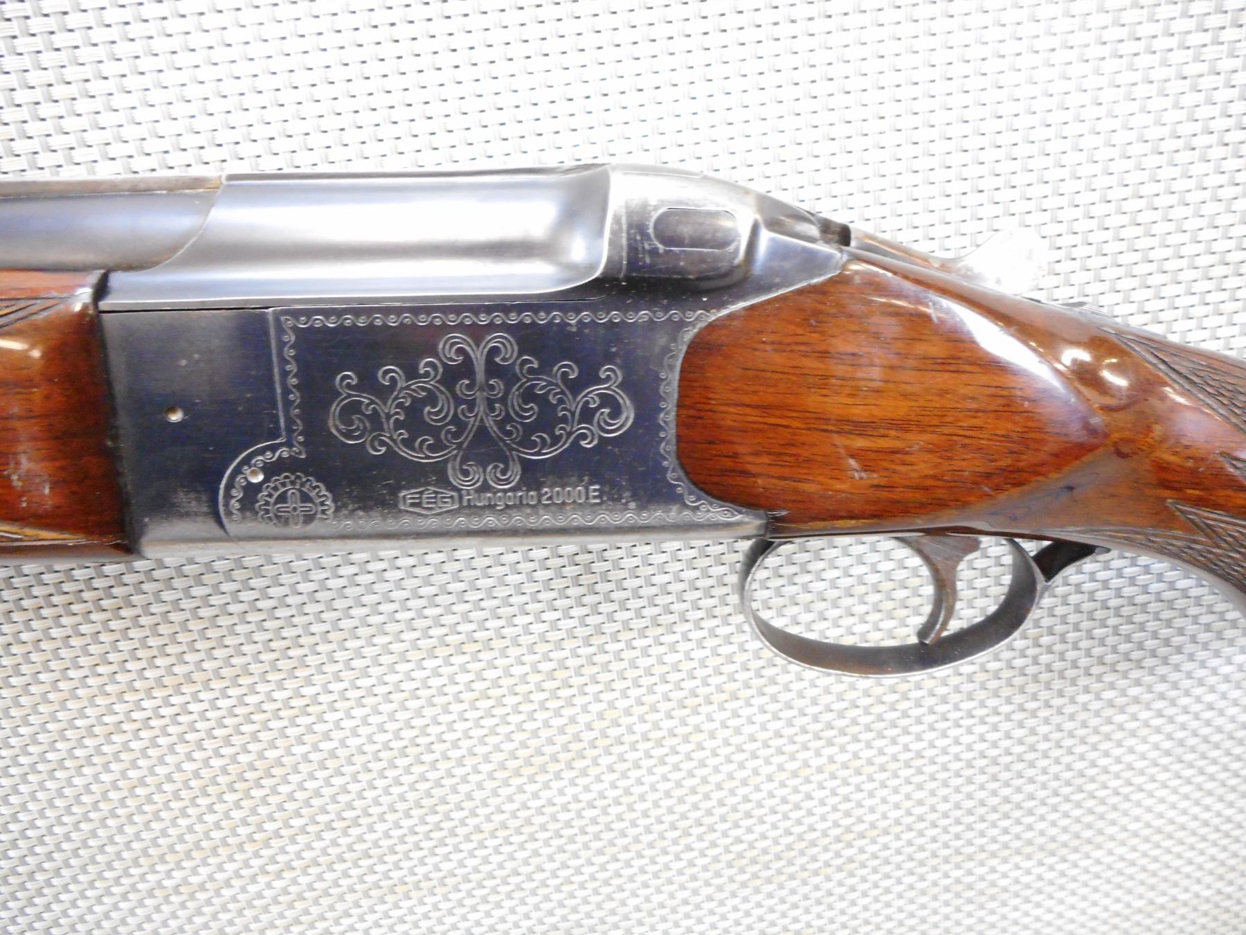 FEG , MODEL: 2000E , CALIBER: 12GA X 2 3/4" , FIXED FULL AND MODIFIED CHOKES, VERY GOOD BORES, HAS EJECTORS, FEATURES THE KIRSTEN LOCK UP SYSTEM, BEAD FRONT AND MID BEAD SIGHTS, VENTED RIB BARREL, ENGRAVED RECEIVER, CHECKERED FOREND AND SEMI PISTOL GRIP BUTT STOCK WITH RAISED CHEEK PIECE, PLASTIC BUTT PLATE, SLING SWIVEL LOOPS, SINGLE TRIGGER , SERIAL # C2771 , ACTION: OVER UNDER SHOTGUN , BARREL LENGTH: 28" , CONDITION: 7/10 , STOCK # 8854 , CLASS: CANADIAN NON RESTRICTED CLASS