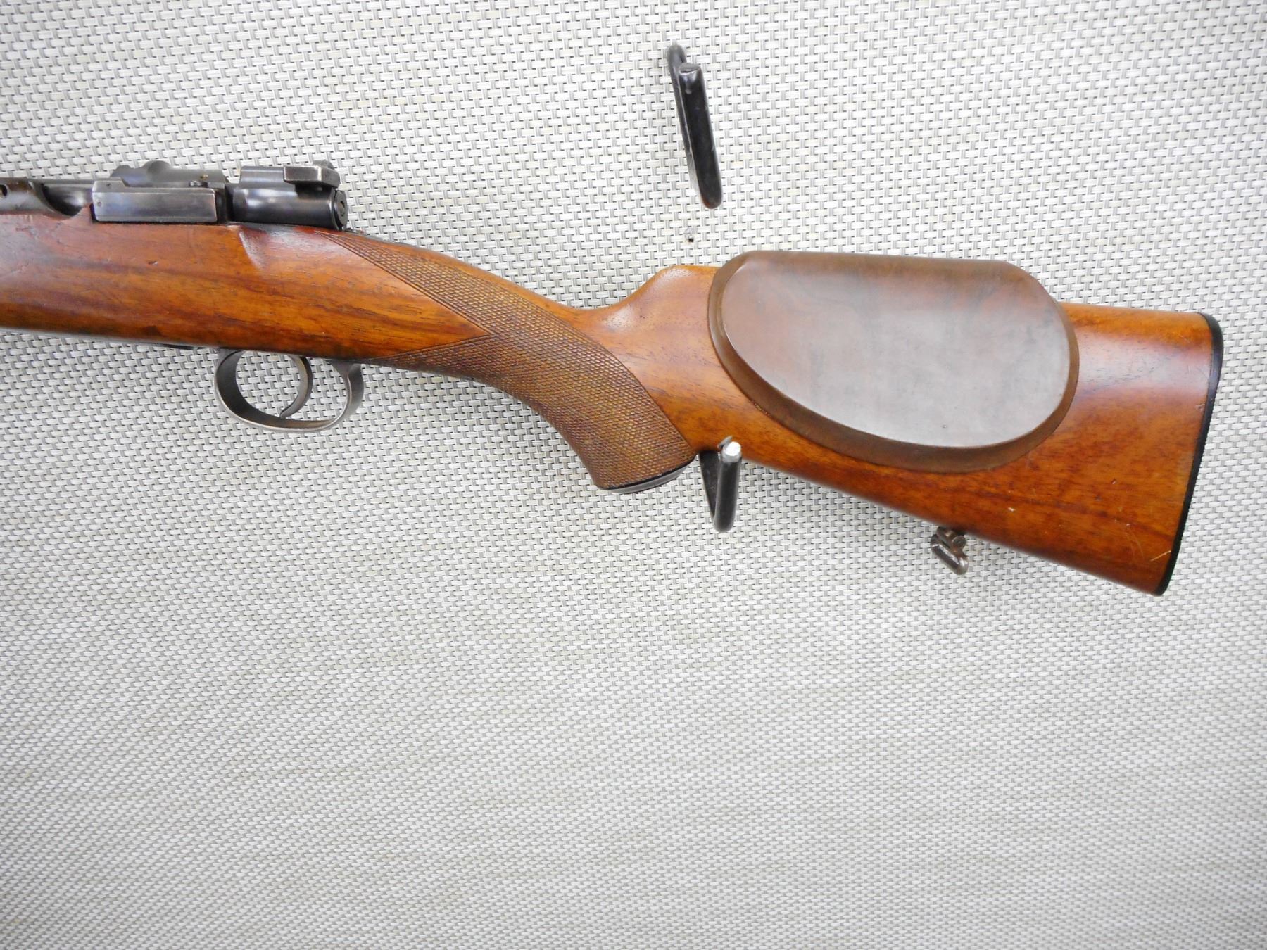 WWII ERA, MAUSER , MODEL: M96 SPORTER , CALIBER: 6.5 X 55 SWEDISH MAUSER , WWII ERA DATED 1942, HUSQVARNA, HOODED FRONT AND FIXED REAR SIGHTS, RECEIVER IS DRILLED FOR SCOPE MOUNTS, CHECKERED CAPPED PISTOL GRIP STOCK WITH APPLIED RAISED CHEEK PIECE, PLASTIC BUTT PLATE, SLING SWIVEL LOOPS , SERIAL # 72047 , ACTION: BOLT ACTION RIFLE , BARREL LENGTH: 24" , CONDITION: 4/10 , STOCK # 8865 , CLASS: CANADIAN NON RESTRICTED CLASS