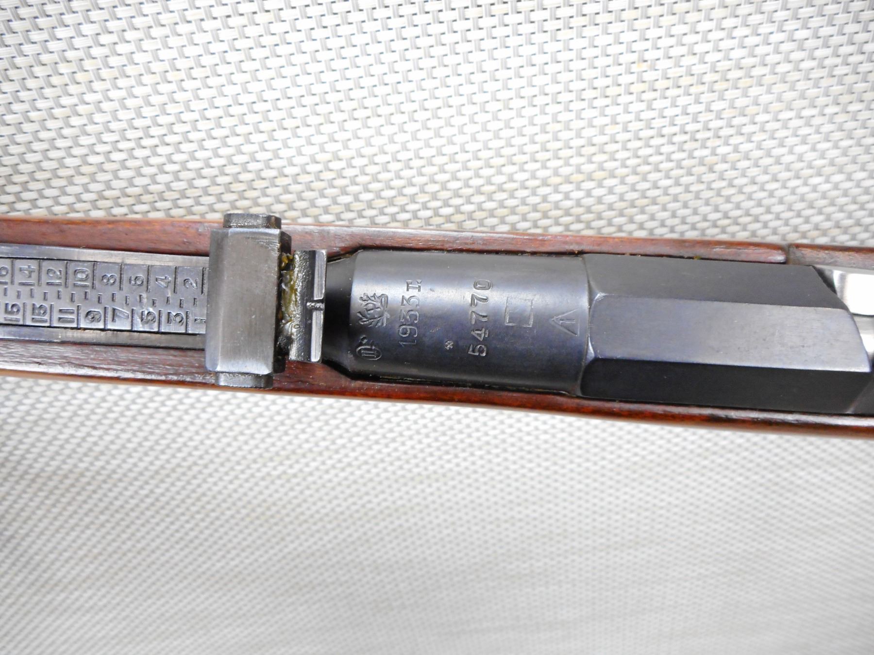 MOSIN NAGANT , MODEL: 1891/30 , CALIBER: 7.62 X 54R , BOLT AND RECEIVER MISMATCHED BY SERIAL #, IZHEVSK ARSENAL, DATED 1933, BORE IS VERY GOOD, HOODED FRONT AND ADJUSTABLE REAR SIGHT, RETAINS FULL MILITARY CONFIGURATION, SHOWS SOME HANDLING MARKS, STEEL BUTT PLATE , SERIAL # 54770 , ACTION: BOLT ACTION RIFLE , BARREL LENGTH: 29" , CONDITION: 7/10 , STOCK # 8877 , CLASS: CANADIAN NON RESTRICTED CLASS