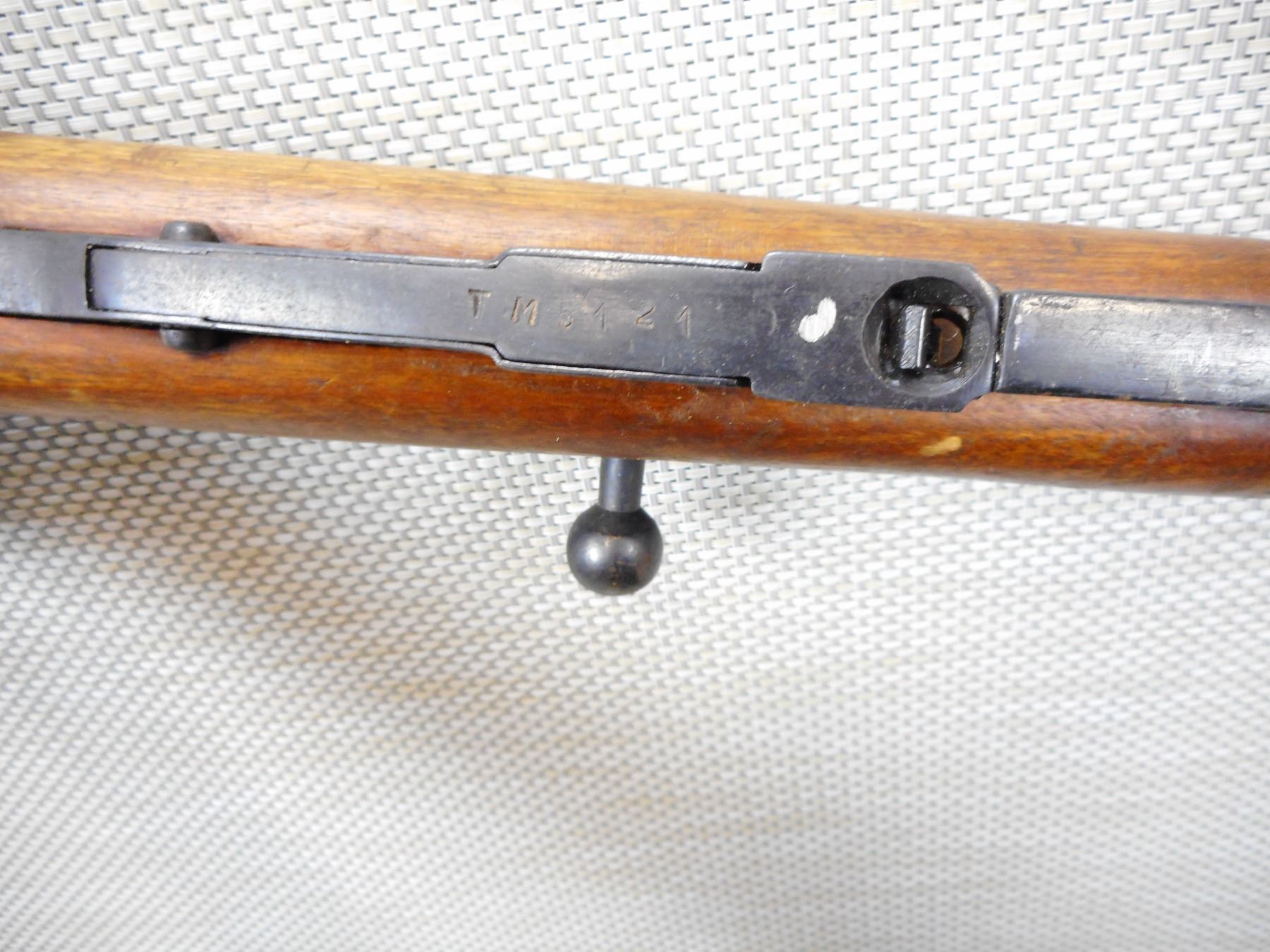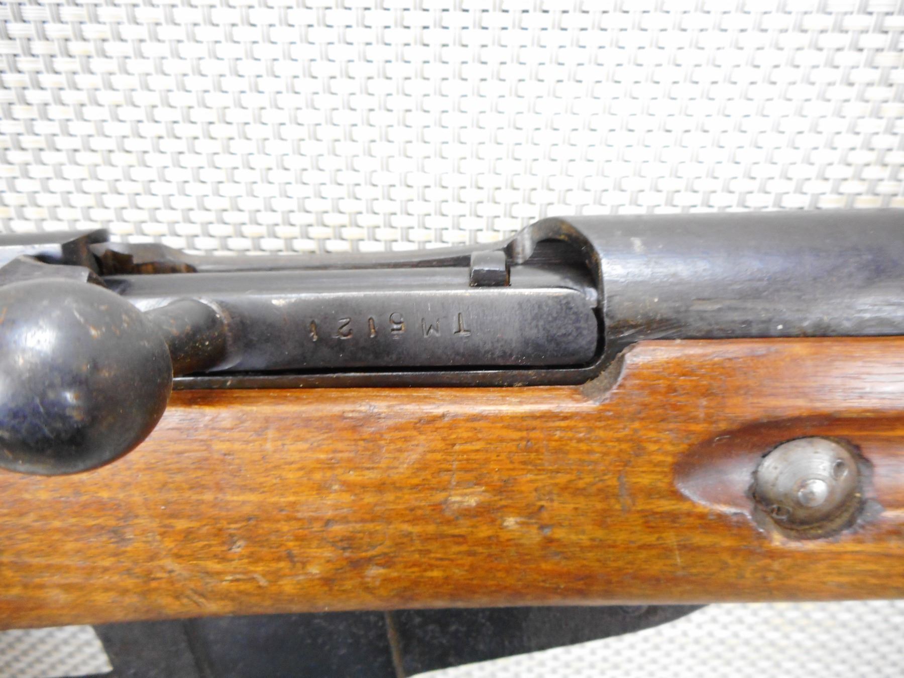 WWII ERA, MOSIN NAGANT , MODEL: 1891/30 , CALIBER: 7.62 X 54R , BOLT AND RECEIVER MISMATCHED BY SERIAL #, WWII ERA, IZHEVSK ARSENAL, DATED 1943, BORE IS DARK, AND BOLT APPEARS TO HAVE BEEN REBLUED, HOODED FRONT AND ADJUSTABLE REAR SIGHT, RETAINS FULL MILITARY CONFIGURATION, SHOWS SOME HANDLING MARKS, STEEL BUTT PLATE , SERIAL # 5121 , ACTION: BOLT ACTION RIFLE , BARREL LENGTH: 29" , CONDITION: 6/10 , STOCK # 8880 , CLASS: CANADIAN NON RESTRICTED CLASS