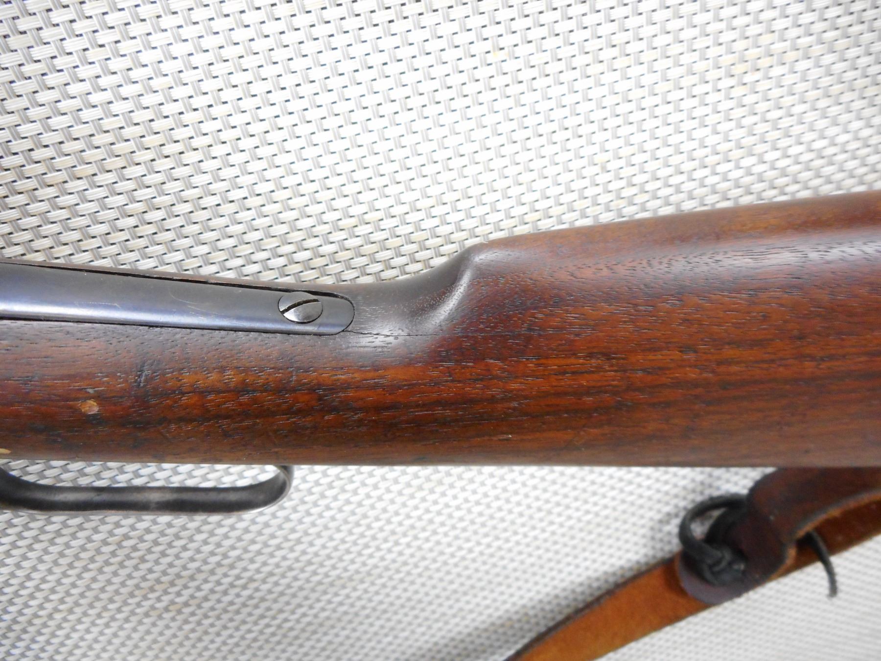 WWII ERA, WINCHESTER , MODEL: 94 , CALIBER: 30 WCF , MANUFACTURED IN 1943-1947, WWII ERA, BORE IS GOOD, HOODED FRONT SIGHT, ADJUSTABLE REAR SIGHT, STOCK HAS BEEN REPAIRED AT THE WRIST, SHOWS SOME HANDLING MARKS AND MINOR DENTS, SLING SWIVELS WITH LEATHER SLING, STEEL BUTT PLATE , SERIAL # 1388785 , ACTION: LEVER ACTION RIFLE , BARREL LENGTH: 20" , CONDITION: 6/10 , STOCK # 8885 , CLASS: CANADIAN NON RESTRICTED CLASS