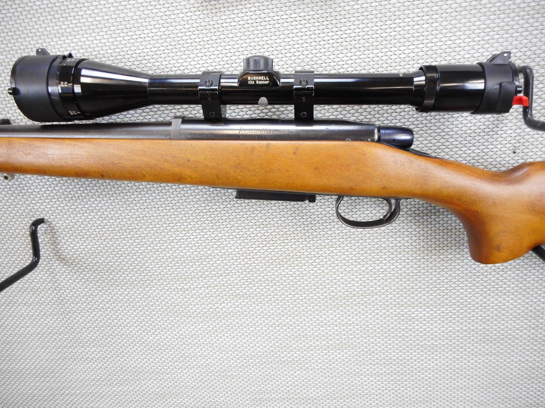 REMINGTON , MODEL: 788 , CALIBER: 222 REM , COMES WITH MAGAINE, BORE IS EXCELLENT, NO SIGHTS, FEATURES A BUSHNELL 10X SCOPE, ONE PIECE HARDWOOD STOCK WITH RAISED CHEEK PIECE, SLING SWIVEL STUDS, PLASTIC BUTT PLATE, SHOWS SOME HANDLING MARKS , SERIAL # 6108448 , ACTION: BOLT ACTION RIFLE , BARREL LENGTH: 24" , CONDITION: 7/10 , STOCK # 8913 , CLASS: CANADIAN NON RESTRICTED CLASS