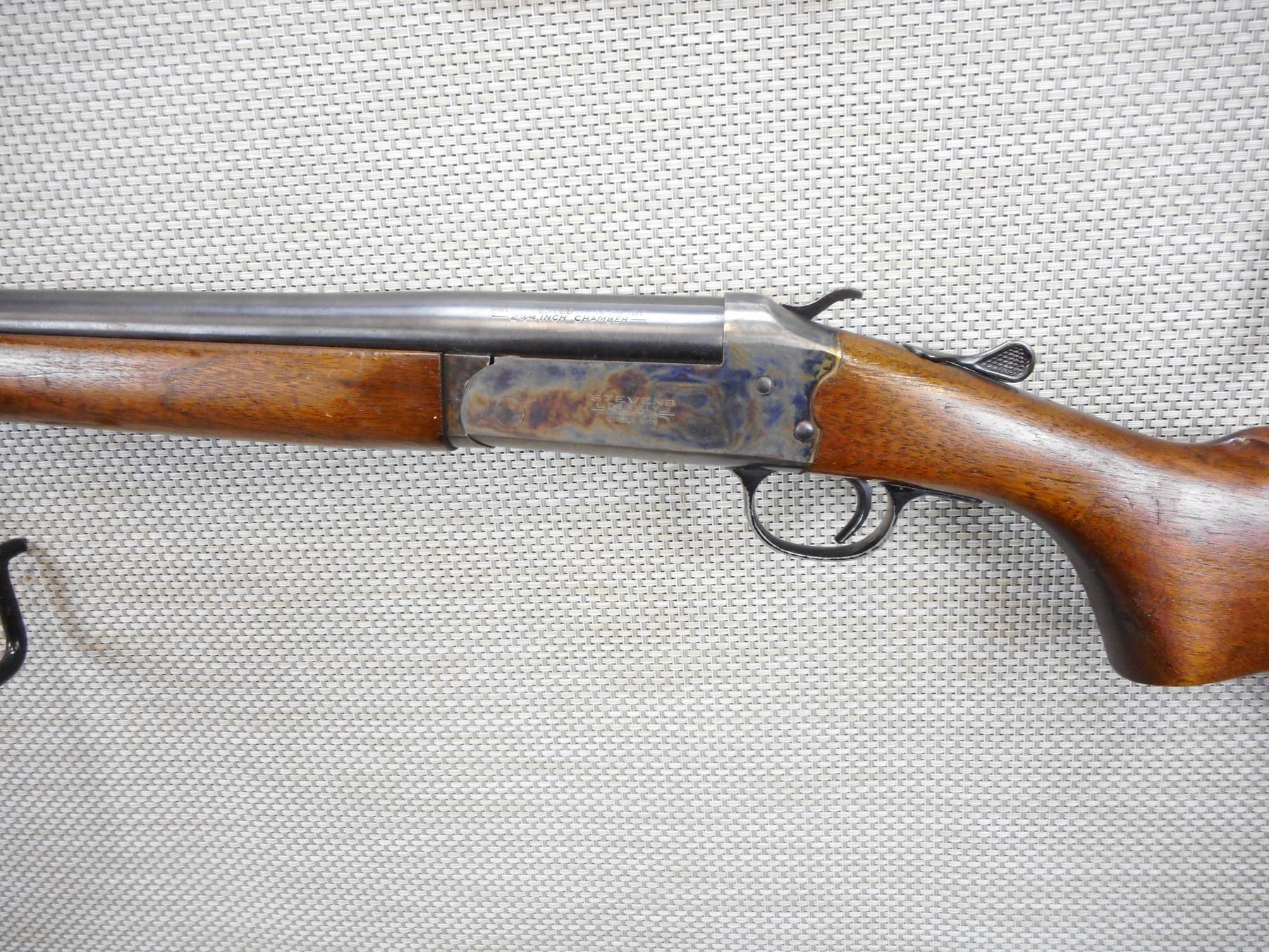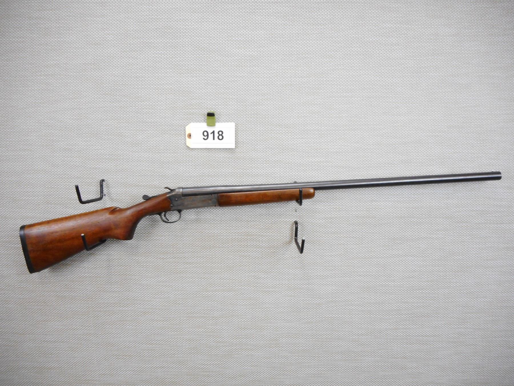 STEVENS , MODEL: 107B , CALIBER: 12GA X 2 3/4" , FIXED FULL CHOKE, BORE IS VERY GOOD, BEAD FRONT SIGHT, TWO PIECE HARDWOOD STOCK WITH RUBBER RECOIL PAD, SHOWS VERY LITTLE HANDLING MARKS, RETAINS MUCH OF THE CASE HARDENING ON THE RECEIVER , SERIAL # N/A , ACTION: SINGLE SHOT BREAK ACTION SHOTGUN , BARREL LENGTH: 30" , CONDITION: 8/10 , STOCK # 8923 , CLASS: CANADIAN NON RESTRICTED CLASS