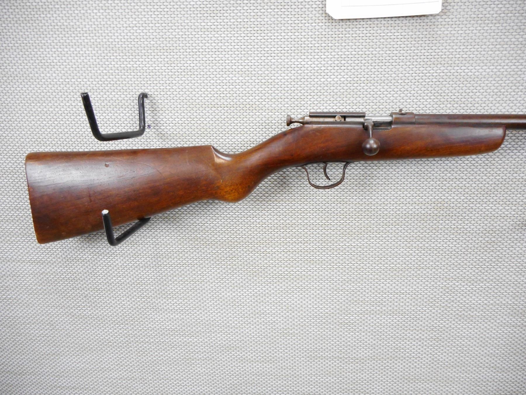 COOEY , MODEL: ACE 1 , CALIBER: 22 LR , BORE IS VERY GOOD, BLADE FRONT AND FIXED REAR SIGHTS, ONE PIECE WOOD STOCK, SHOWS SOME HANDLING MARKS , SERIAL # N/A , ACTION: SINGLE SHOT BOLT ACTION RIFLE , BARREL LENGTH: 16 3/4" , CONDITION: 6/10 , STOCK # 8941 , CLASS: CANADIAN NON RESTRICTED CLASS