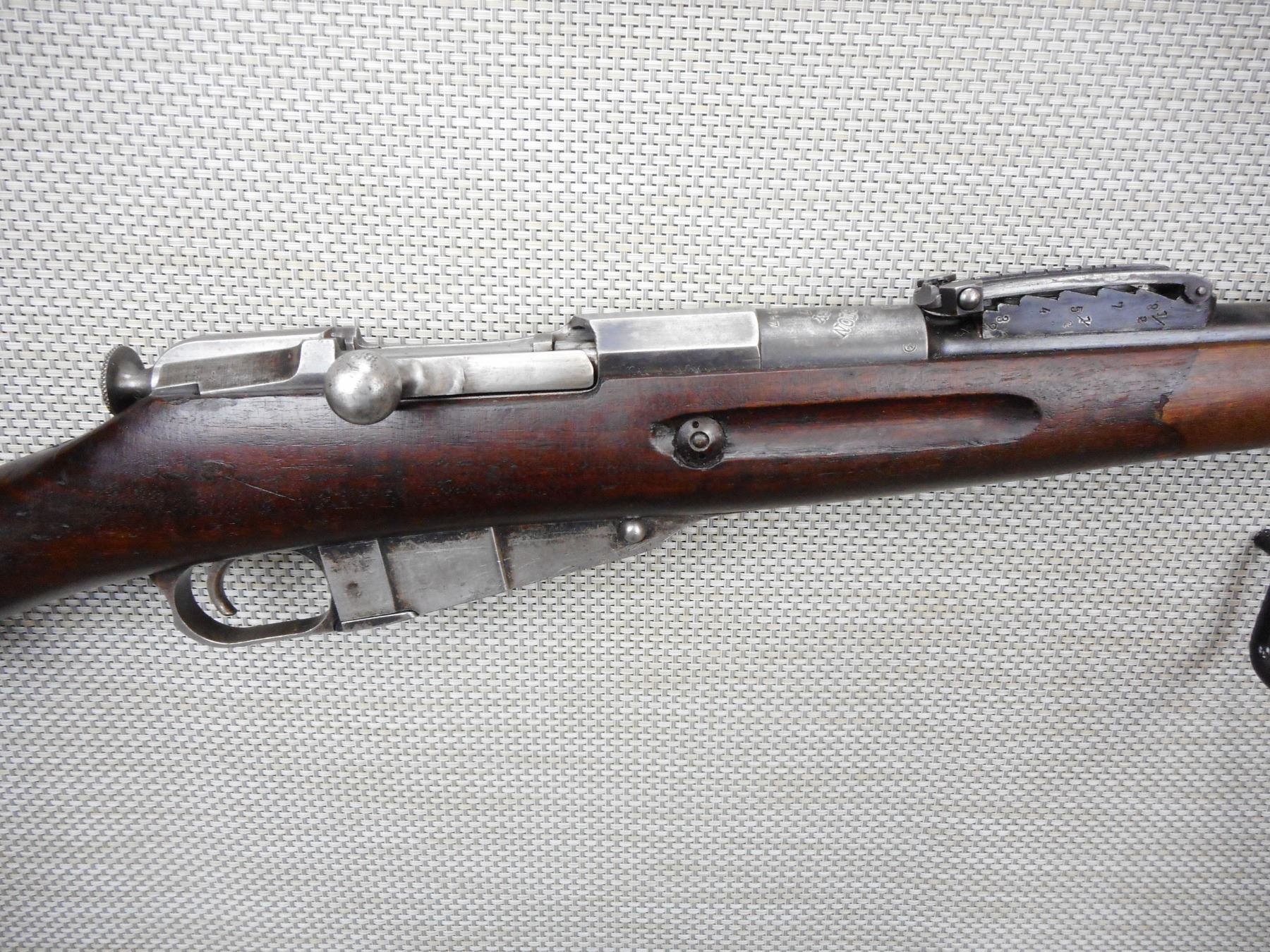 MOSIN NAGANT , MODEL: 1891 , CALIBER: 7.62 X 54R , WWI ERA DATED 1917, HAS FINNISH ARSENAL MARKINGS, GOOD BORE, BLADE FRONT AND FULLY ADJUSTABLE REAR SIGHT, RETAINS FULL MIILITARY CONFIGURATION, BOLT AND RECEIVER MATCH BY SERIAL #, SLING SWIVEL LOOPS, STEEL BUTT PLATE, SHOWS SOME HANDLING MARKS , SERIAL # 78797 , ACTION: BOLT ACTION RIFLE , BARREL LENGTH: 32" , CONDITION: 7/10 , STOCK # 8970 , CLASS: CANADIAN NON RESTRICTED CLASS