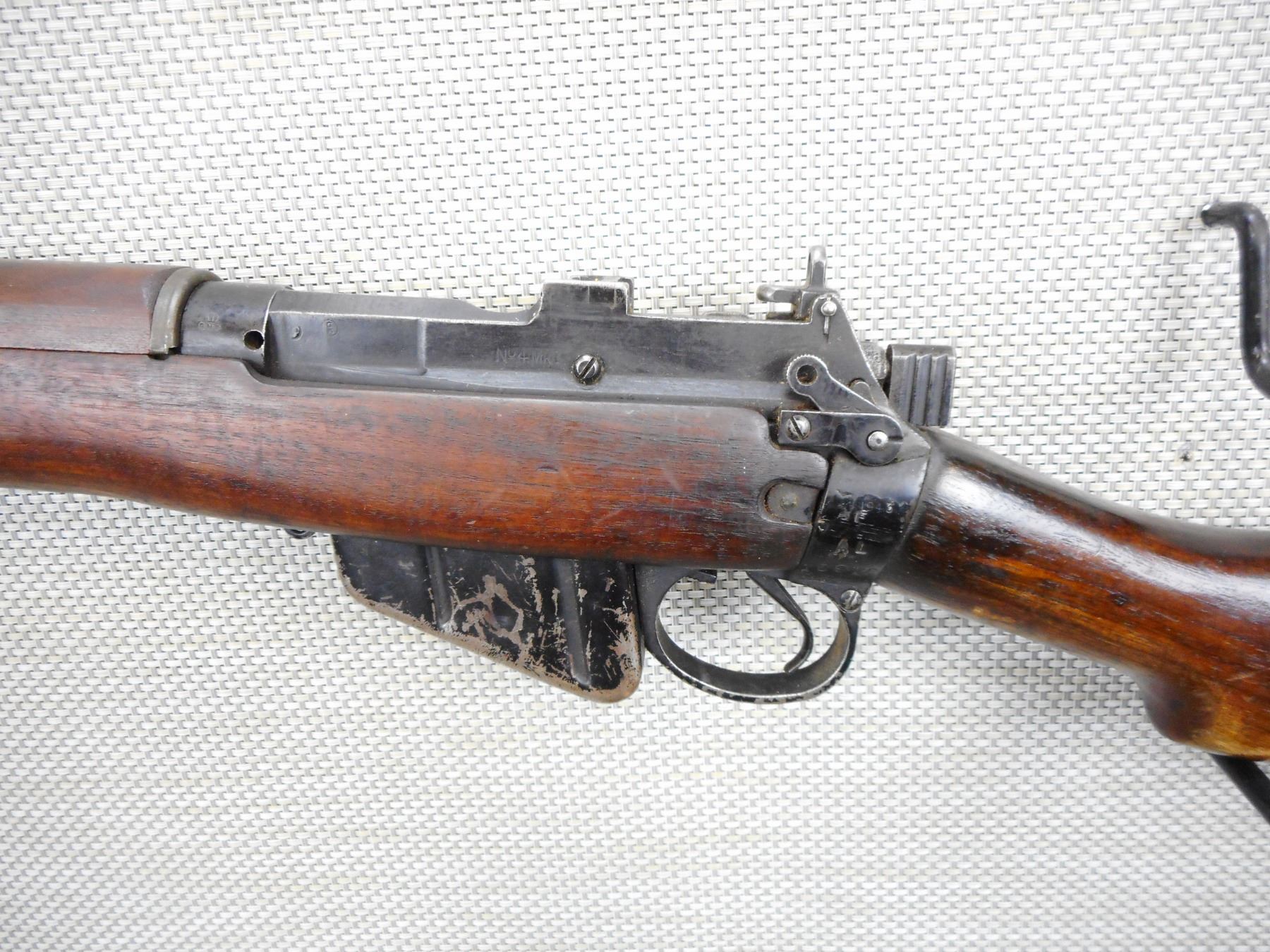 WWII ERA, LEE ENFIELD , MODEL: NO 4 MKI , CALIBER: 303 BR , COMES WITH MAGAZINE, DATED 1943 WWII ERA, GOOD BORE, BOLT AND RECEIVER DON'T MATCH BY SERIAL #, BARLEY CORN FRONT AND PEEP APERTURE REAR SIGHT, RETAINS FULL MILITARY CONFIGURATION, SHOWS SOME HANDLING MARKS, BRASS BUTT PLATE, SLING SWIVELS , SERIAL # AL16978 , ACTION: BOLT ACTION RIFLE , BARREL LENGTH: 25" , CONDITION: 7/10 , STOCK # 9012 , CLASS: CANADIAN NON RESTRICTED CLASS