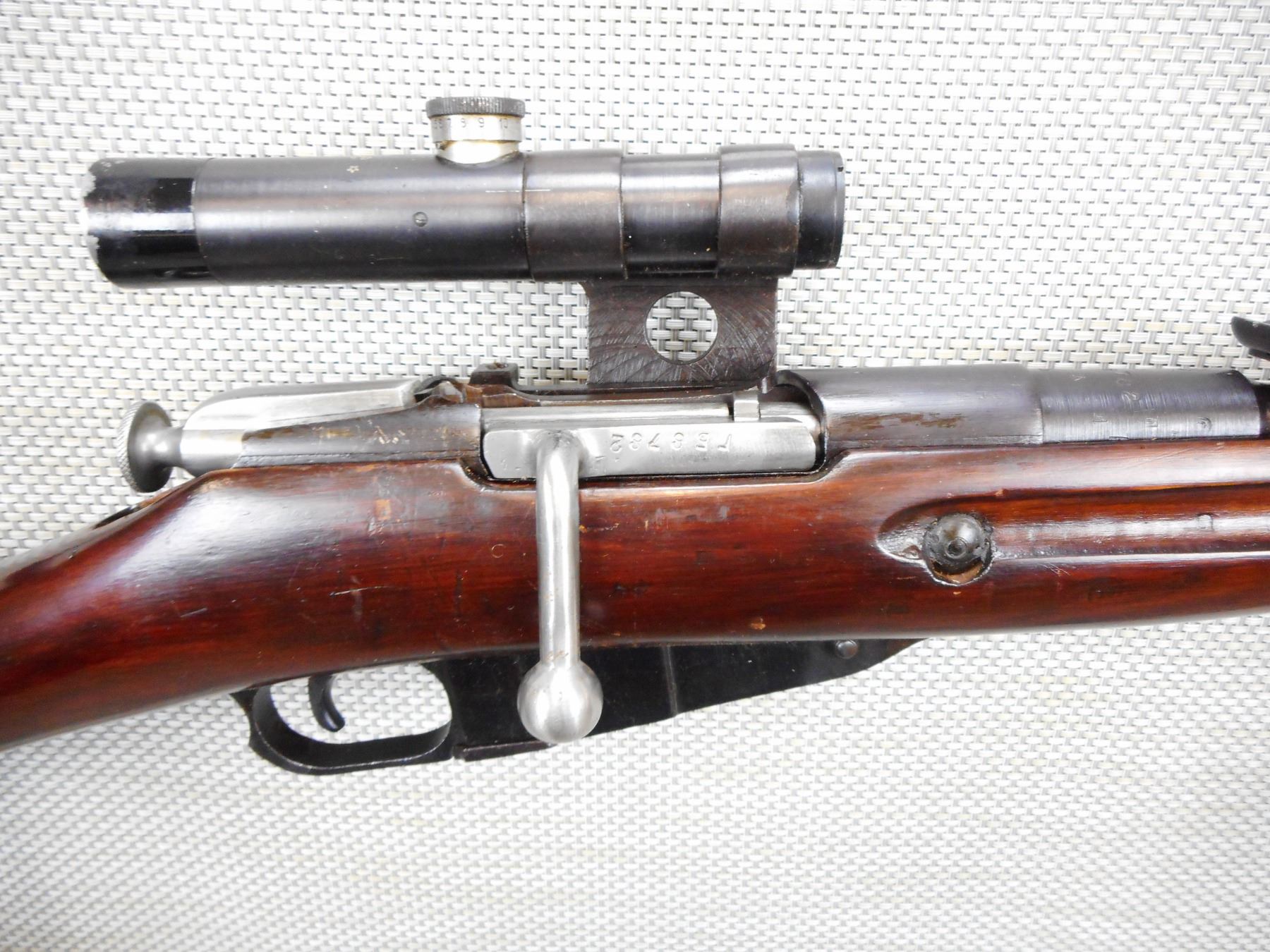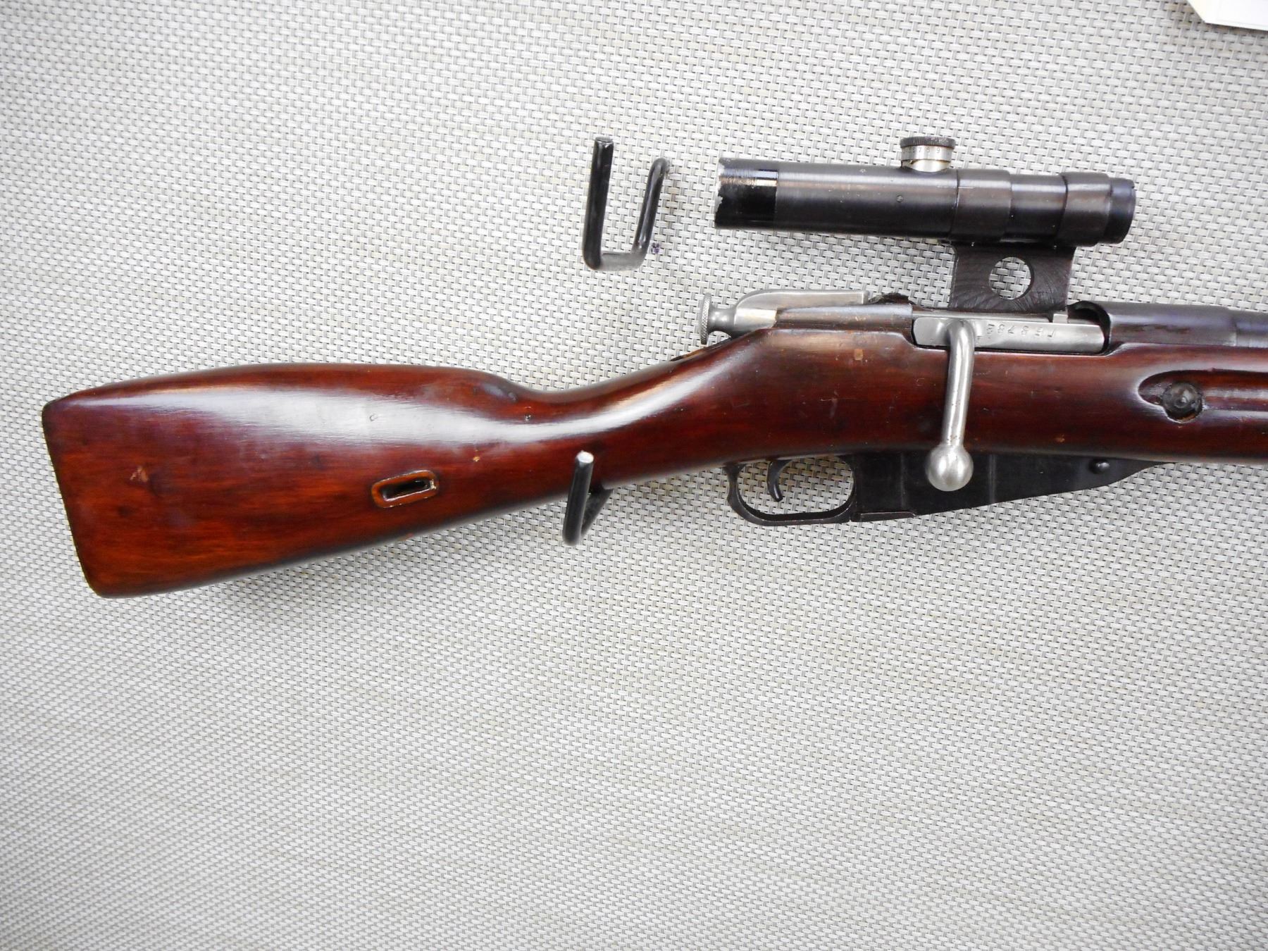 WWII ERA, MOSIN NAGANT , MODEL: 91/30 SNIPER , CALIBER: 7.62 X 54R , WWII ERA DATED 1943, TULA ARSENAL, BOLT AND RECEIVER MATCH BY SERIAL #, BORE IS VERY GOOD, HOODED FRONT AND ADJUSTABLE REAR SIGHT, ORIGINAL RUSSIAN SCOPE MOUNT WITH PU SCOPE, RETAINS FULL MILITARY CONFIGURATION, SLING SWIVEL LOOPS, SHOWS SOME HANDLING MARKS, STEEL BUTT PLATE WITH LIGHT SURFACE RUST, TURN DOWN BOLT HANDLE , SERIAL # R68783 , ACTION: BOLT ACTION RIFLE , BARREL LENGTH: 30" , CONDITION: 7/10 , STOCK # 9026 , CLASS: CANADIAN NON RESTRICTED CLASS