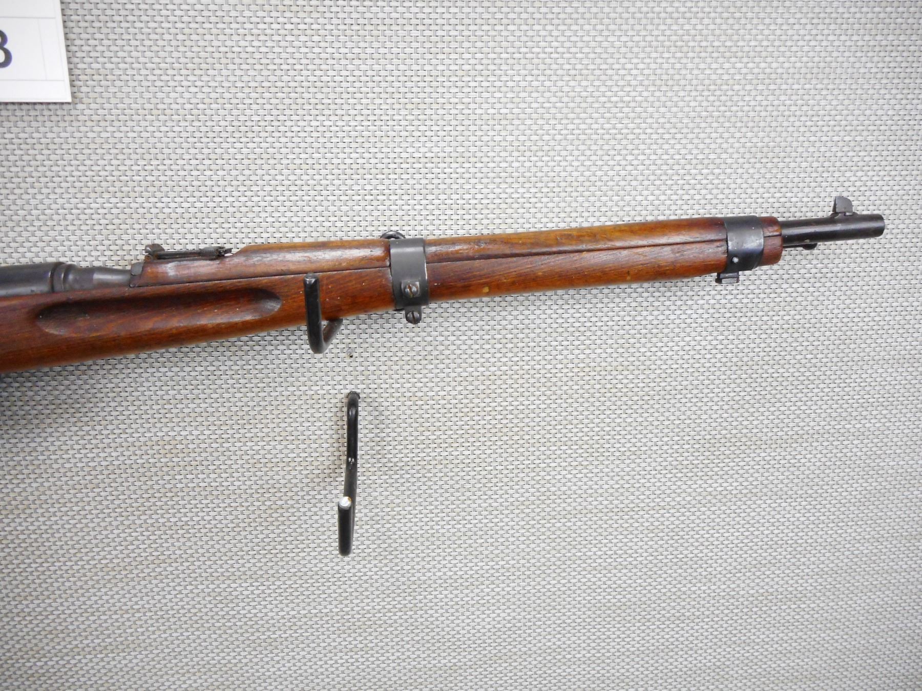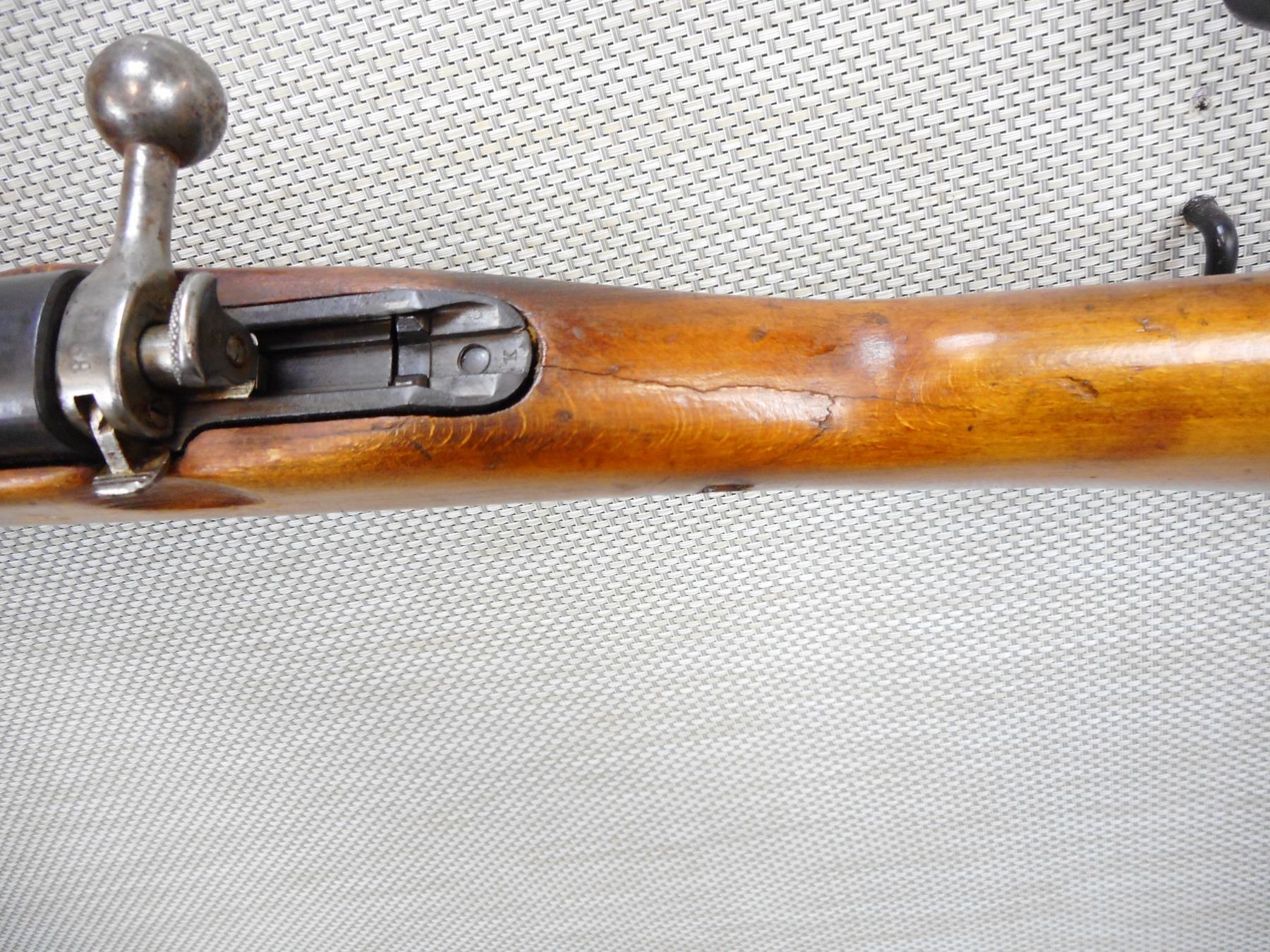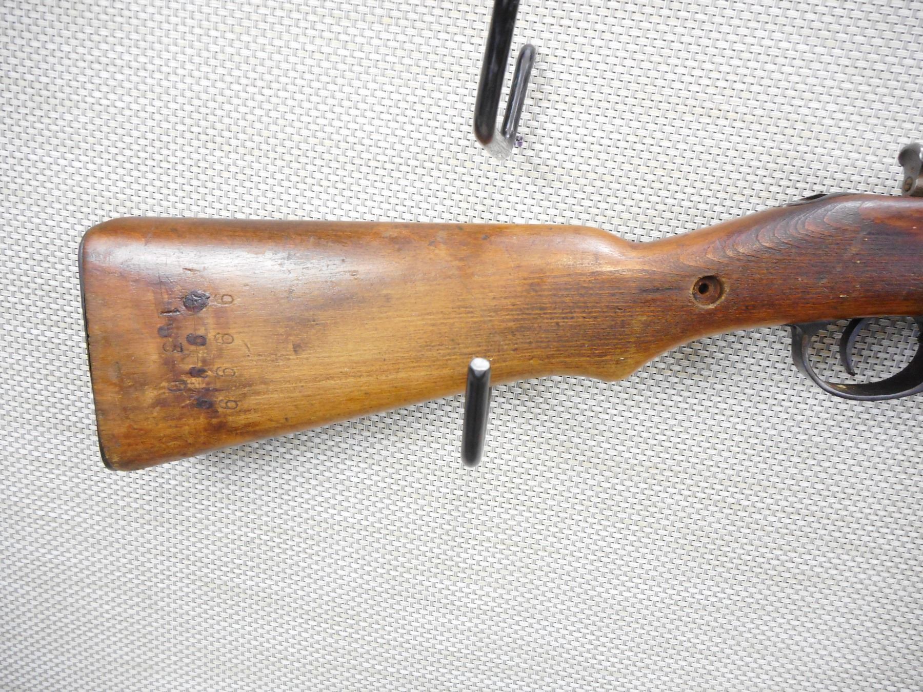 STEYR , MODEL: M95 CARBINE , CALIBER: 8 X 56R , BORE IS GOOD, RETAINS FULL MILITARY CONFIGURATION, STOCK HAS BEEN REPARIED AT THE WRIST, MISSING THE REAR SLING SWIVEL LOOP, BLADE FRONT AND ADJUSTABLE REAR SIGHTS, STEEL BUTT PLATE , SERIAL # 9999 , ACTION: BOLT ACTION RIFLE , BARREL LENGTH: 20 1/2" , CONDITION: 5/10 , STOCK # 9028 , CLASS: CANADIAN NON RESTRICTED CLASS