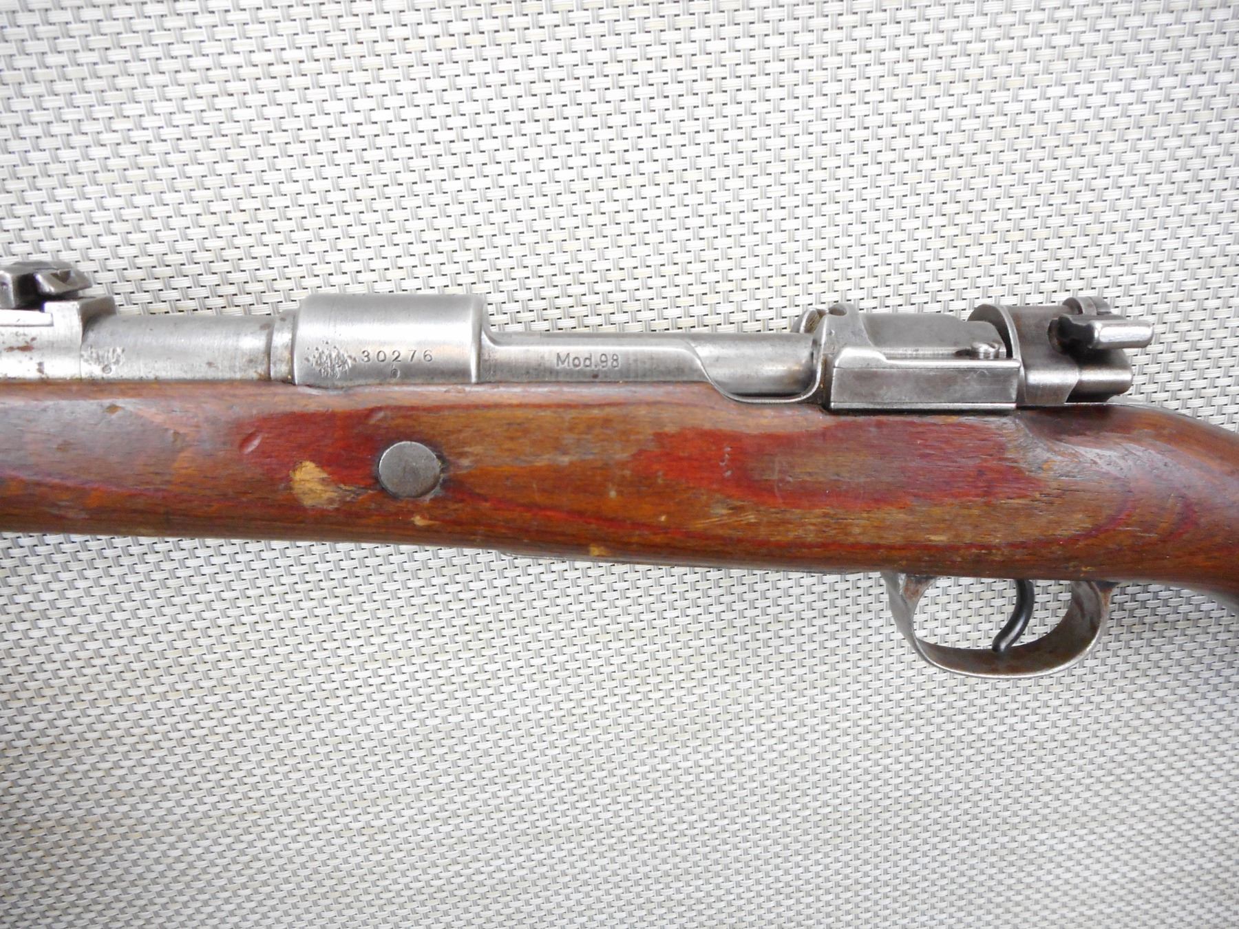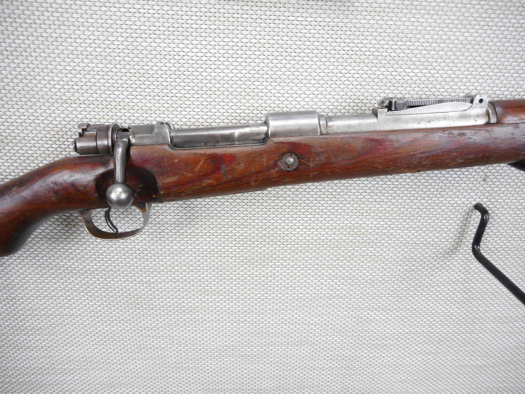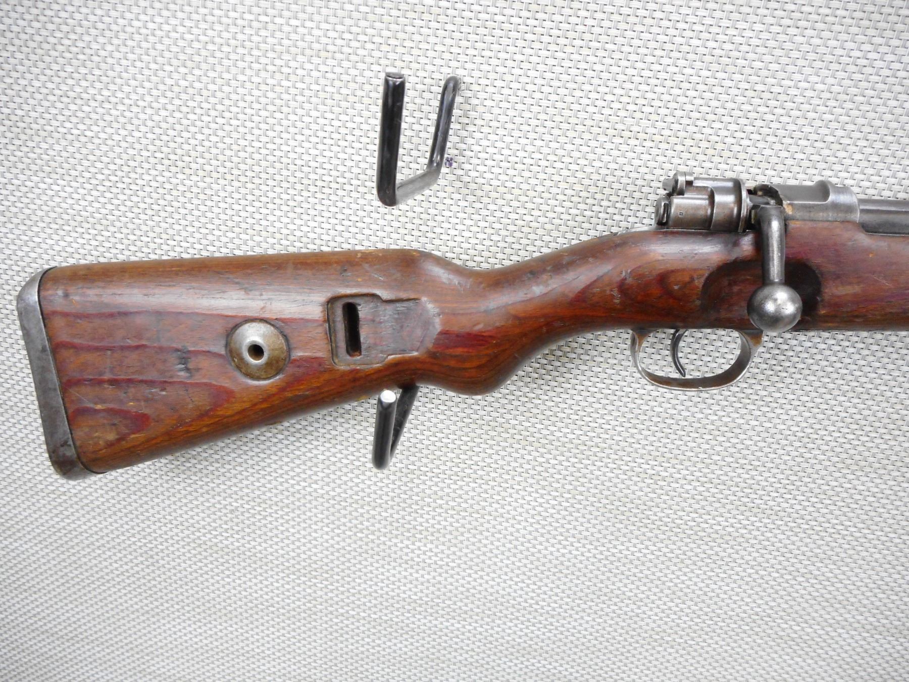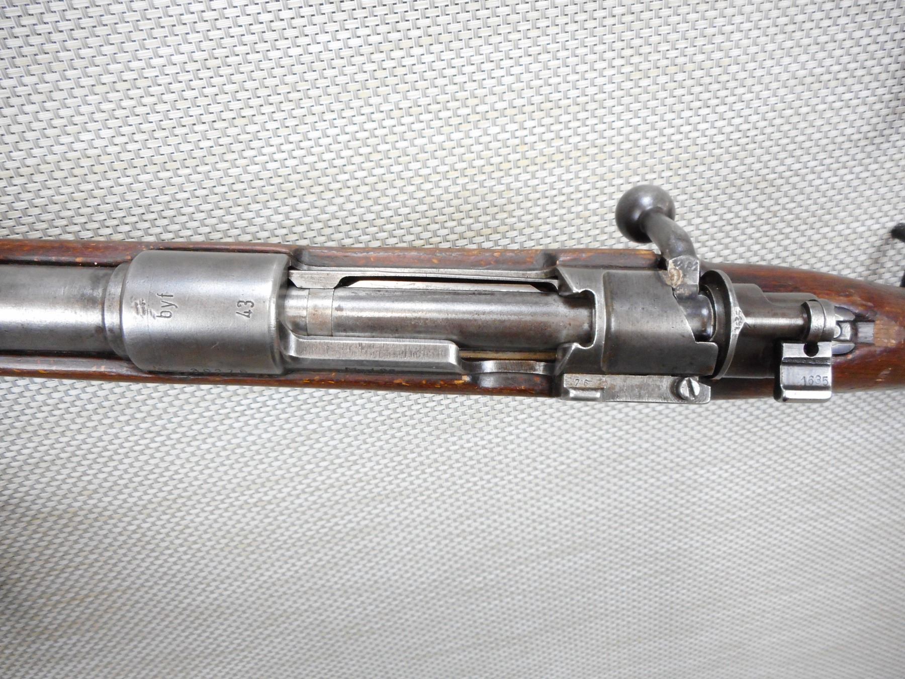WWII ERA, MAUSER (BYF) , MODEL: 98 , CALIBER: 8 X 57 MAUSER , WWII ERA, DATED 1943, RAMP FRONT AND ADJUSTABLE REAR SIGHTS, RETAINS FULL MILITARY CONFIGURATION, LAMINATED STOCK, SLING SWIVEL LOOPS, STEEL BUTT PLATE, BORE IS GOOD , SERIAL # 30276 , ACTION: BOLT ACTION RIFLE , BARREL LENGTH: 24" , CONDITION: 8/10 , STOCK # 9037 , CLASS: CANADIAN NON RESTRICTED CLASS