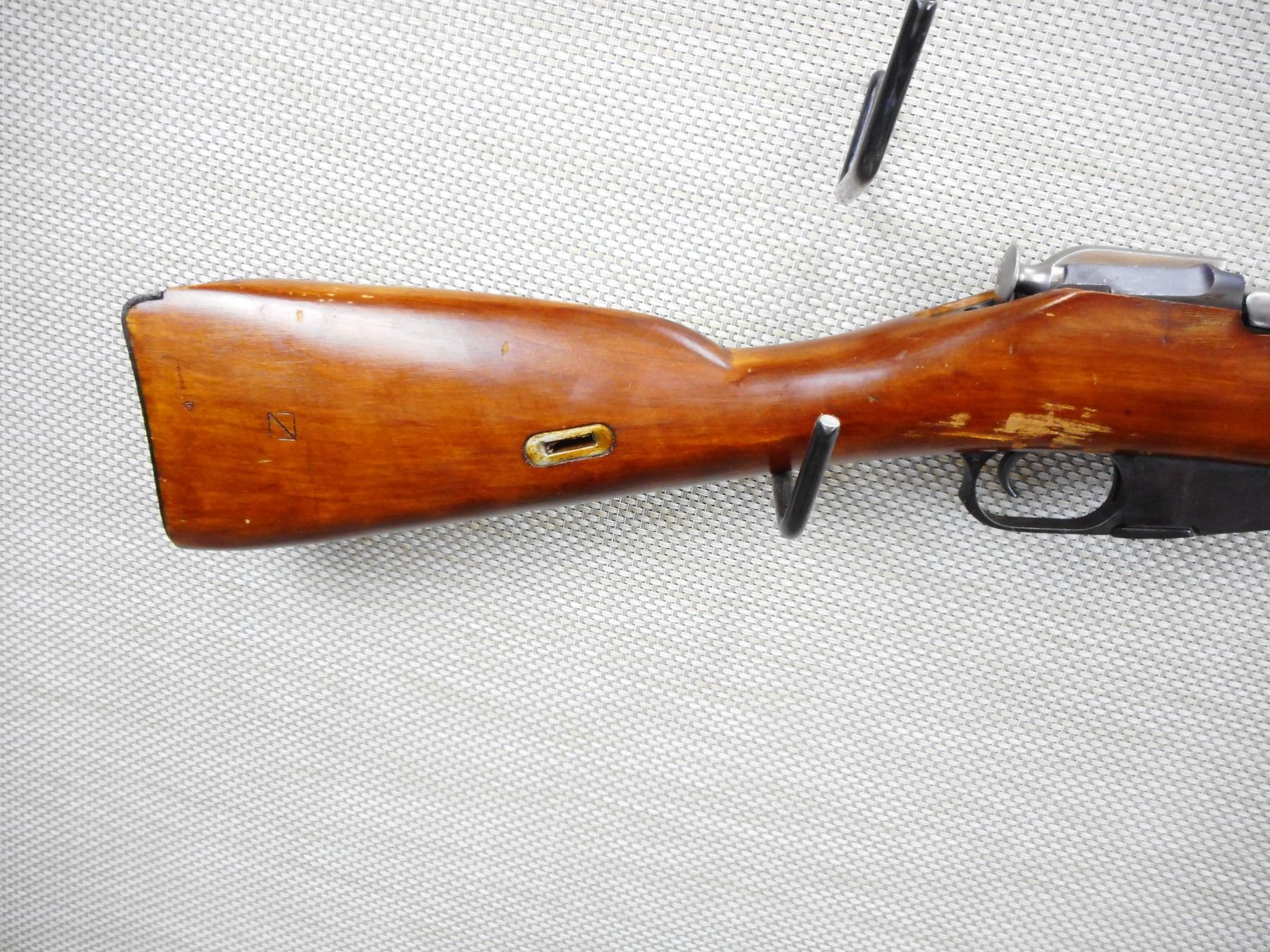 WWII ERA, MOSIN NAGANT , MODEL: 91/30 , CALIBER: 7.62 X 54R , DATED 1939, WWII ERA, BOLT AND RECEIVER DO NOT MATCH BY SERIAL #, TULA ARSENAL, RETAINS ORIGINAL MILITARY CONFIGURATION, HOODED FRONT AND ADJUSTABLE REAR SIGHTS, SLING LOOPS, STEEL BUTT PLATE, SHOWS SOME HANDLING MARKS, GOOD BORE , SERIAL # NE2073 , ACTION: BOLT ACTION RIFLE , BARREL LENGTH: 29" , CONDITION: 6/10 , STOCK # 9056 , CLASS: CANADIAN NON RESTRICTED CLASS