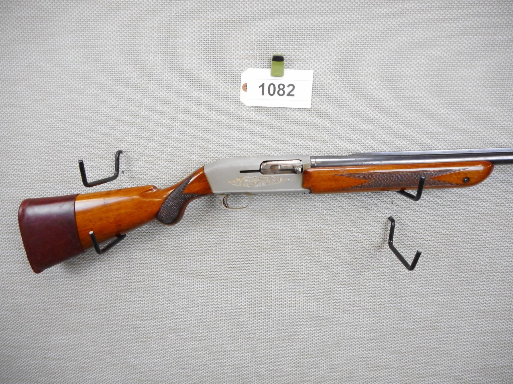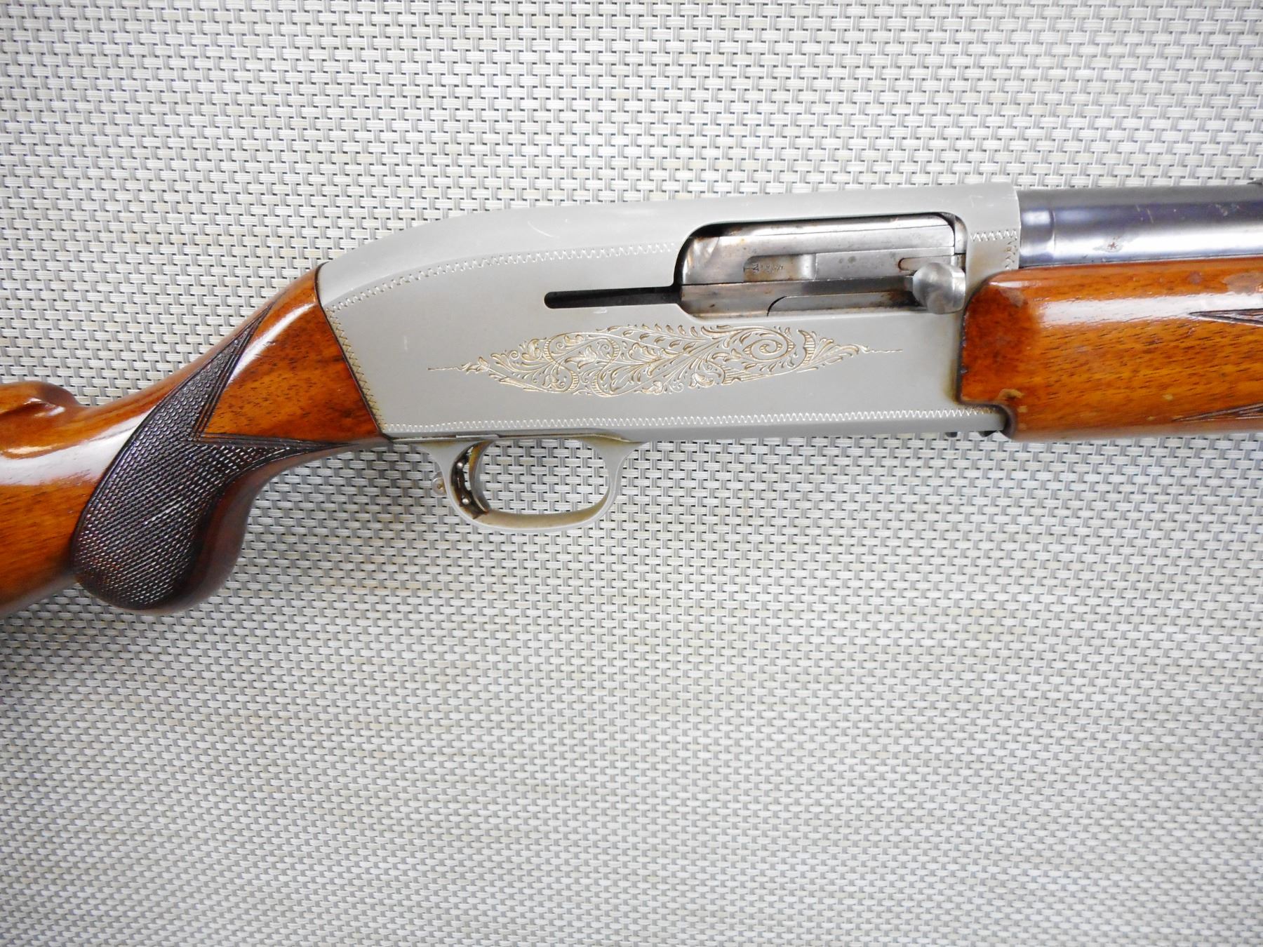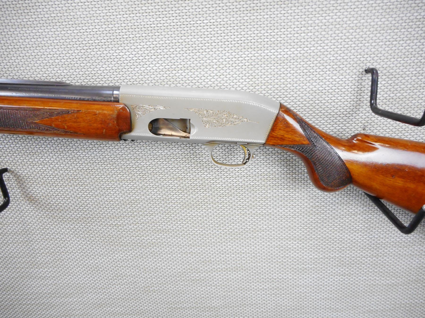 FABRIQUE NATIONAL , MODEL: DOUBLE TWELVE , CALIBER: 12GA X 2 3/4" , BORE IS VERY GOOD, FIXED FULL CHOKE, BEAD FRONT SIGHT, SOLID RIB ON BARREL, TWO PIECE HARDWOOD STOCK WITH CHECKERED FOREND AND SEMI PISTOL GRIP BUTT STOCK, LIGHTLY ENGRAVED ALLOY RECEIVER, RUBBER BUTT SLEAVE ON BUTT, SHOWS SOME HANDLING MARKS , SERIAL # A13197 , ACTION: SEMI AUTOMTIC SHOTGUN , BARREL LENGTH: 27 1/2" , CONDITION: 5/10 , STOCK # 9087 , CLASS: CANADIAN NON RESTRICTED CLASS