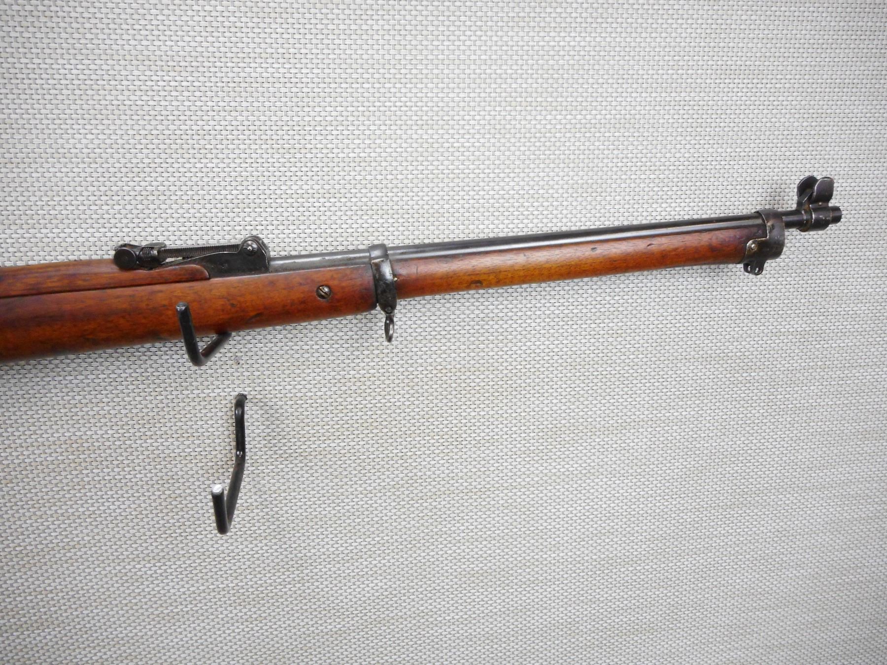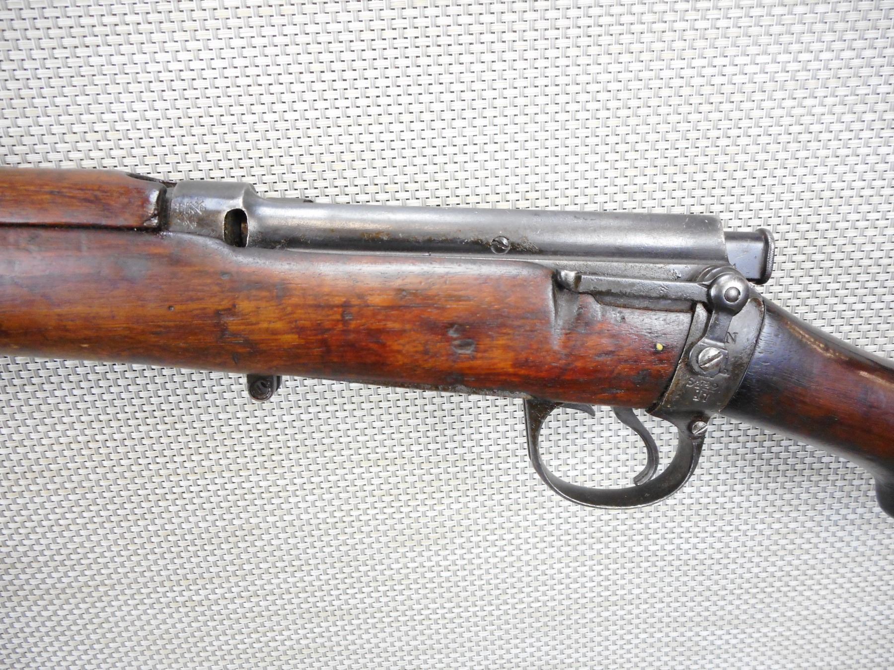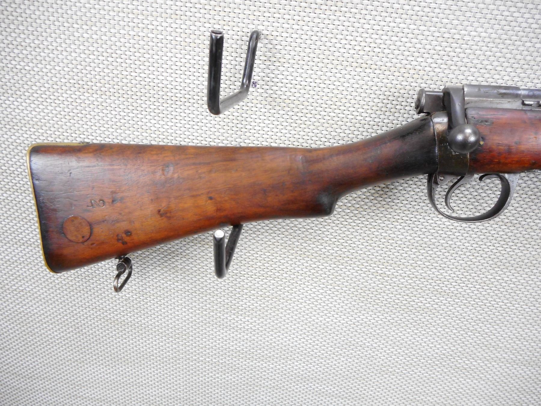 EXTREMLEY RARE, LEE ENFIELD , MODEL: SPARKSBROOK TRAINING RIFLE , CALIBER: 22 LR , DOES NOT COME WITH MAGAZINE ( IT IS NOT REQUIRED TO FIRE THIS IS A SINGLE SHOT) DATED 1891, BARLEY CORN FRONT AND ADJUSTABLE REAR SIGHT, BOLT AND RECEIVER MATCH BY SERIAL #, BORE IS VERY GOOD, ORIGINAL VOLLY SIGHTS, OUT OF SERVICE BRD ARROW MARKS, SHOWS SOME HANDLING MARKS, SLING SWIVEL LOOPS, BRASS BUTT PLATE , SERIAL # 3776 , ACTION: BOLT ACTION RIFLE , BARREL LENGTH: 25" , CONDITION: 6/10 , STOCK # 9107 , CLASS: CANADIAN NON RESTRICTED CLASS