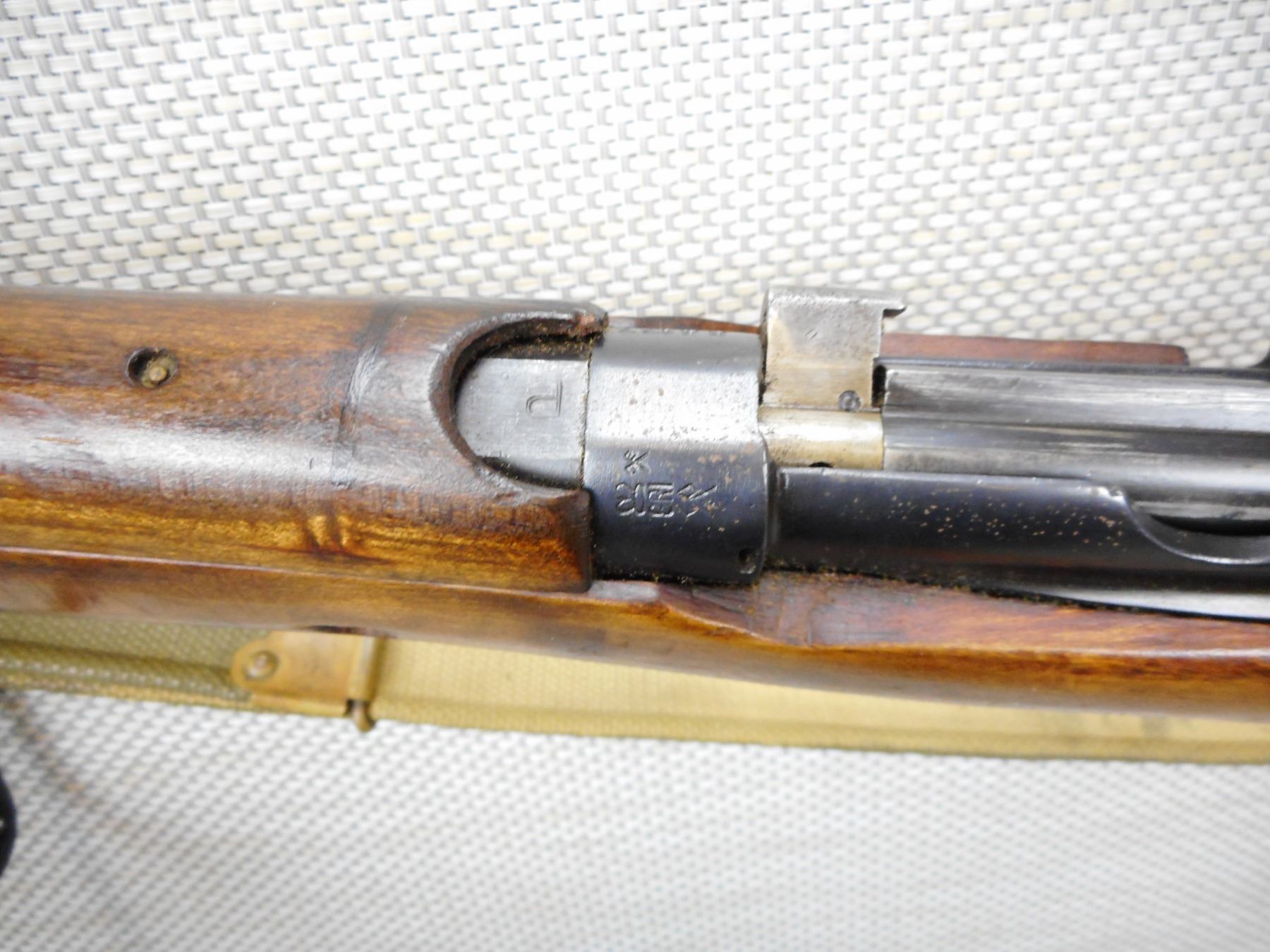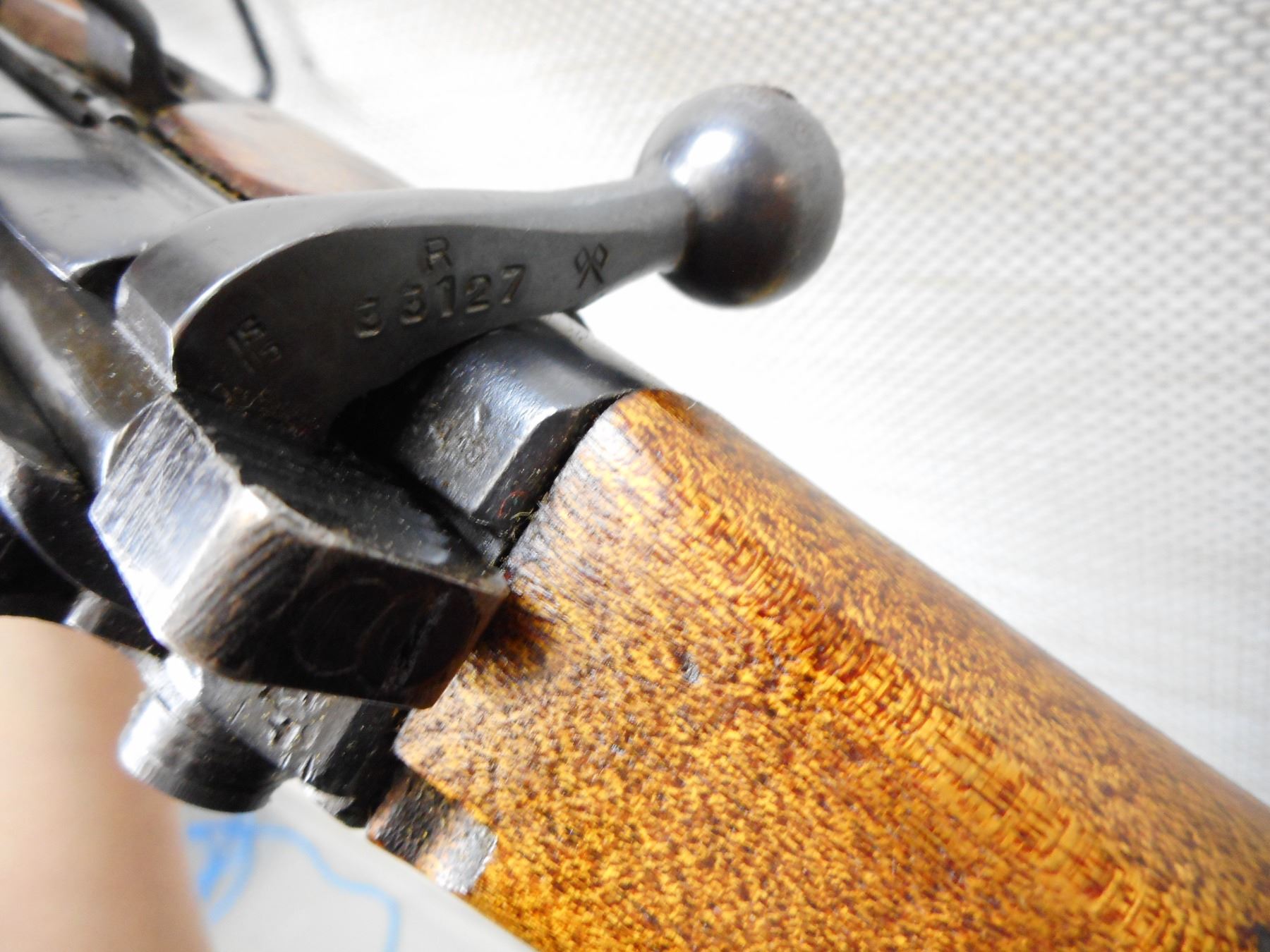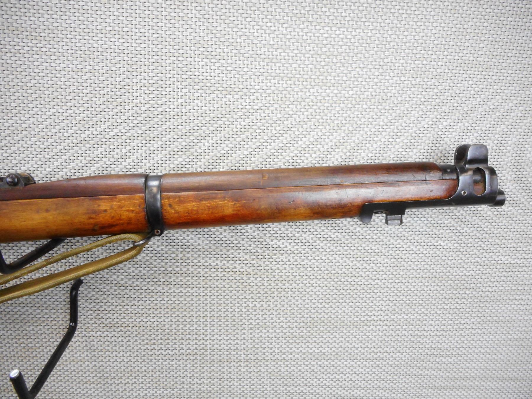 WWII ERA, LEE ENFIELD , MODEL: NO1 MKIII ( MARKINGS REMOVED) , CALIBER: 303 BR , COMES WITH MAGAZINE, DATED 1944 WWII ERA, BOLT AND RECEIVER MATCH BY SERIAL #, VERY GOOD BORE, BARLEY CORN FRONT AND ADJUSTABLE REAR SIGHTS, SLING SWIVELS WITH ORIGINAL CANVAS SLING, BRASS BUTT PLATE, NUMEROUS REGIMENTAL MARKINGS ON THE STOCK , SERIAL # 33127R , ACTION: BOLT ACTION RIFLE , BARREL LENGTH: 25" , CONDITION: 7/10 , STOCK # 9108 , CLASS: CANADIAN NON RESTRICTED CLASS