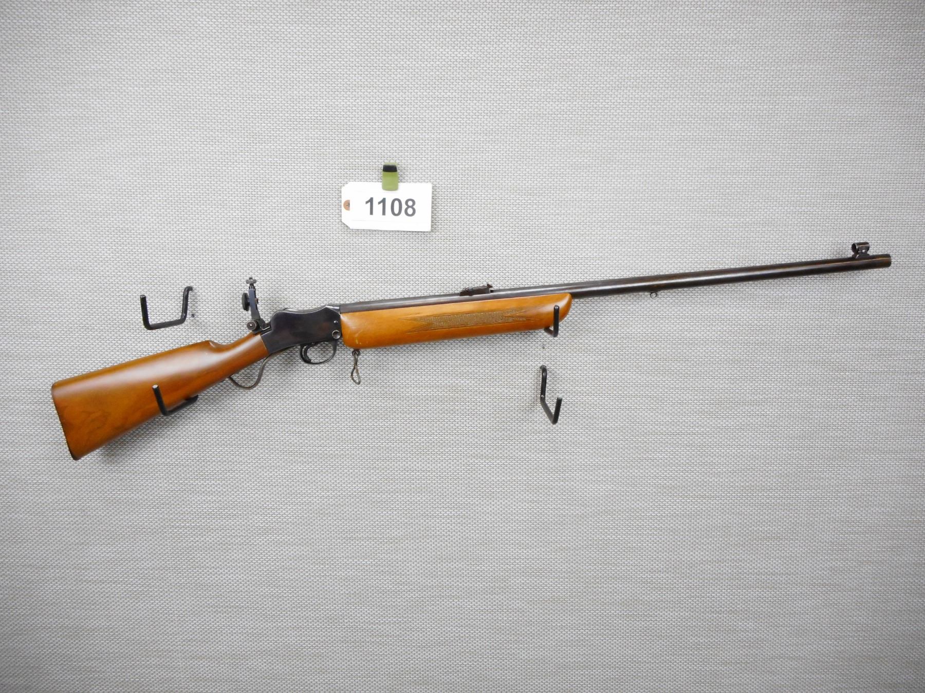 BSA MARTINI , MODEL: MARTINI SINGLE SHOT TARGET RIFLE , CALIBER: 22 LR , BORE IS VERY GOOD, HOODED FRONT AND ADJUSTABLE REAR SIGHT WITH AN APERTURE PEEP SIGHT, CHECKERED FOREND AND STRAIGHT GRIP STOCK WITH STEEL BUTT PLATE, SLING SWIVEL LOOPS, SHOWS SOME HANDLING MARKS, RETAINS MUCH OF THE ORIGINAL BLUEING , SERIAL # 22679 , ACTION: FALLING BLOCK SINGLE SHOT , BARREL LENGTH: 29" , CONDITION: 8/10 , STOCK # 9113 , CLASS: CANADIAN NON RESTRICTED CLASS