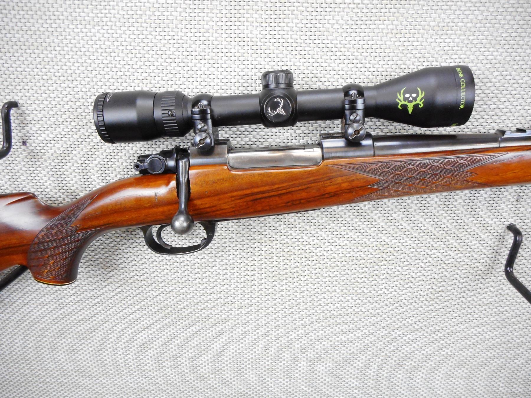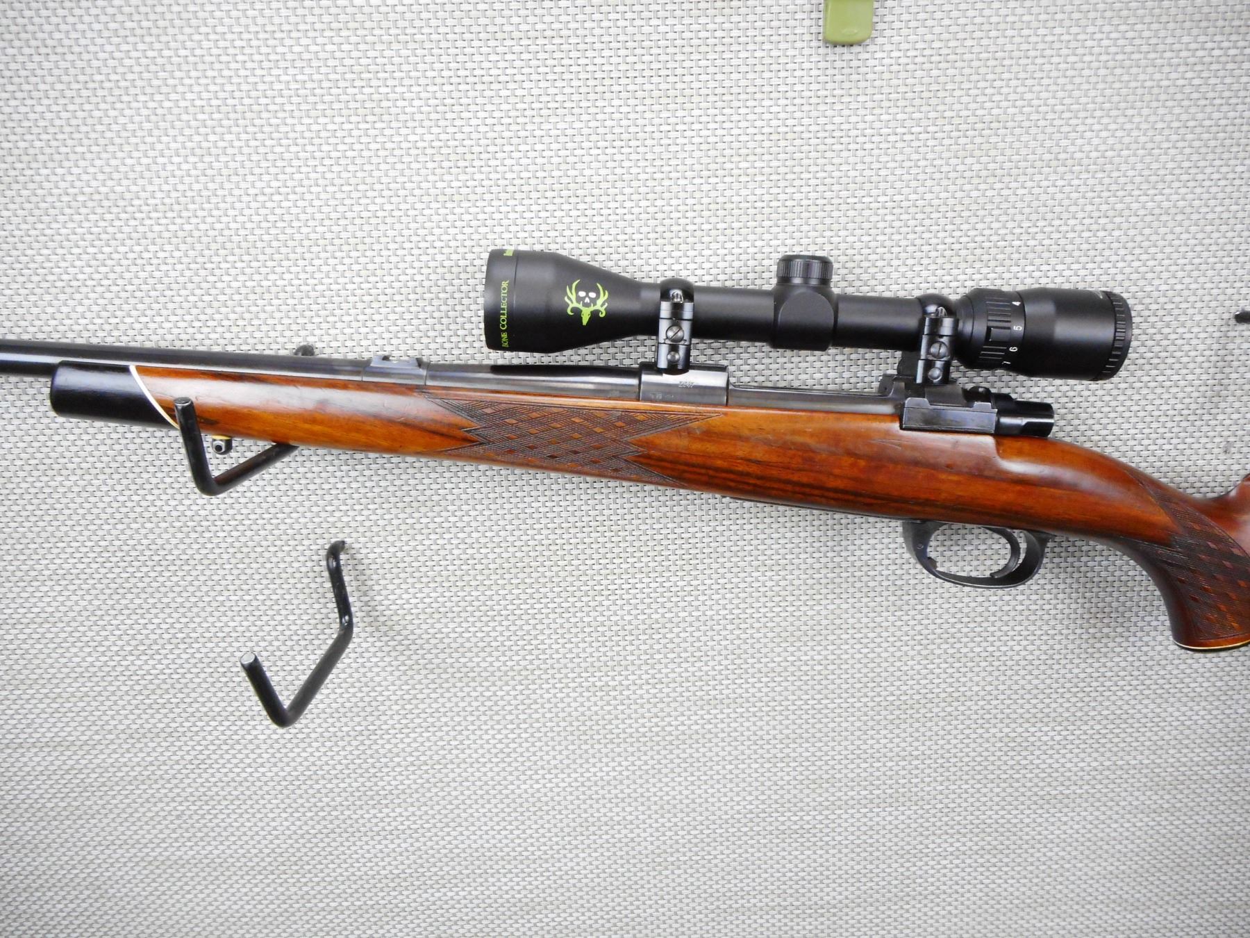 HEYM , MODEL: ZG47 , CALIBER: 30-06 SPRG , BORE IS EXCELLENT, RAMP FRONT, MISSING THE REAR SIGHT, FEATURES THE BUSHNELL BONE COLLECTOR 3-9 SCOPE, SLING SWIVEL LOOPS, CHECKERED FOREND AND CAPPED PISTOL GRIP BUTT STOCK WITH A RAISED CHEEK PIECE AND ROSEWOOD FOREND CAP, SHOWS SOME HANDLING MARKS, RUBBER BUTT PLATE WITH WHITE LINE SPACER , SERIAL # 14132 , ACTION: BOLT ACTION RIFLE , BARREL LENGTH: 24" , CONDITION: 7/10 , STOCK # 9121 , CLASS: CANADIAN NON RESTRICTED CLASS