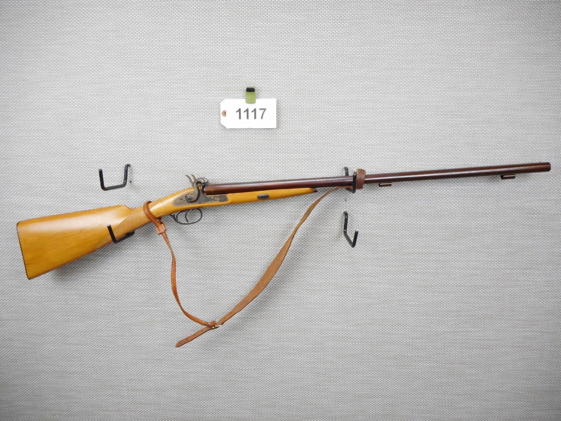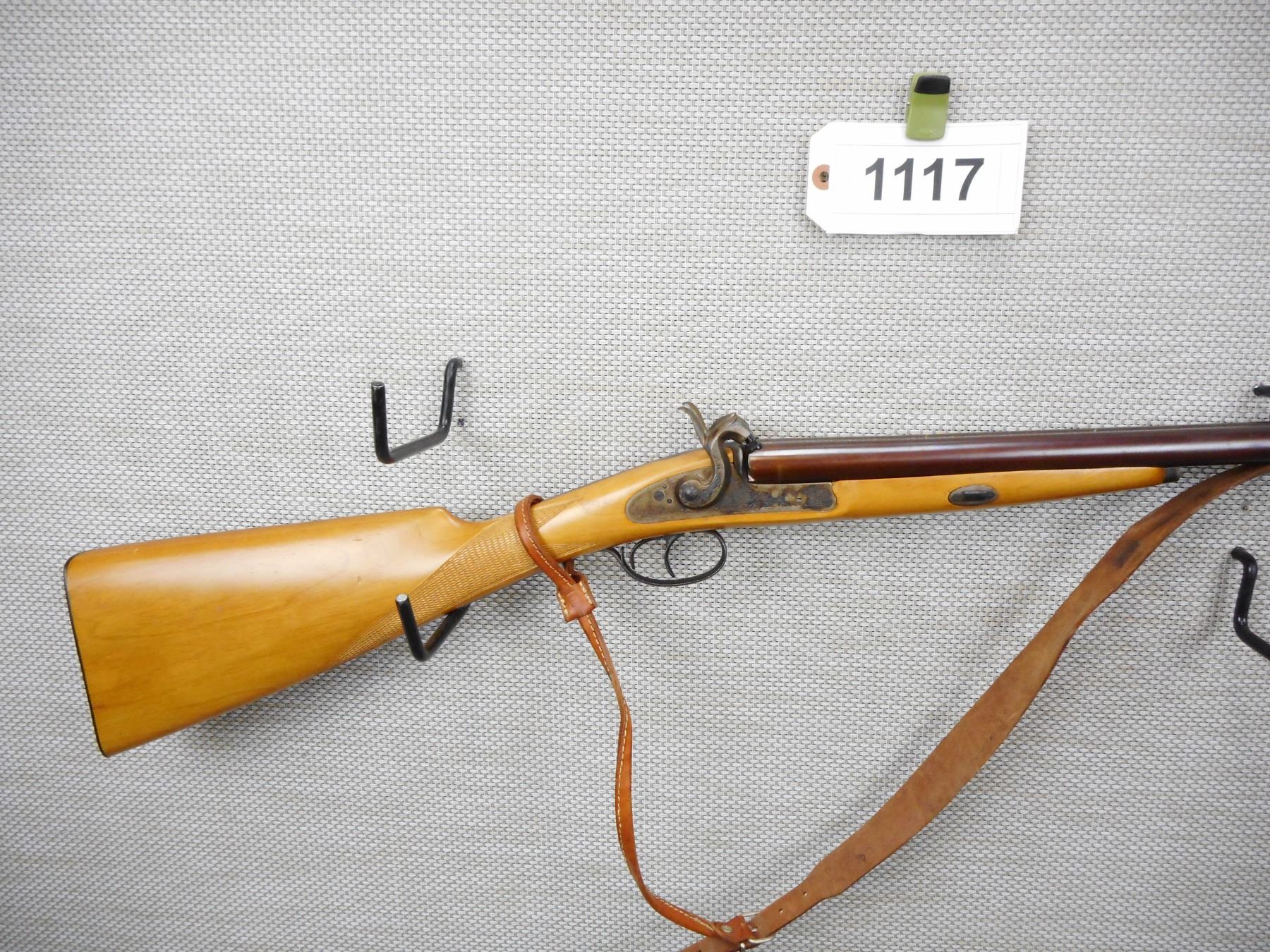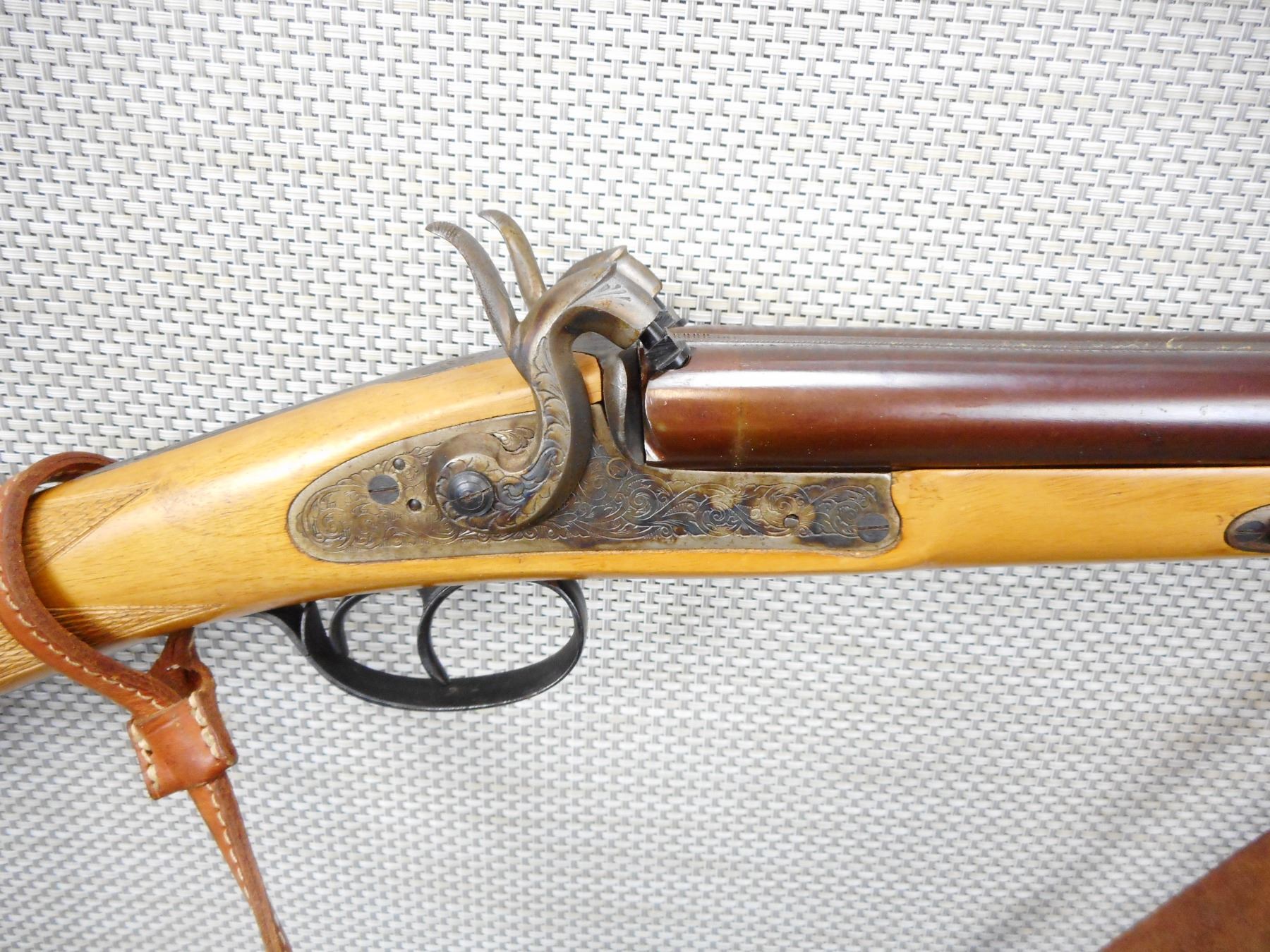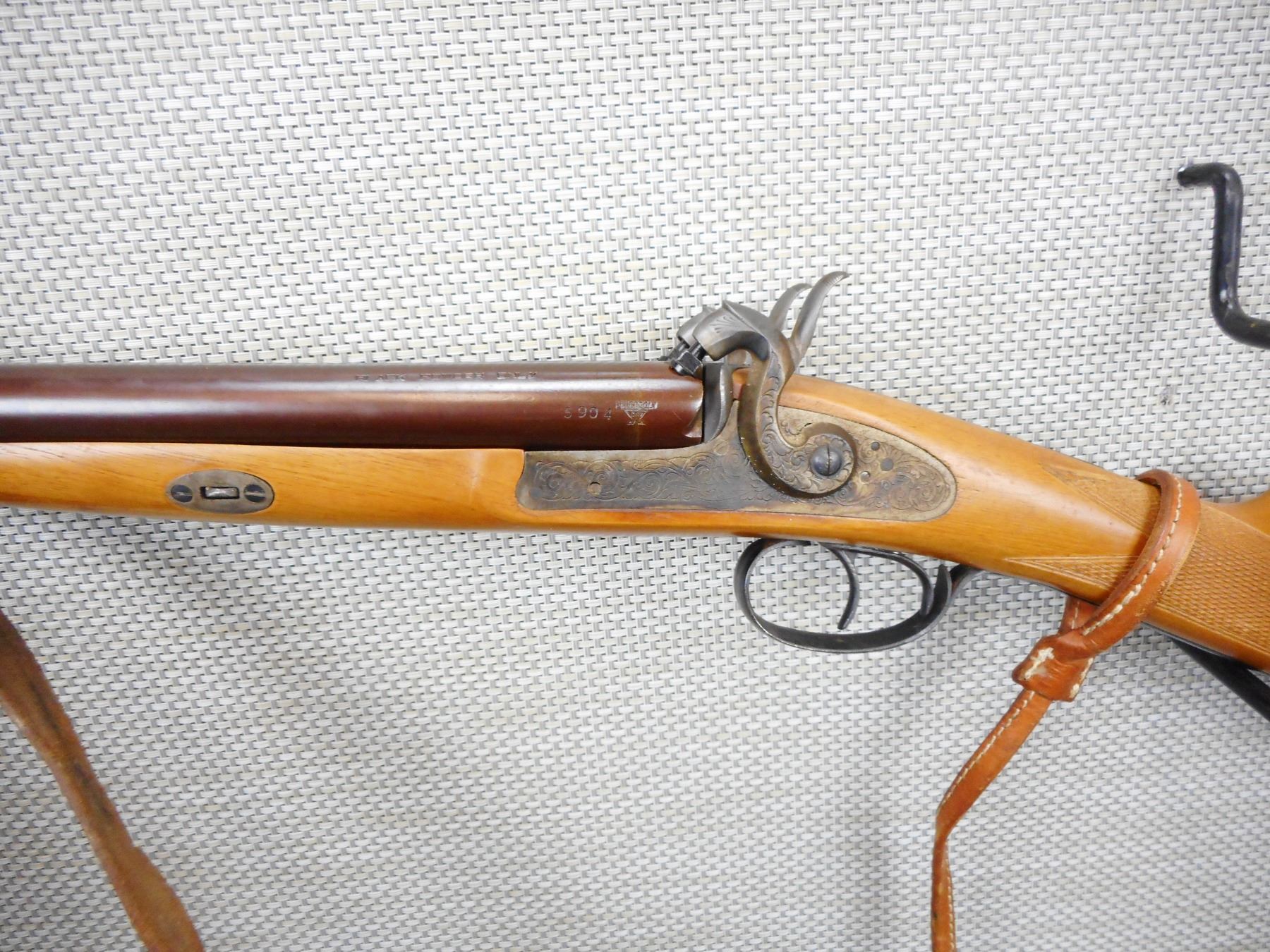 PEDERSOLI , MODEL: SIDE BY SIDE , CALIBER: 12 GA PERCUSSION , VERY GOOD BORES, FIXED FULL CHOKES, MISSING THE RAM ROD, BEAD FRONT SIGHT, EXTERNAL DOUBLE HAMMERS AND TRIGGERS, LIGHTLY ENGRAVED RECEIVER, LEATHER SLING ATTACHED, CHECKERED STRAIGHT GRIP BUTT STOCK, STEEL BUTT PLATE, SHOWS SOME HANDLING MARKS , SERIAL # 5904 , ACTION: SIDE BY SIDE MUZZLE LOADER , BARREL LENGTH: 28" , CONDITION: 6/10 , STOCK # 9122 , CLASS: CANADIAN NON RESTRICTED CLASS
