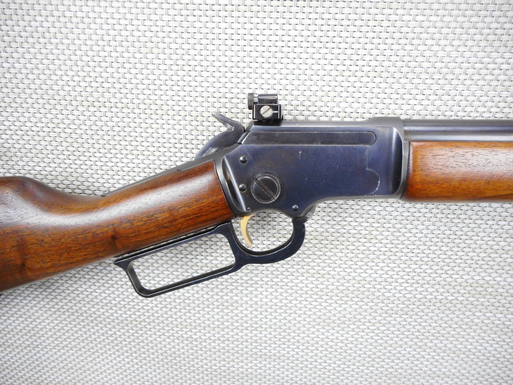 MARLIN , MODEL: ORIGINAL GOLDEN 39M , CALIBER: 22 LR , BORE IS VERY GOOD, BLADE FRONT AND PEEP APERTURE REAR SIGHT, SLING SWIVEL LOOPS, GOLD TRIGGER, PLASTIC BUTT PLATE WITH WHITE LINE SPACER, SHOWS VERY LITTLE HANDLING MARKS , SERIAL # 22263211 , ACTION: LEVER ACTION RIFLE , BARREL LENGTH: 20" , CONDITION: 8/10 , STOCK # 9128 , CLASS: CANADIAN NON RESTRICTED CLASS