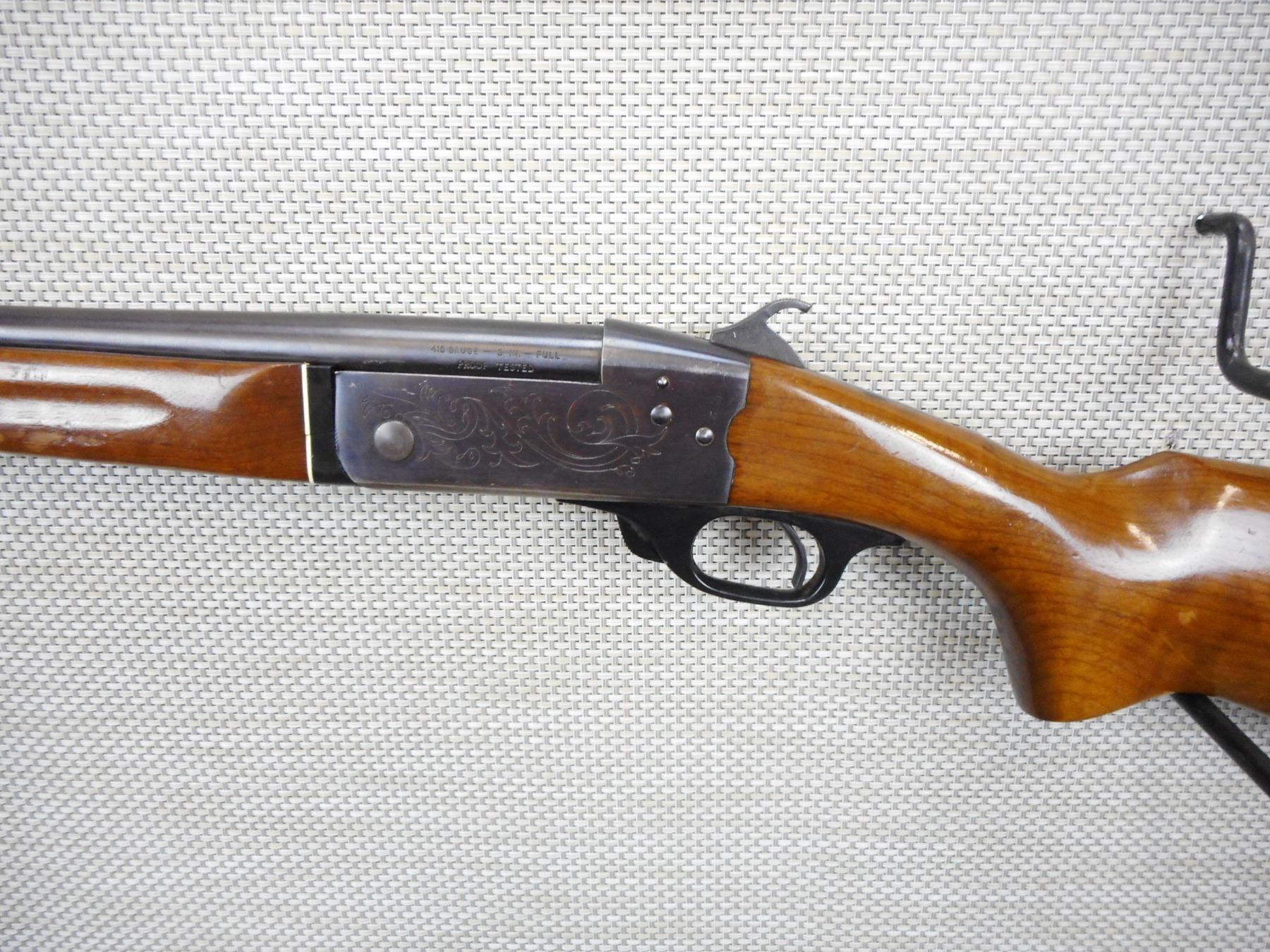 CIL , MODEL: 402 , CALIBER: 410GA X 3" , BORE IS EXCELLENT, FIXED FULL CHOKE, BEAD FRONT SIGHT, MINOR CRACK IN THE FOREND, PLASTIC BUTT PLATE, SHOWS SOME HANDLING MARKS , SERIAL # 40776 , ACTION: SINGLE SHOT BREAK ACTION SHOTGUN , BARREL LENGTH: 28" , CONDITION: 6/10 , STOCK # 9130 , CLASS: CANADIAN NON RESTRICTED CLASS
