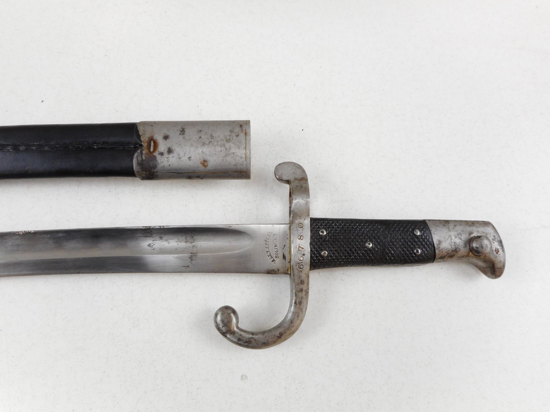 YATAGHAN BLADE SWORD BAYONET , COMES WITH SCABBARD, BLADE STAMPED ALEX COPPEL SOLINGEN