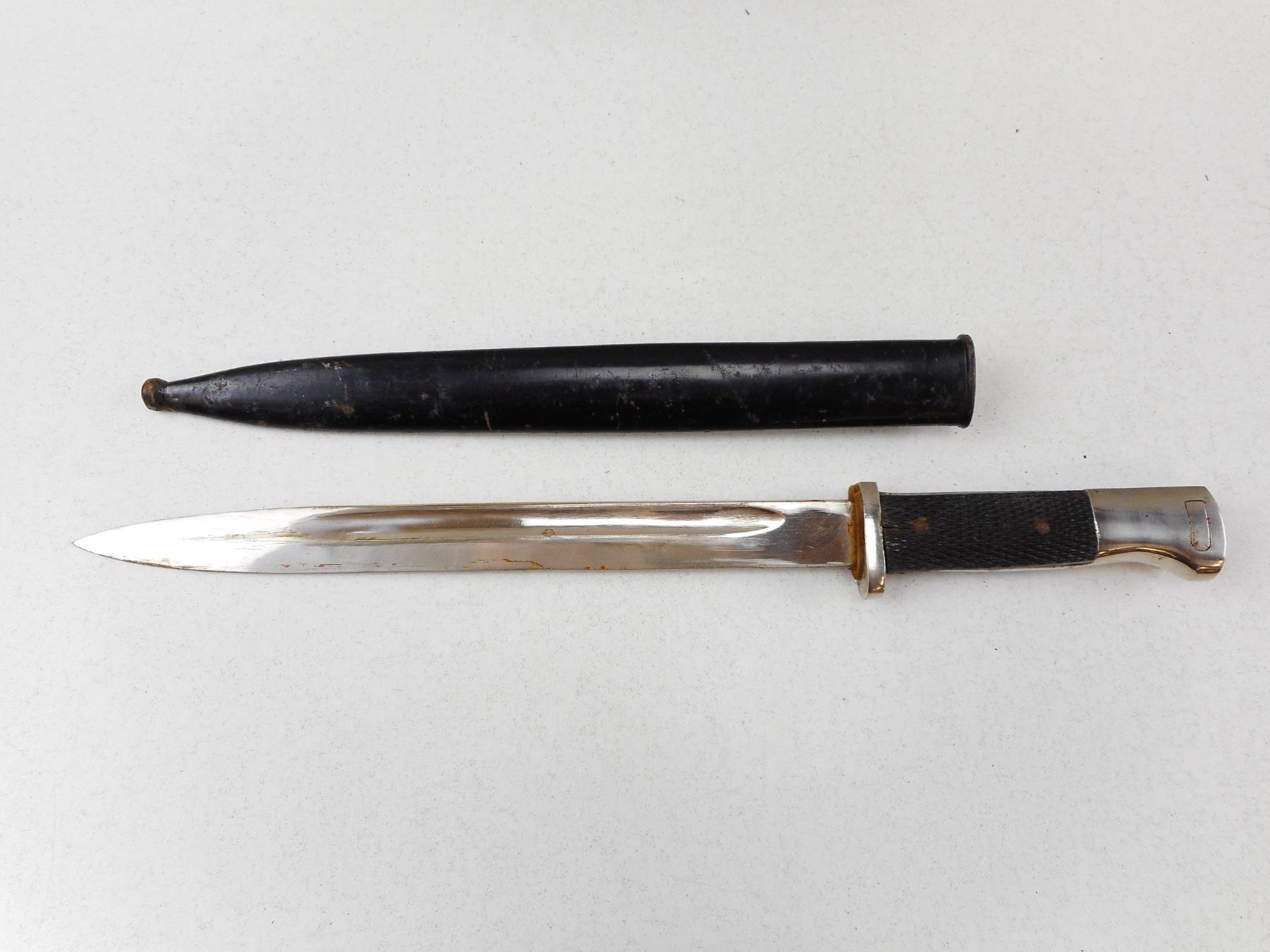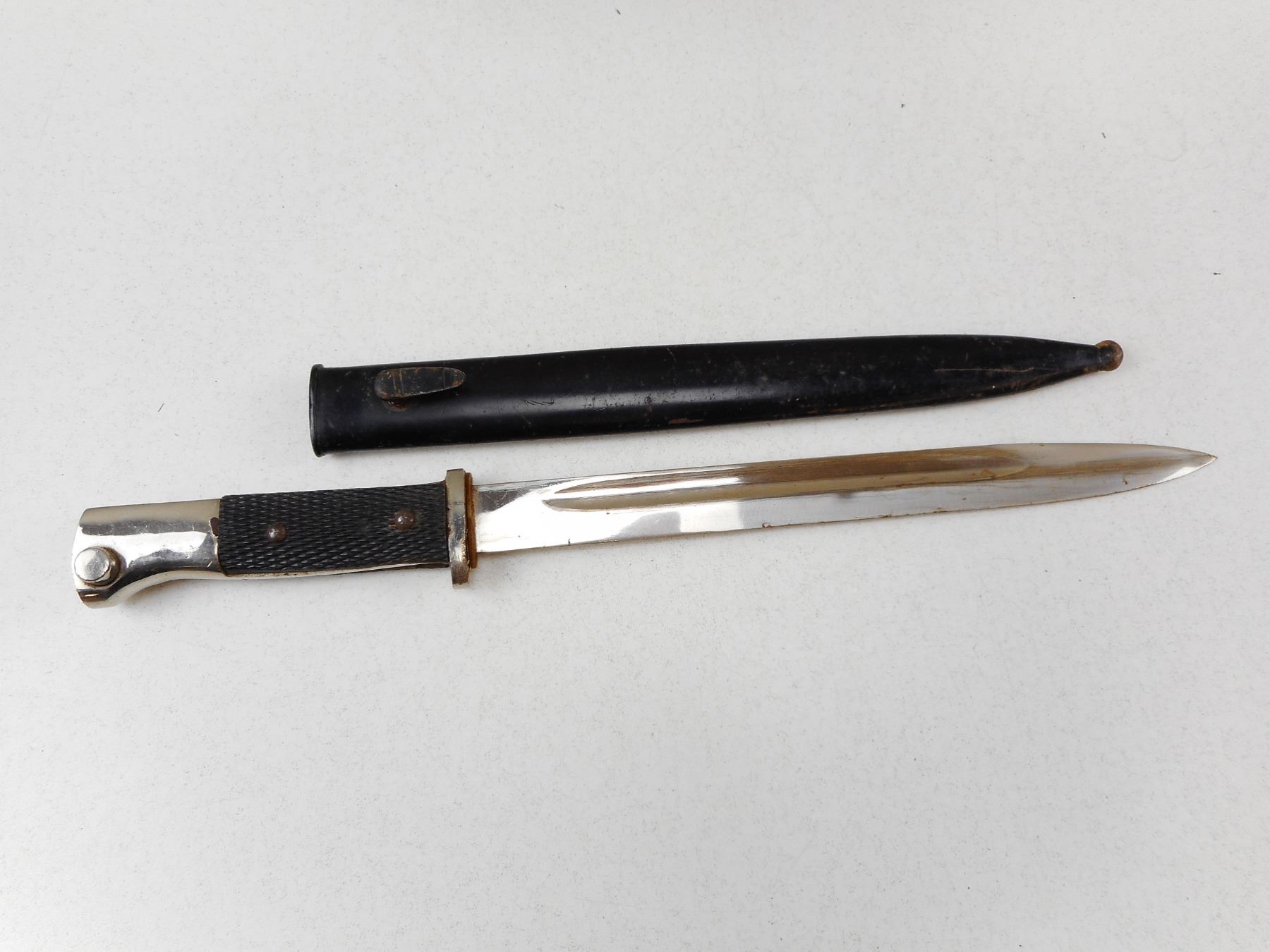 COPY OF WWII GERMAN DRESS BAYONET , COMES WITH SCABBARD, NO MAKER OR WAR ERA MARKINGS ON BAYONET OR SCABBARD