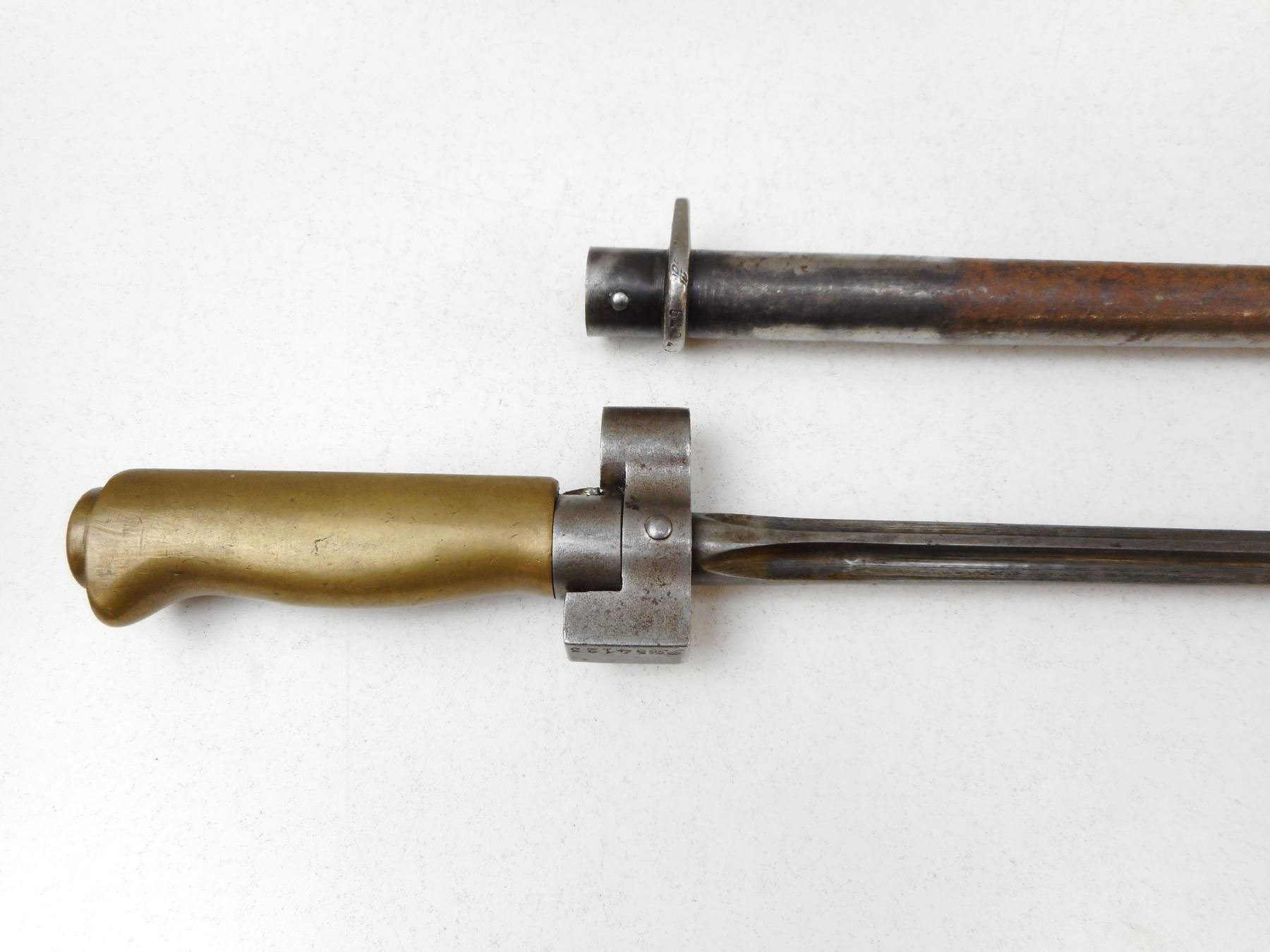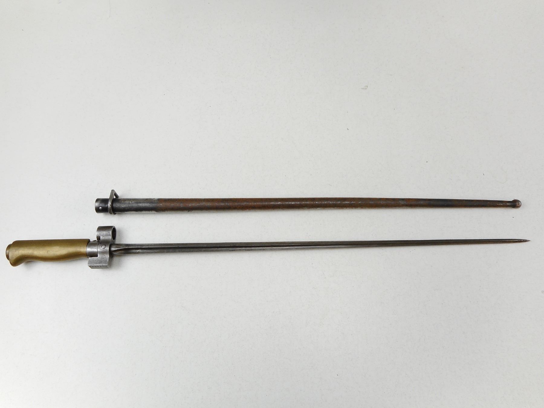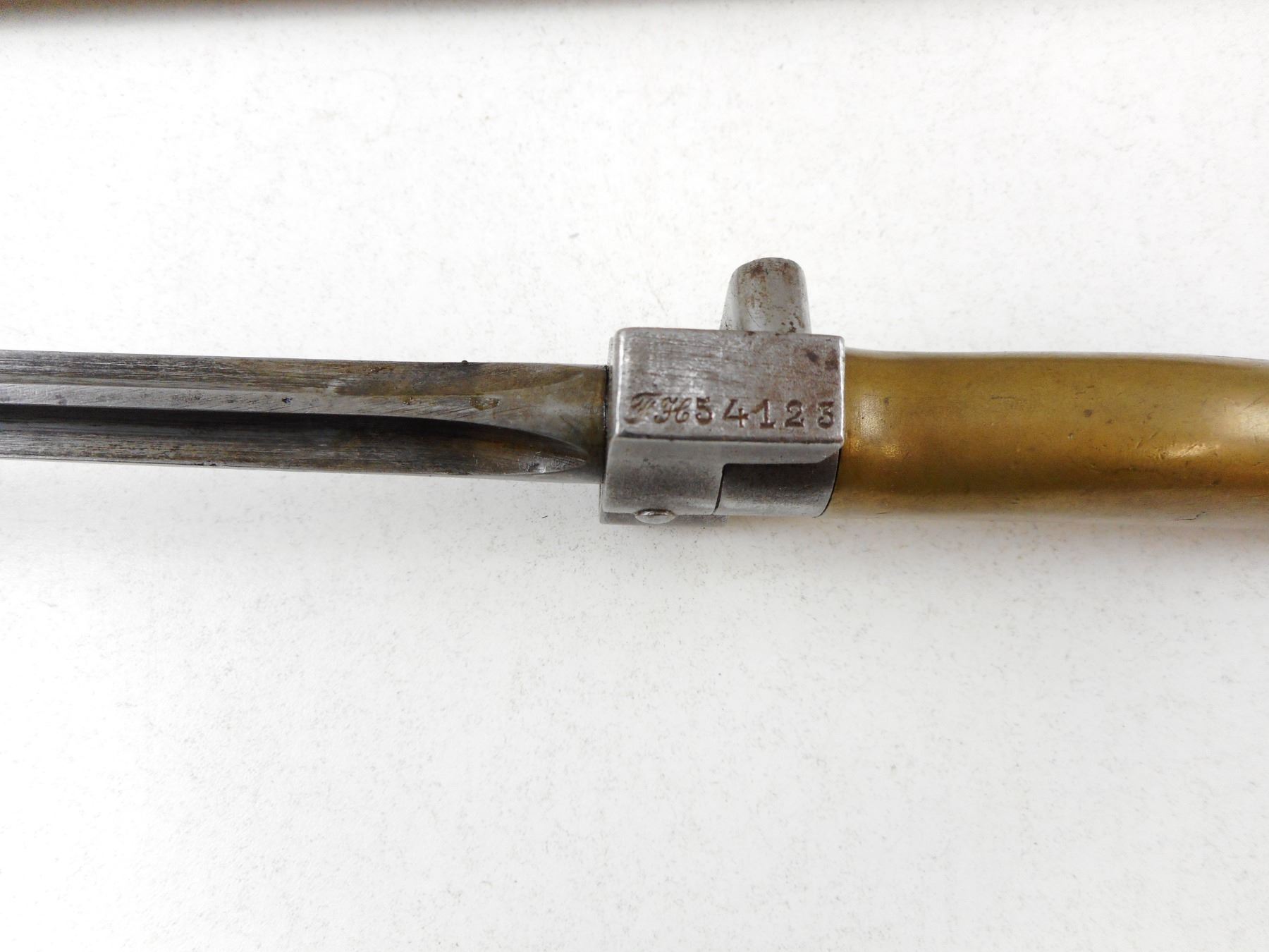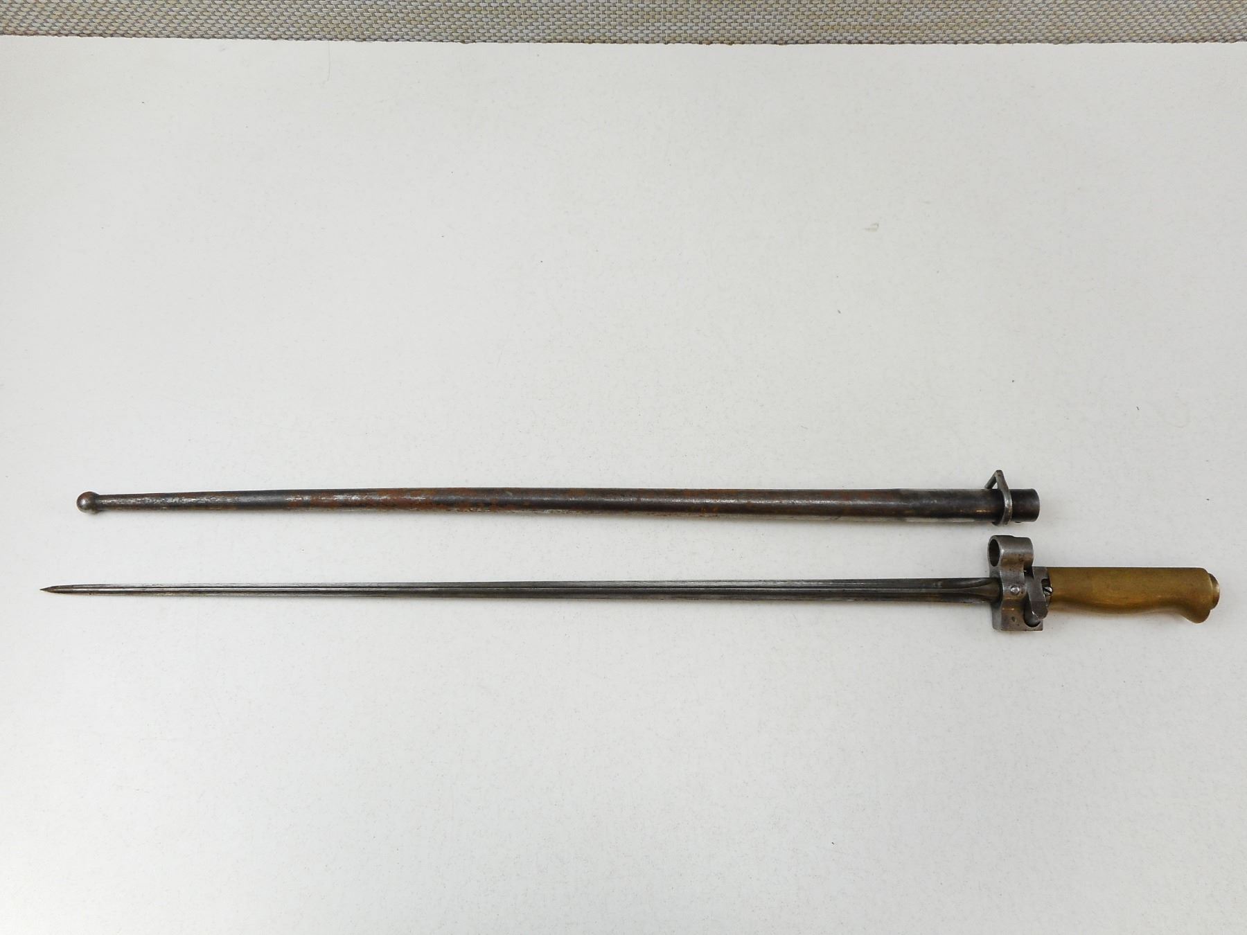 1888 PATTERN FRENCH BAYONET , HAS A FULL LENGTH BLADE, QUILLION HAS BEEN REMOVED, NO SCABBARD