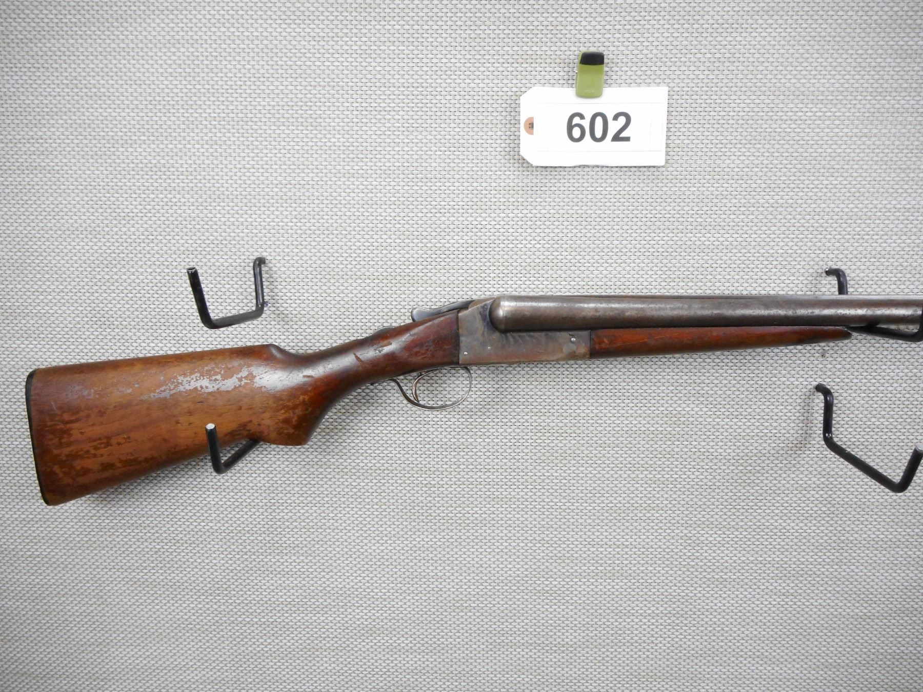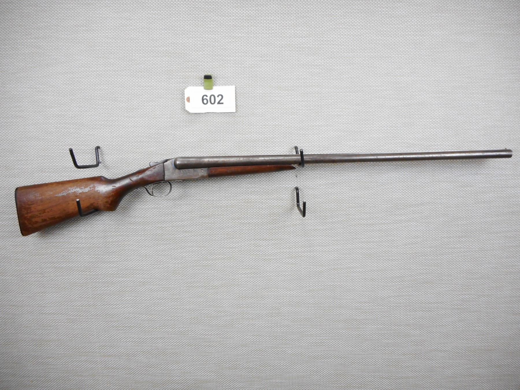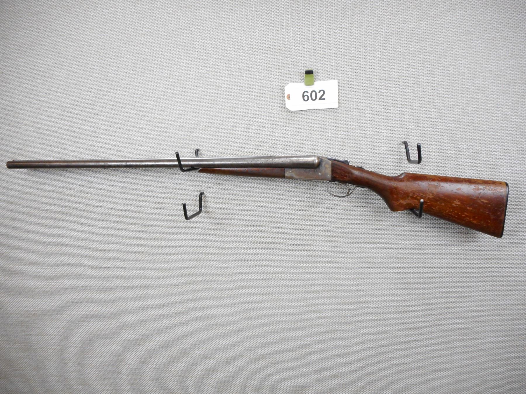 WESTERN GUN CORP , MODEL: LONG RANGE GUN , CALIBER: 12GA X 2 3/4" , BEAD FRONT SIGHT, VERY GOOD BORES, FIXED FULL AND MODIFIED CHOKES, TWO PIECE HARDWOOD STOCK WITH PLASTIC BUTT PLATE, SHOWS EXTENSIVE HANDLING MARKS, SINGLE TRIGGER, MADE UNDER CONTRACT FOR WESTERN ARMS BY ITHACA, ACTION IS LOOSE, RETAINS SOME CASE HARDENING , ACTION: SIDE BY SIDE BREAK ACTION SHOTGUN , SERIAL # 55490 , BARREL LENGTH: 30" , CONDITION: 4/10 , STOCK # 8607 , CLASS: CANADIAN NON RESTRICTED CLASS